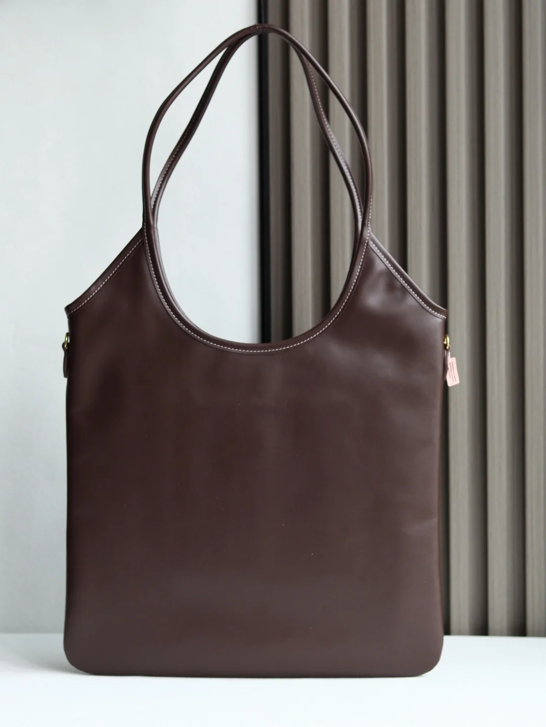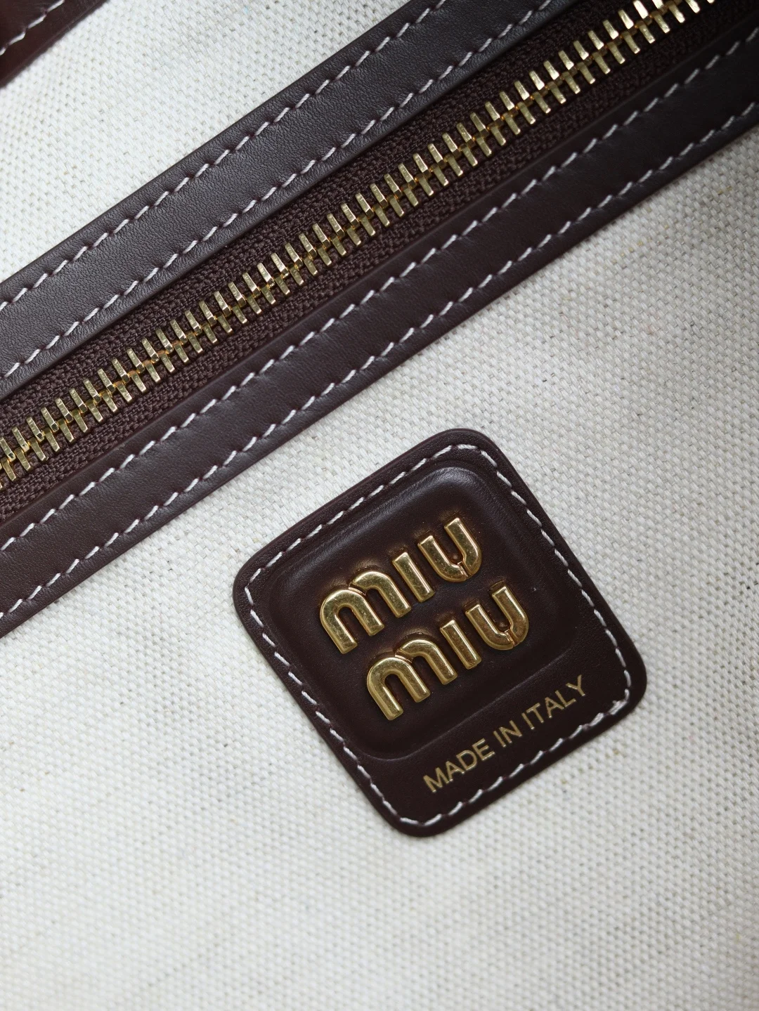 New Miu Isetan Limited Edition Tote Bag, the official website s main push, an absolute hit style this year, top-grade imported calfskin, the leather surface is delicate, smooth, and soft, with a high-end texture, the bag body is soft yet structured, with a casual and lazy temperament, super large capacity, carrying it for daily outings will guarantee a 100% return rate, hand-stitched leather Logo, new linen lining inside, with a zippered pocket, size 35 X 40Cm, model: 5BG231 with original packaging