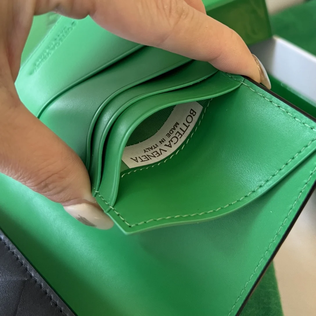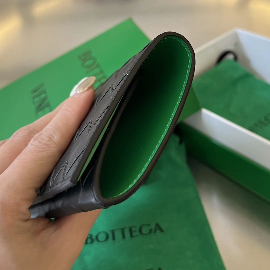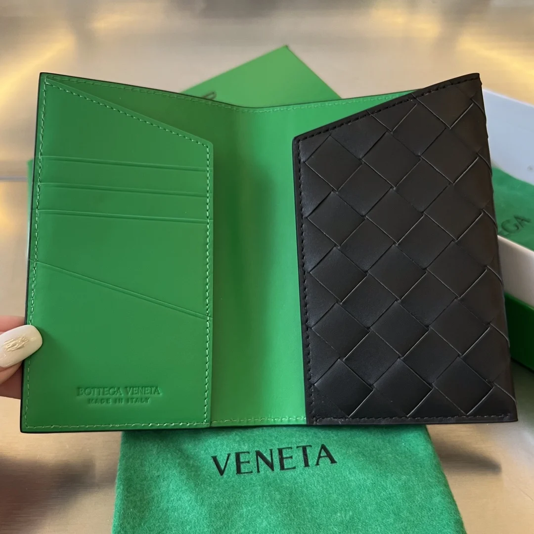 B s New Color-Blocked Passport Holder 629679, crafted from calf leather with consistent high-quality weaving inside and out. The entire piece is stylish and comfortable to hold. The interior can accommodate several cards, a passport, and a small amount of cash. It s super convenient for organizing important cards. For spontaneous trips, you can leave everything behind except this small and exquisite passport holder to help you manage everything. Dimensions: 13.3x9.5