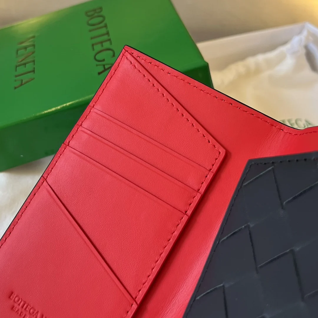 B s New Color-Blocked Passport Holder 629679, crafted from calf leather with consistent high-quality weaving inside and out. The entire piece is stylish and comfortable to hold. The interior can accommodate several cards, a passport, and a small amount of cash. It s super convenient for organizing important cards. For spontaneous trips, you can leave everything behind, but you must bring this compact and exquisite passport holder to handle everything. Dimensions: 13.3x9.5