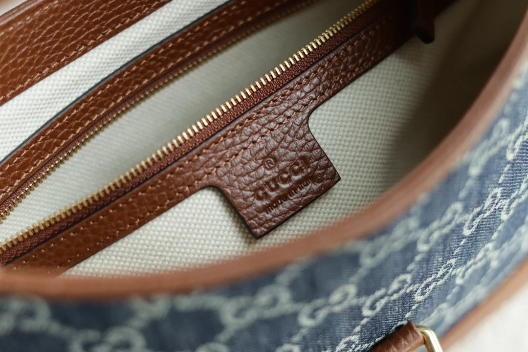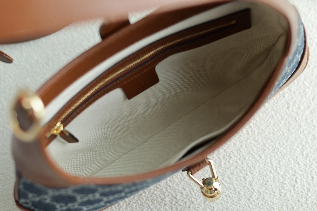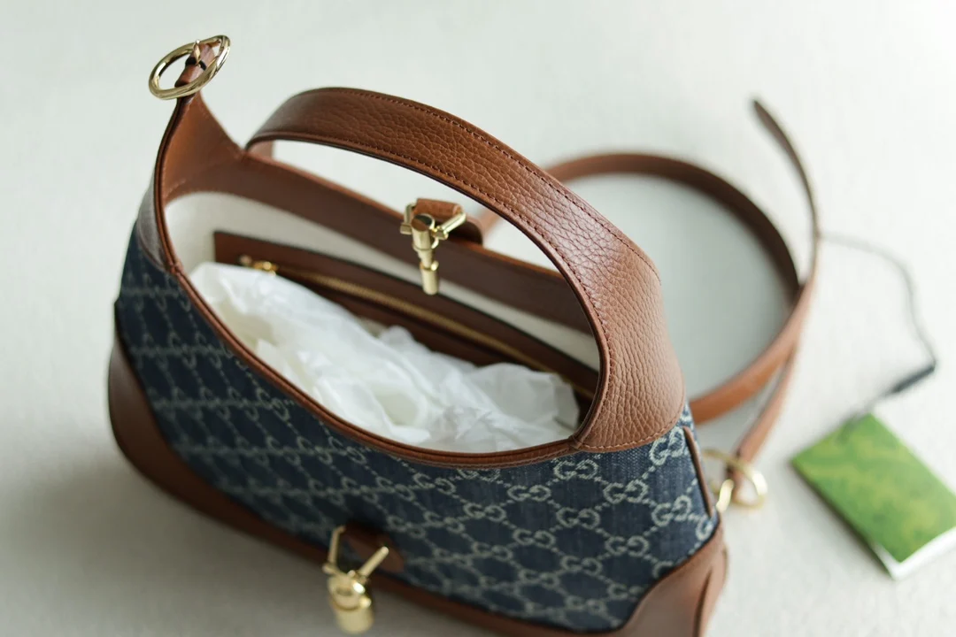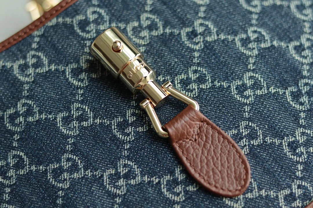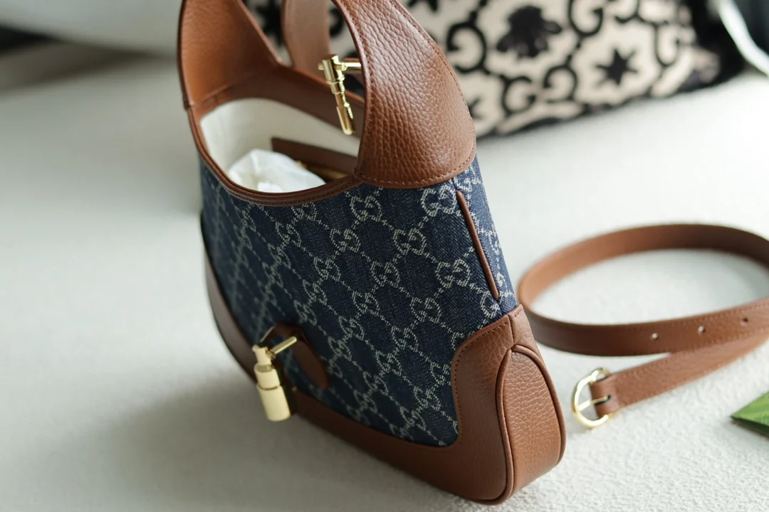 The classic 636706 Jackie 1961 series handbag, famously seen with Kennedy and thus known as The Jackie, is crafted from original leather with GG jacquard eco-washed denim. It fea..