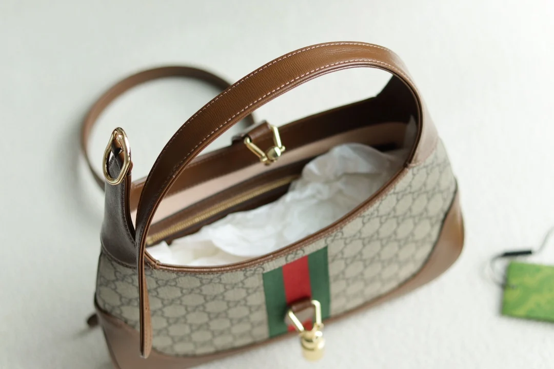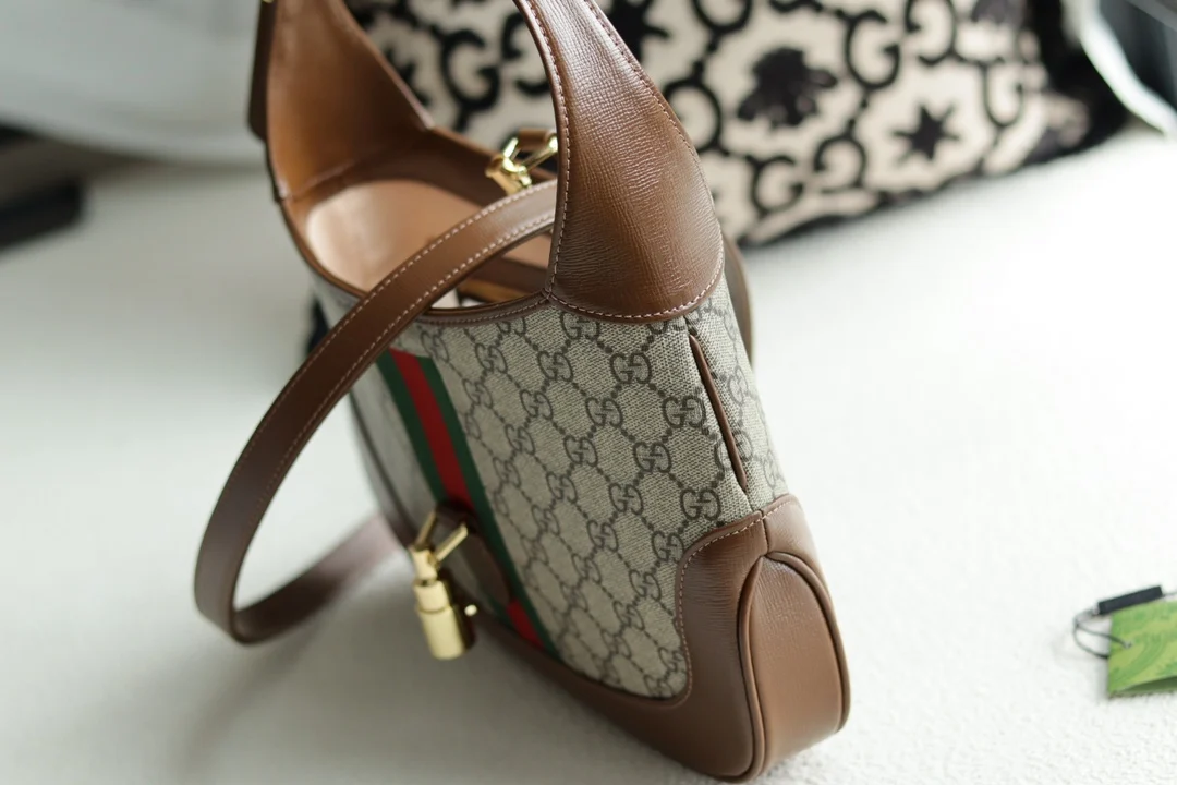 Jackie s Retro Moment: The Jackie Bag, a Recent Favorite of Idols. This season s It Bag is worth a second look. This GG Supreme with green and red web stripe combines fashion and retro style. Once you wear it, you ll understand how classic it is. A retro revival that s increasingly captivating. Style 636706, Dimensions: 28x19x4.5cm