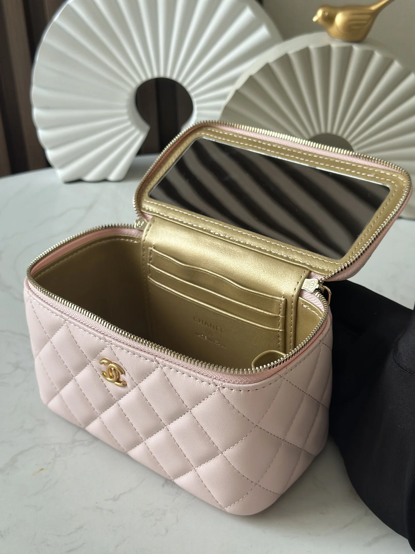 Chip version, authentic hardware and leather, large size in stock. Chane classic chain bead gold ball cosmetic bag, love it at first sight! It s also quite refreshing on the bod..