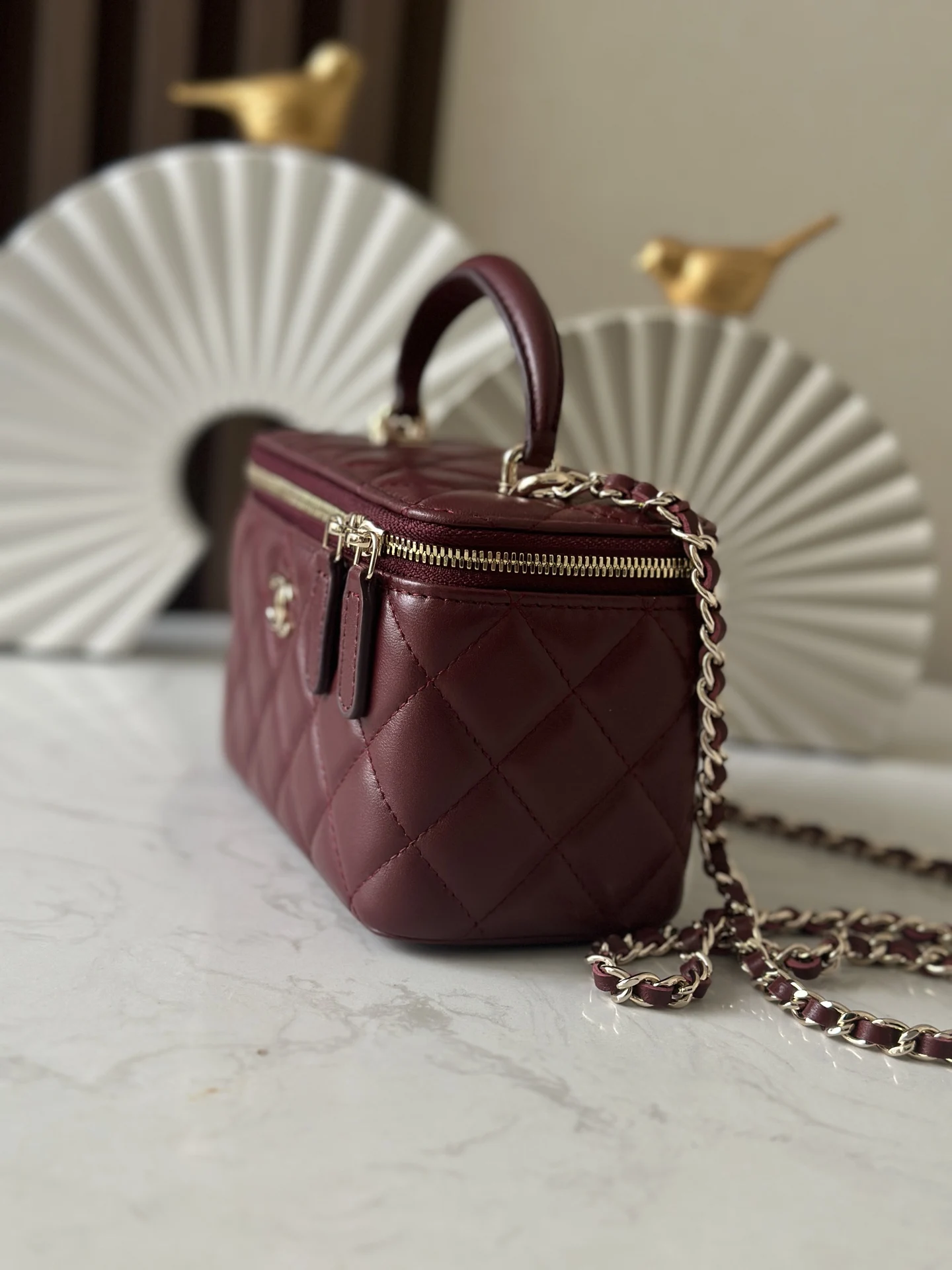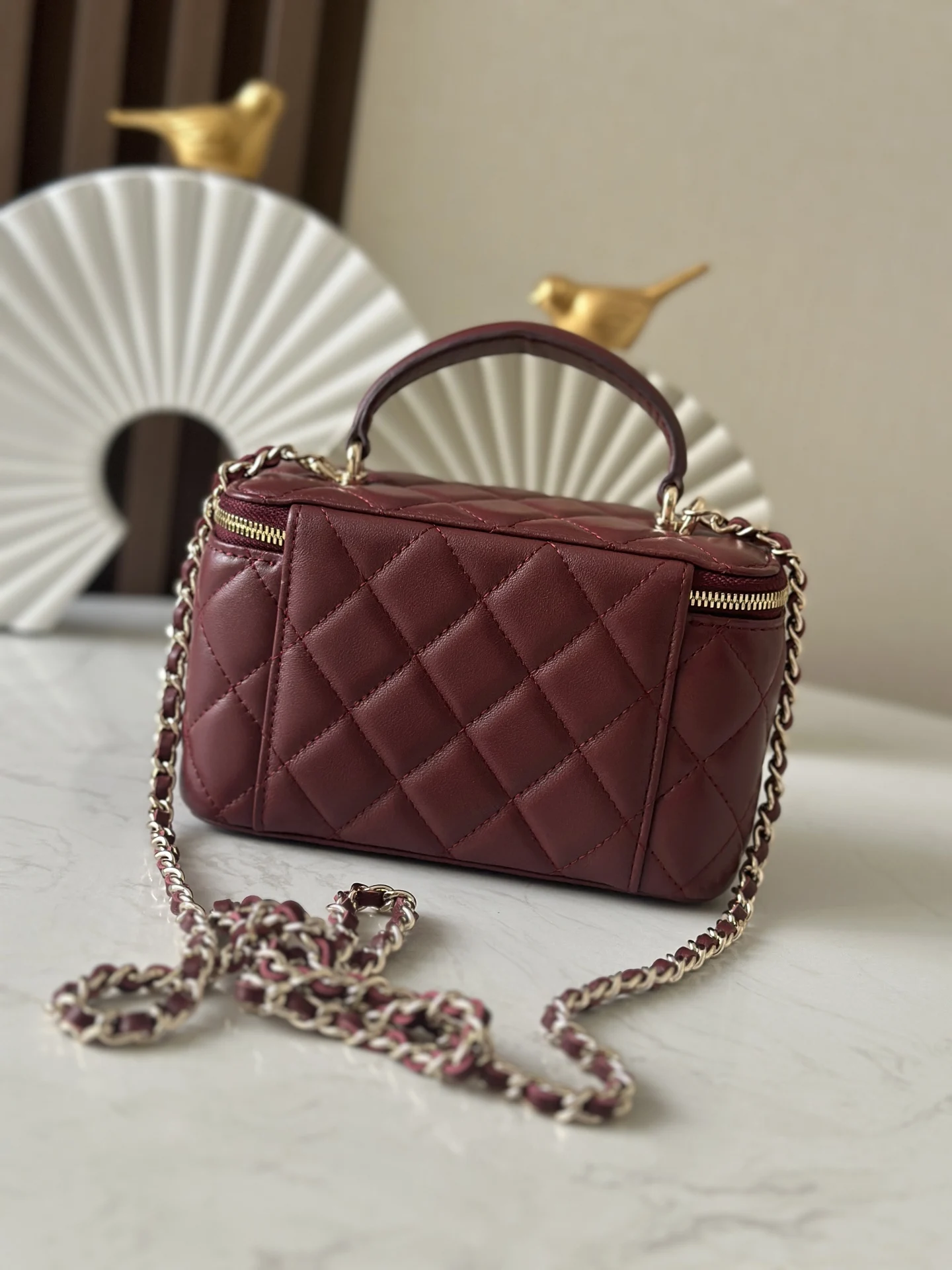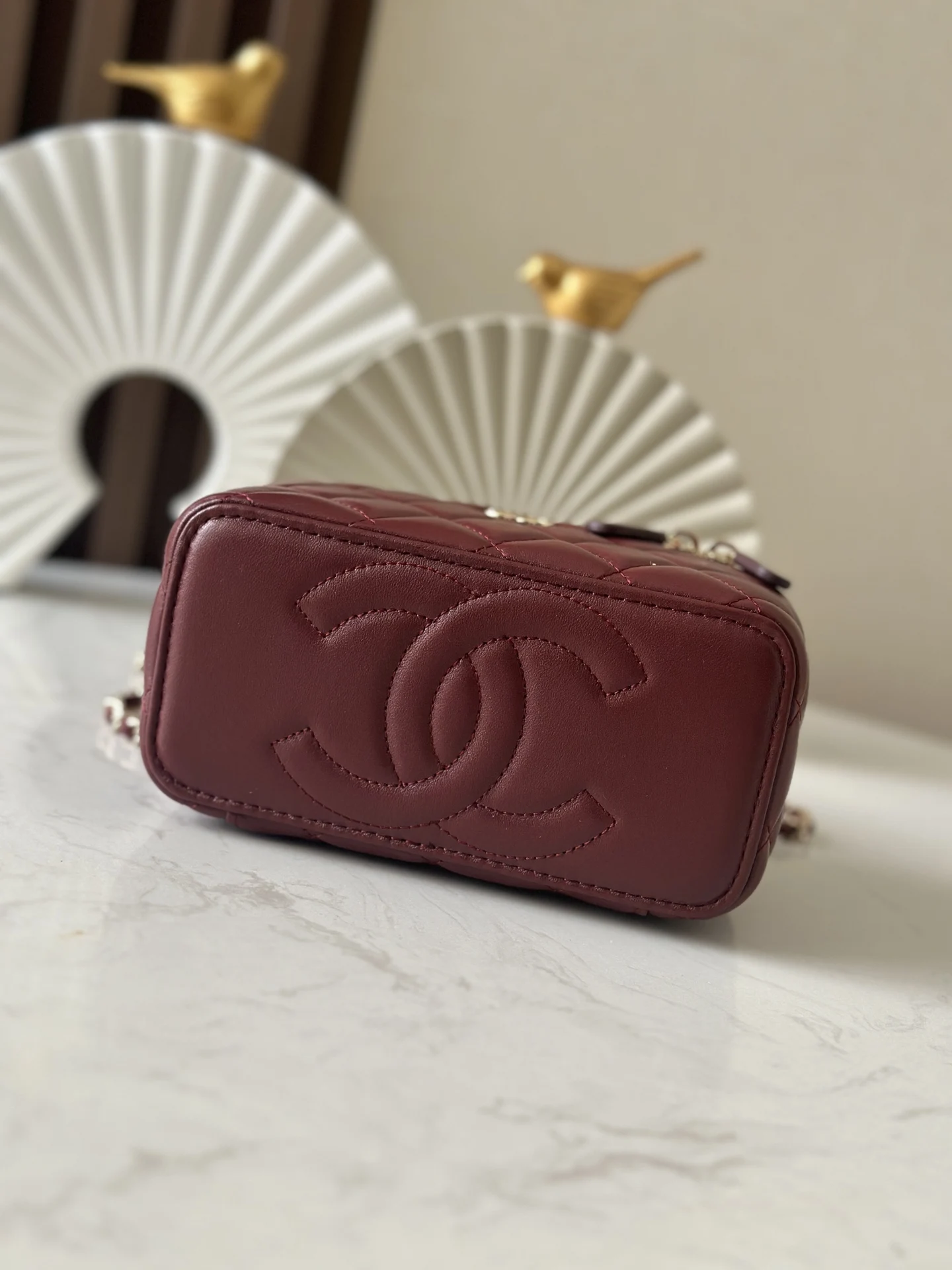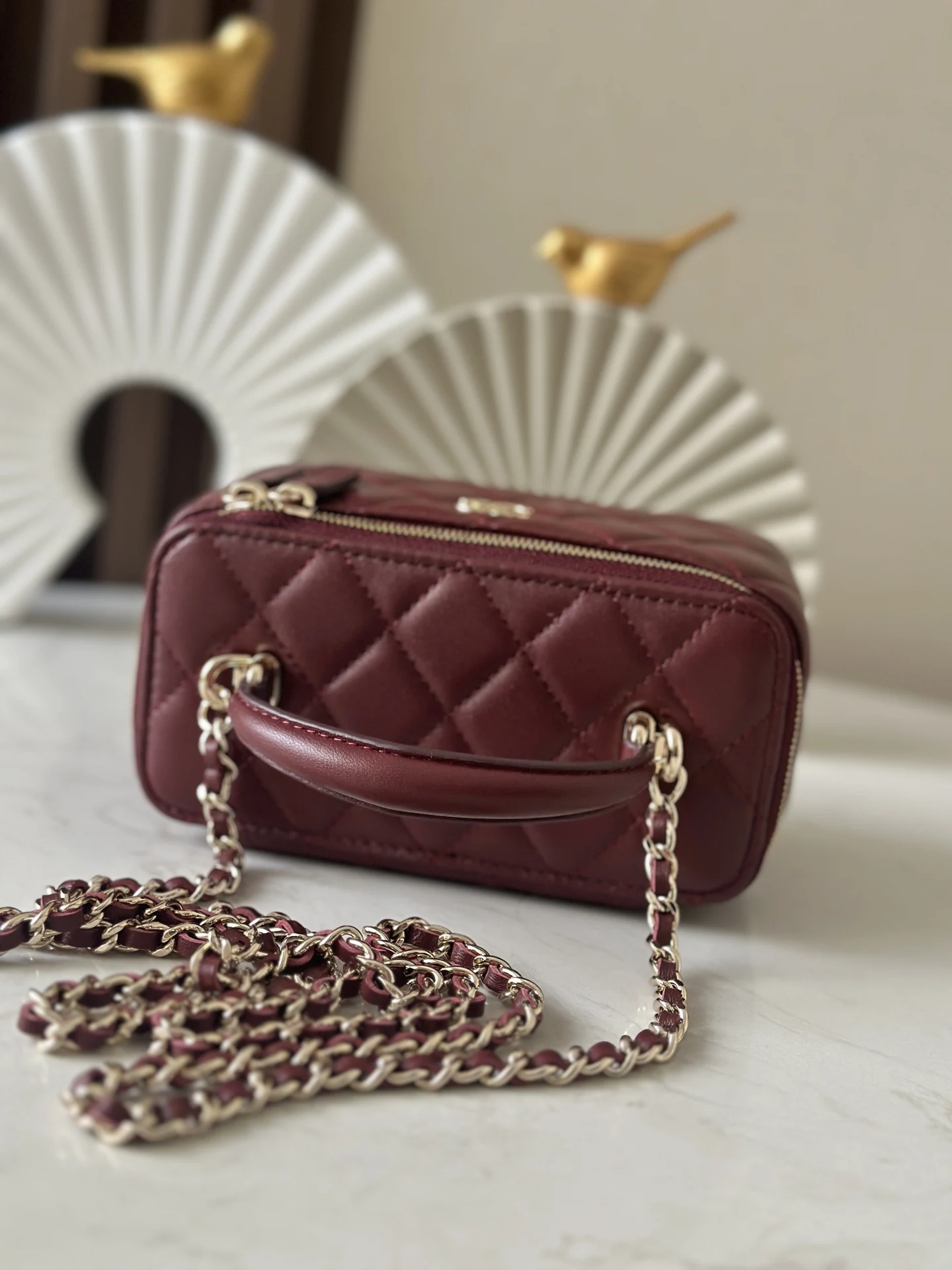 The new large chain cosmetic bag from Chanel s chip series features a built-in makeup mirror. This new box bag even has a handle! The actual product is completely captivating, offe..