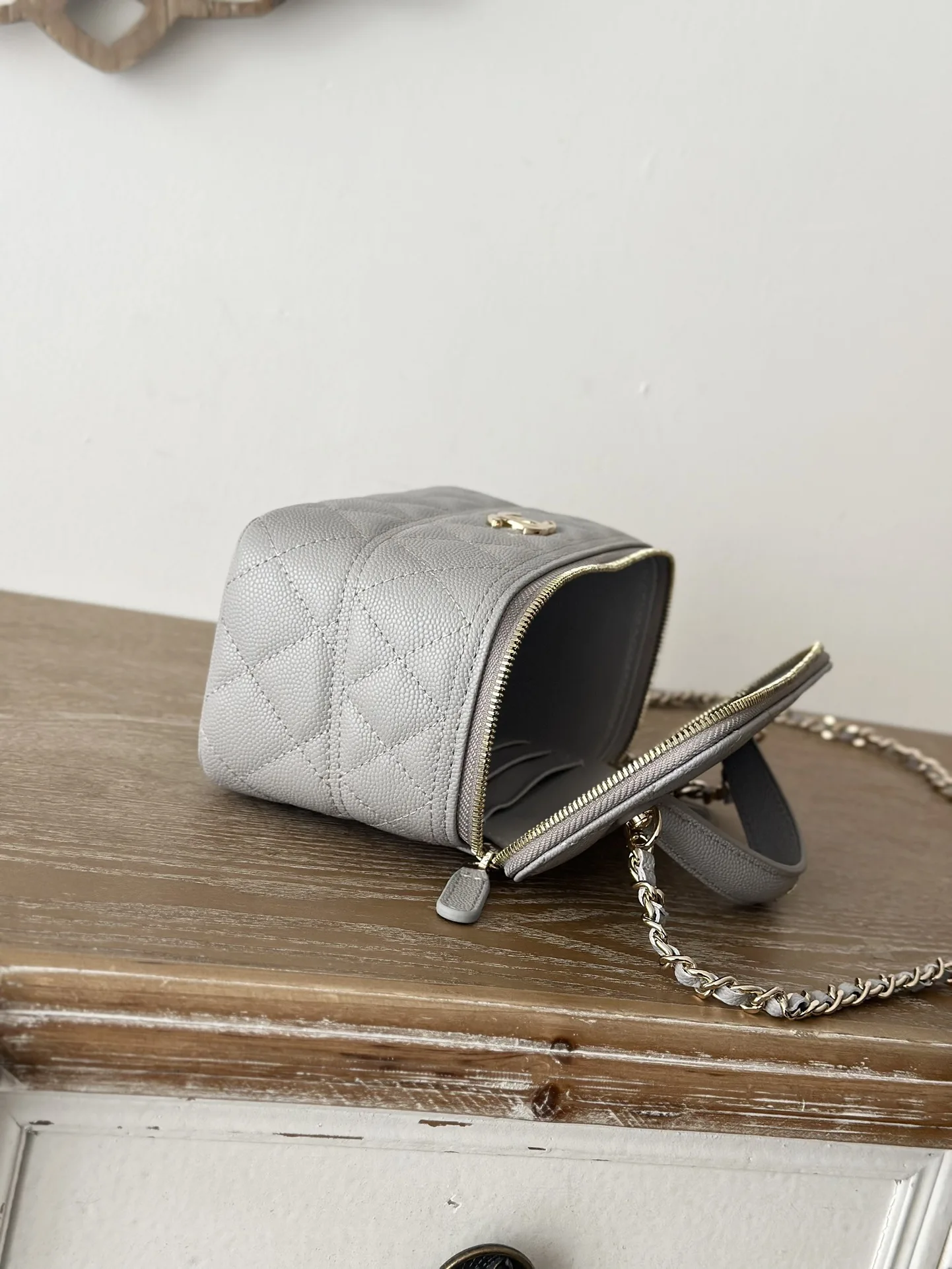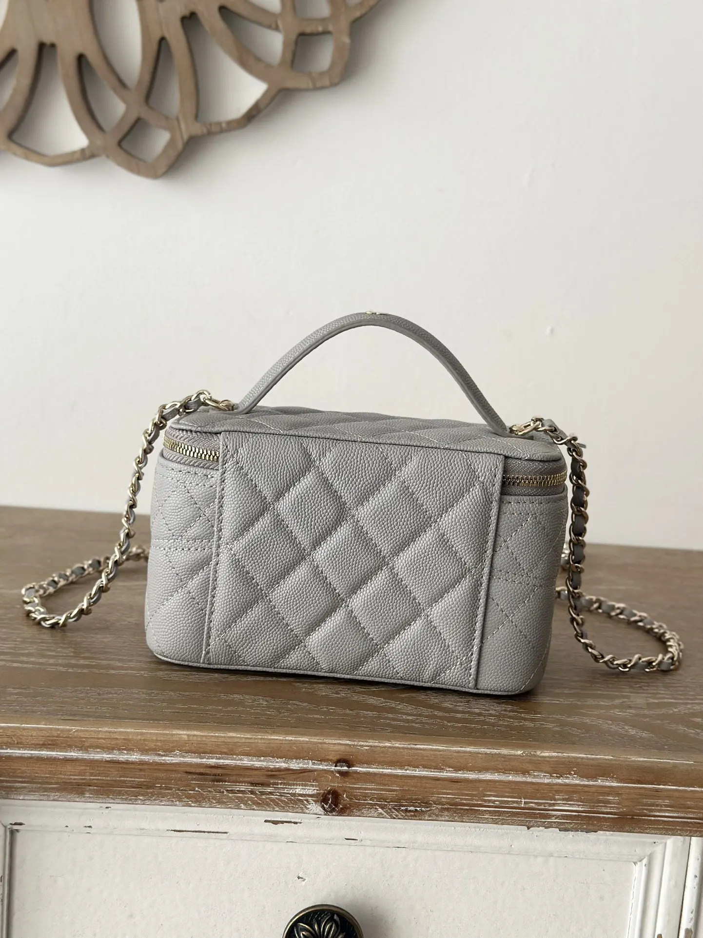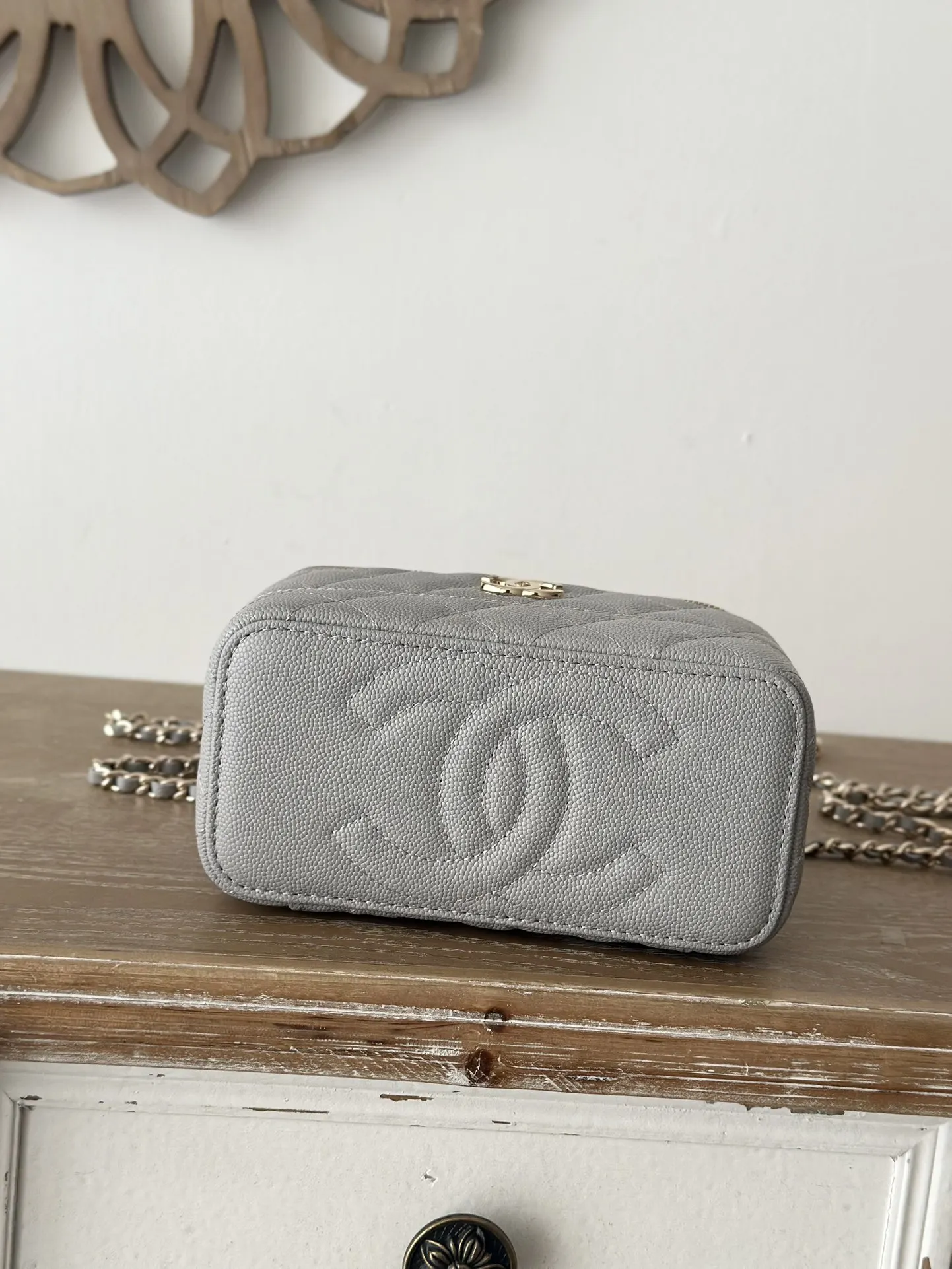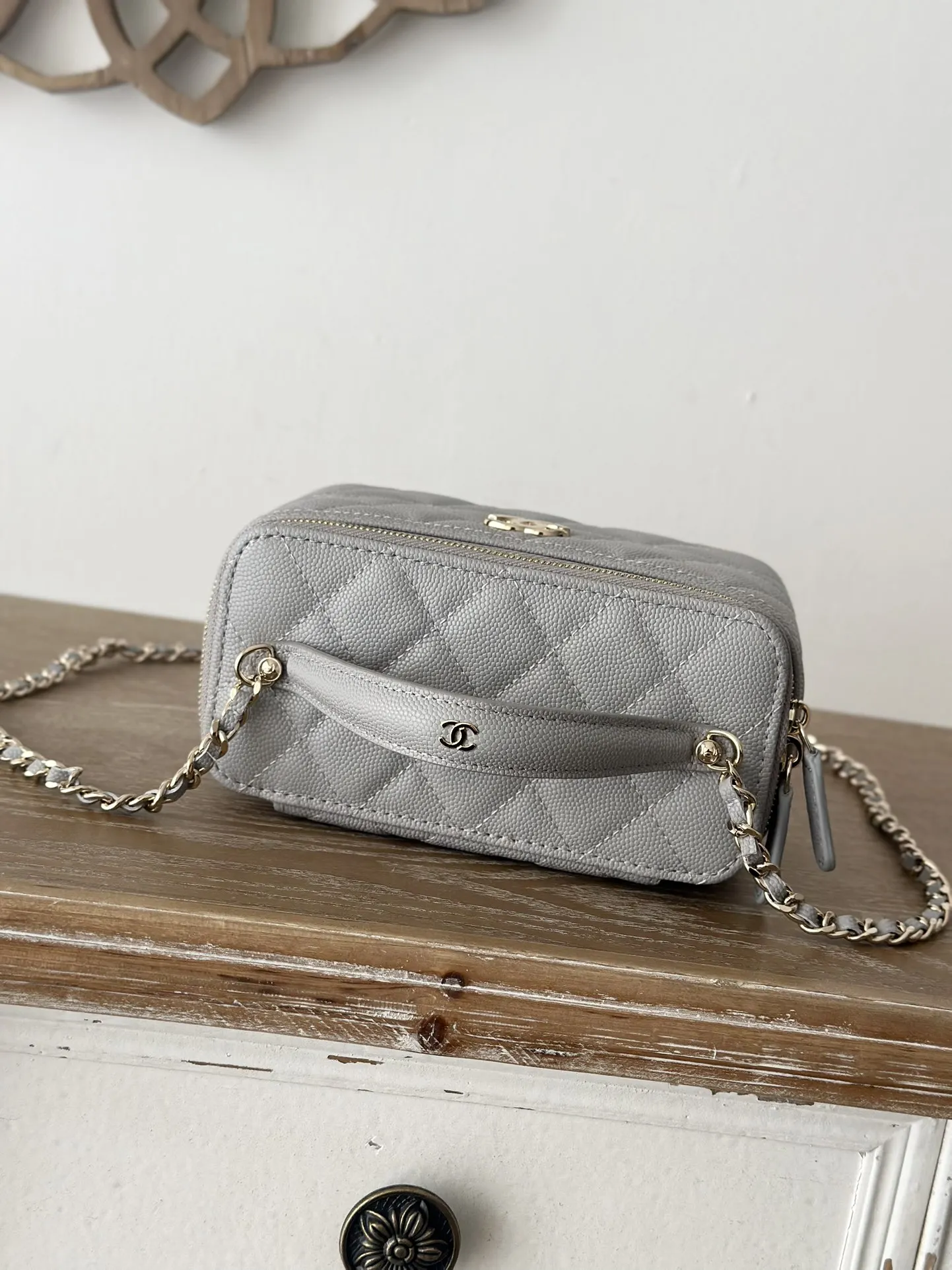 CHANEL 25c Lunch Box Bag. New crossbody wallet-on-chain, shoulder bag, crossbody bag, and handbag. A fashionable runway-inspired shopping bag in durable grained calfskin, designed to showcase high-end style and taste. A classic and elegant bag suitable for all seasons and outfits, a timeless piece you deserve. Dimensions: 9.5 17 8cm. Style code: 66022 Light Grey.