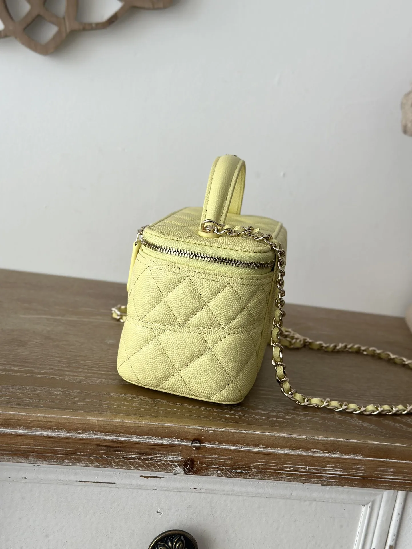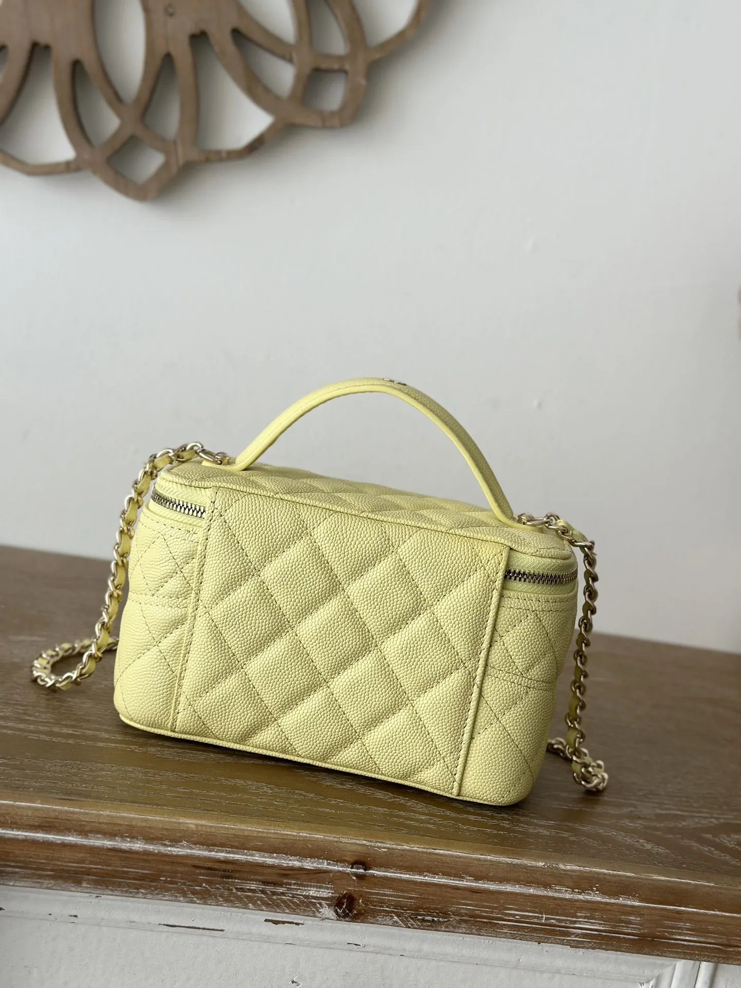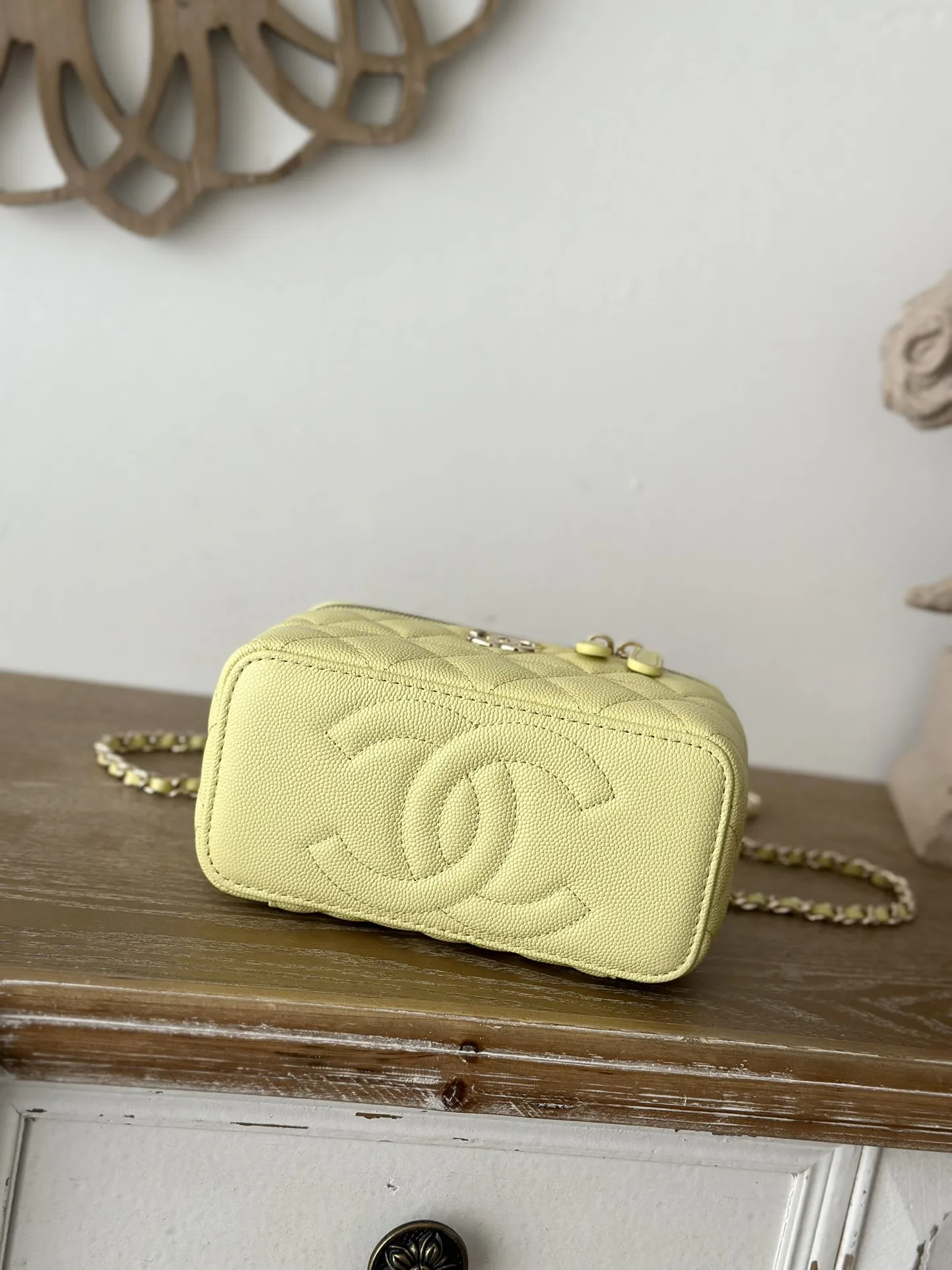 CHANEL 25c Lunch Box Bag. New crossbody wallet-on-chain, shoulder bag, crossbody bag, and handbag. A fashionable runway-inspired shopping bag in durable grained calfskin, exuding high-end elegance and sophistication. A classic and timeless design suitable for all seasons and outfits. A must-have. Dimensions: 9.5 17 8cm. Style code: 66022 Light Yellow.