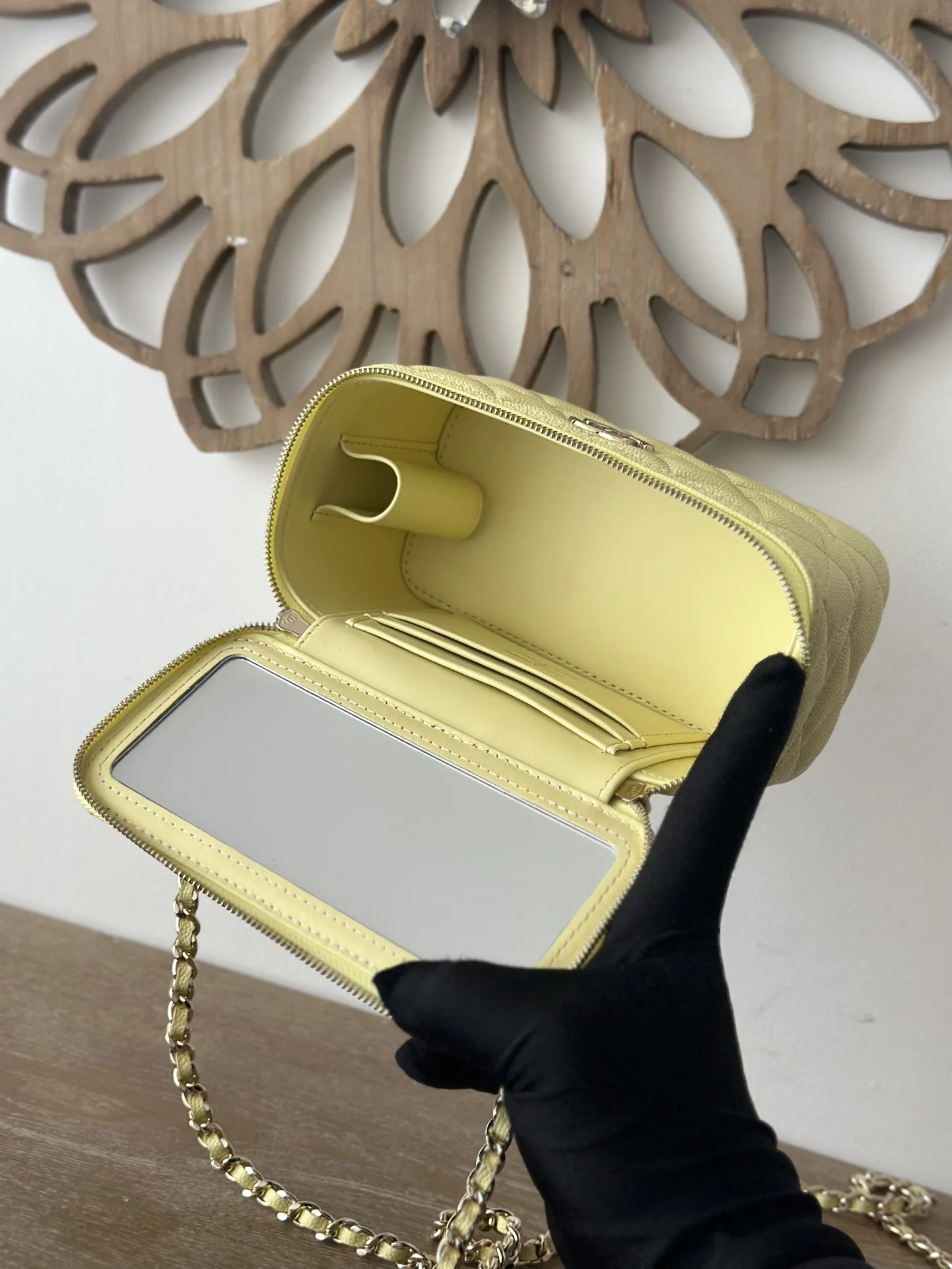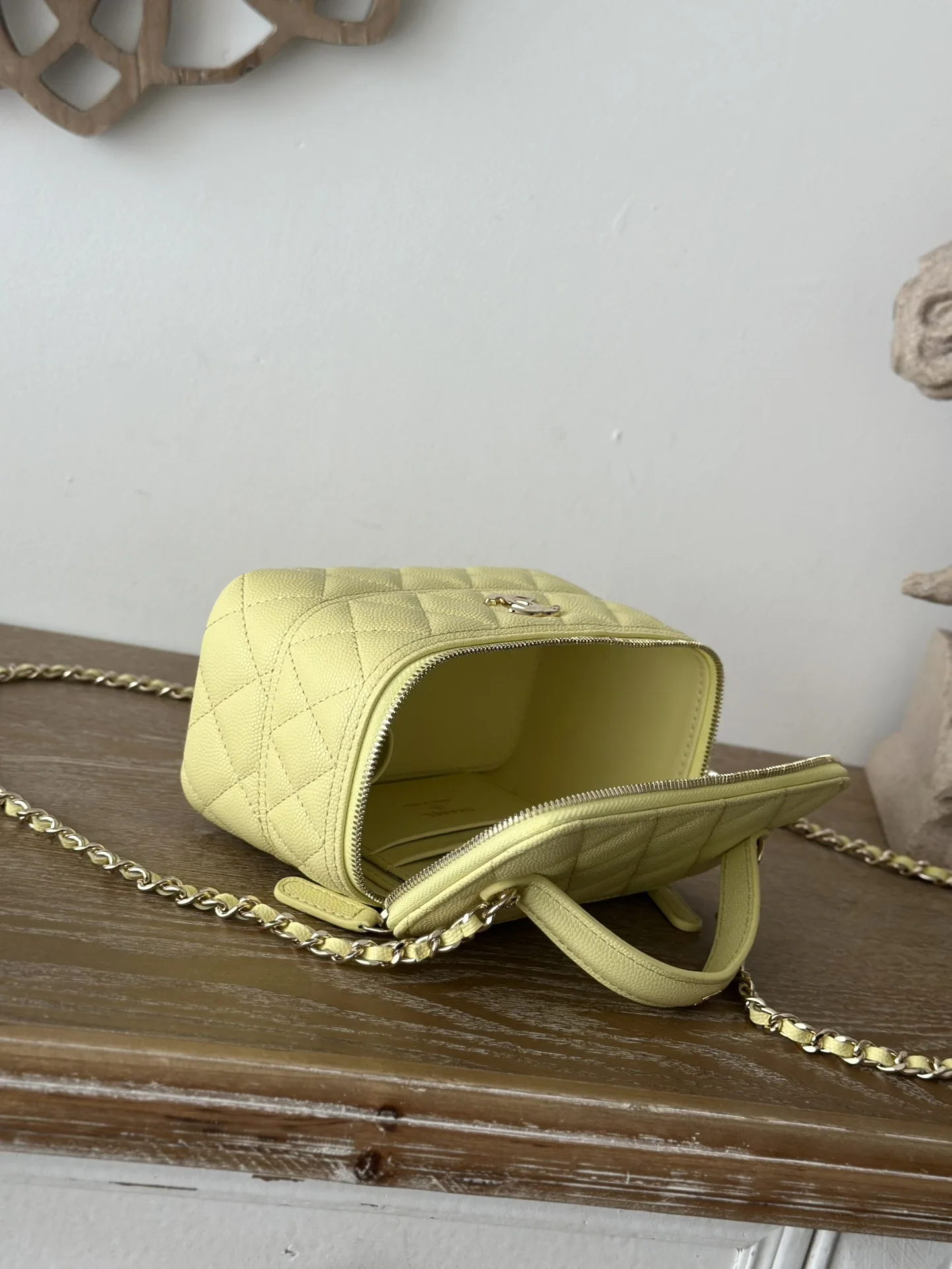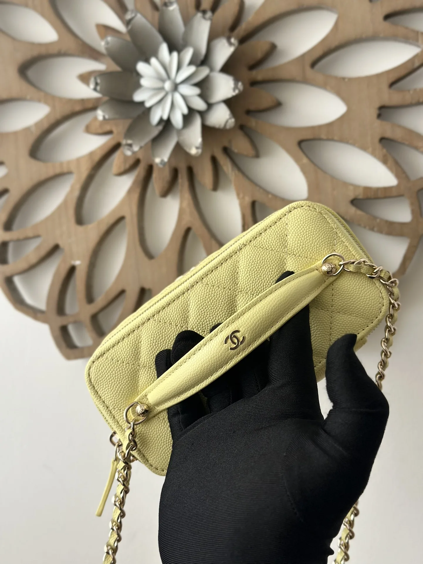 CHANEL 25c Lunch Box Bag. New crossbody wallet-on-chain, shoulder bag, crossbody bag, and handbag. A fashionable runway-inspired shopping bag in durable grained calfskin, exuding high-end elegance and sophistication. A classic and timeless design suitable for all seasons and outfits. A must-have. Dimensions: 9.5 17 8cm. Style code: 66022 Light Yellow.