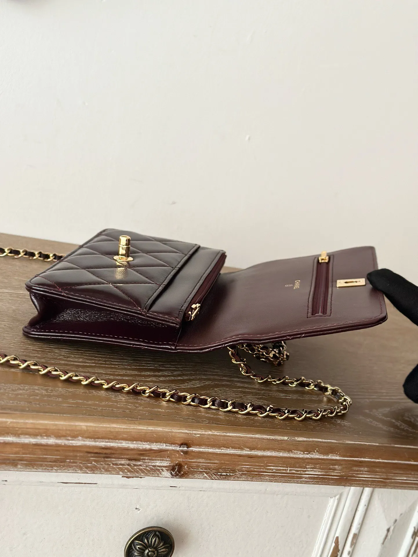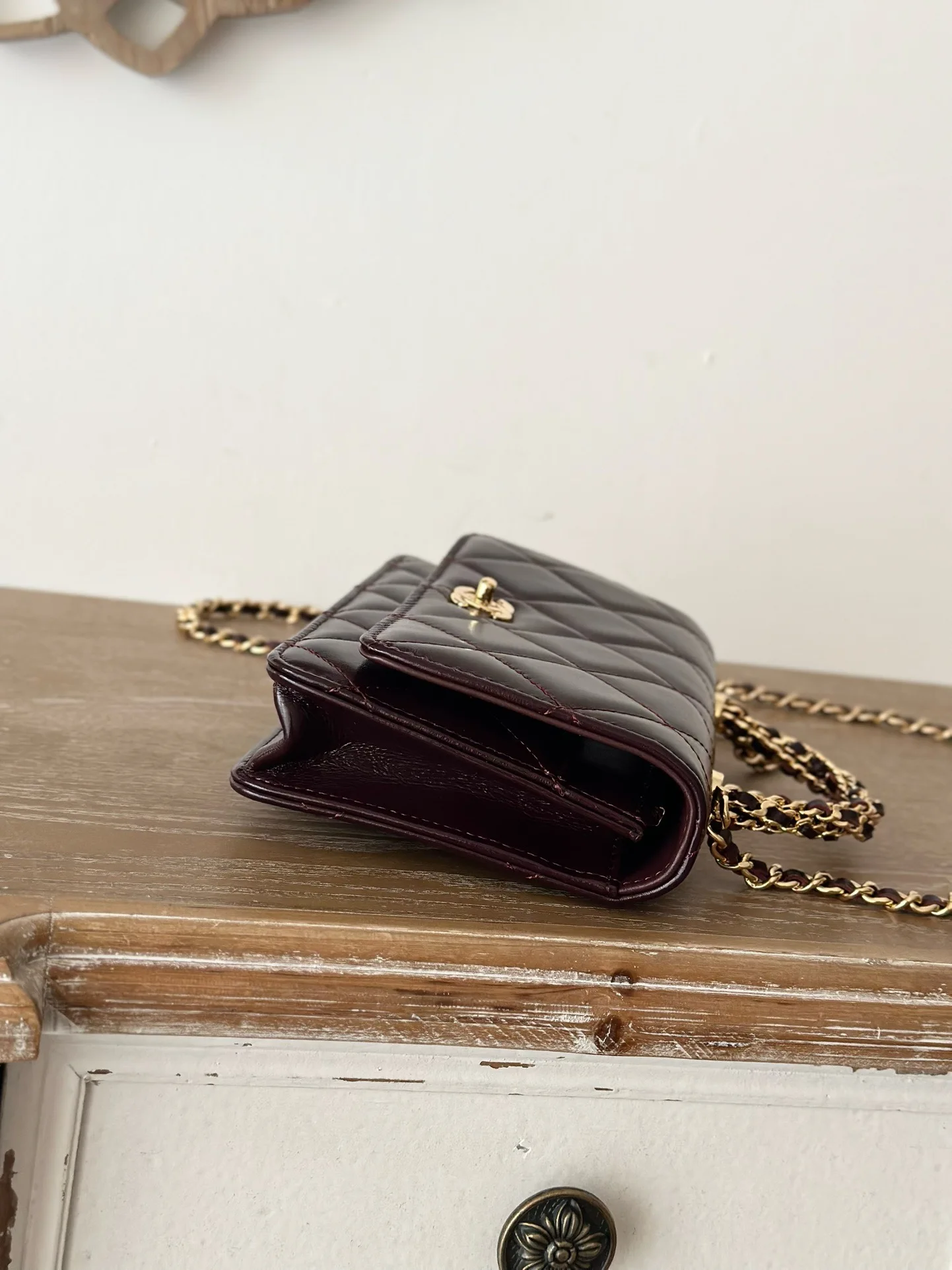 CHANEL 24B WOC with braided handle, chip version, oil wax lambskin, super glossy, supple and durable. The twisted handle is composed of multiple leather-woven chains, with both design and texture. The capacity meets daily needs. Small and exquisite, suitable for all commuting outfits. Size: 12*19*3.5cm. Code: 66024. Date Red Burgundy with packaging.