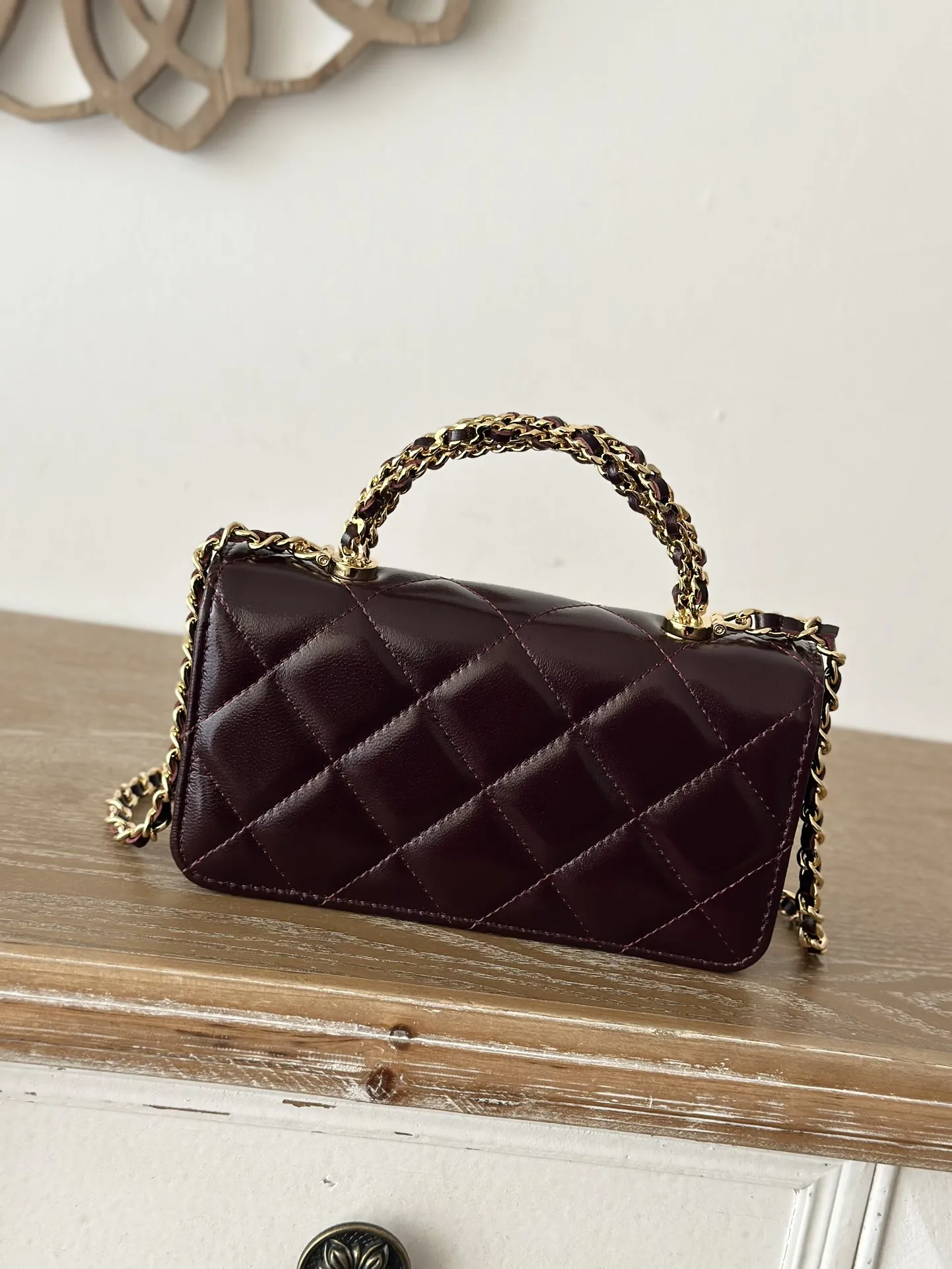 New chip version 24Bchane124b woven handle oil wax lambskin chain bag, oh my god, this is absolutely stunning! So exquisite! Definitely gives off a rich girl vibe! I love the sh..