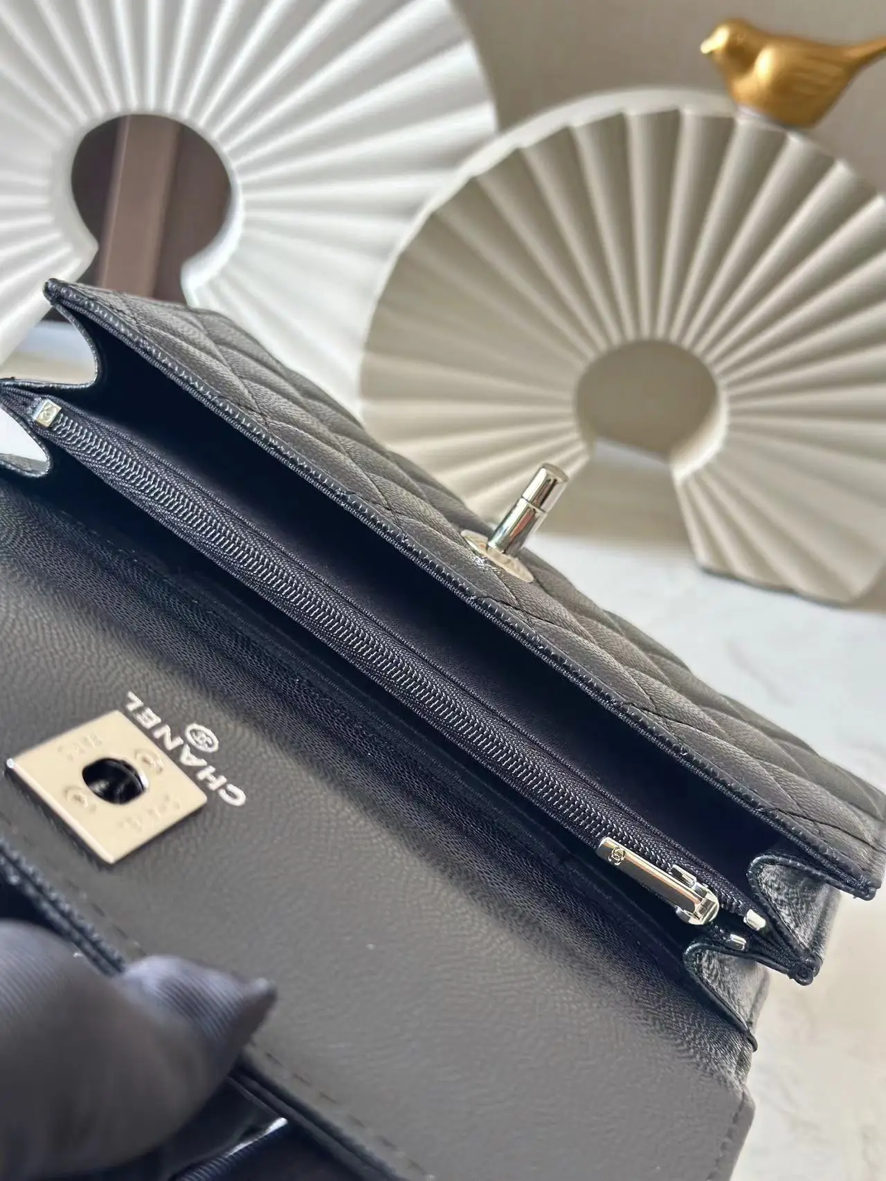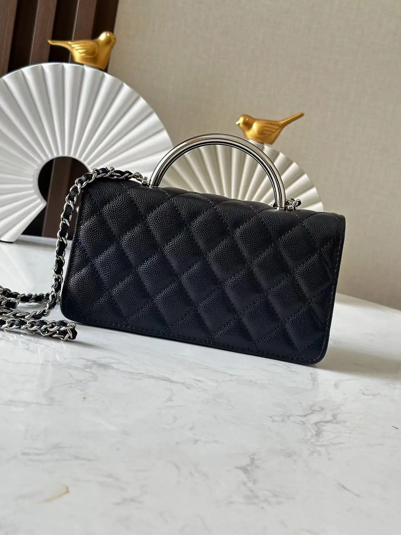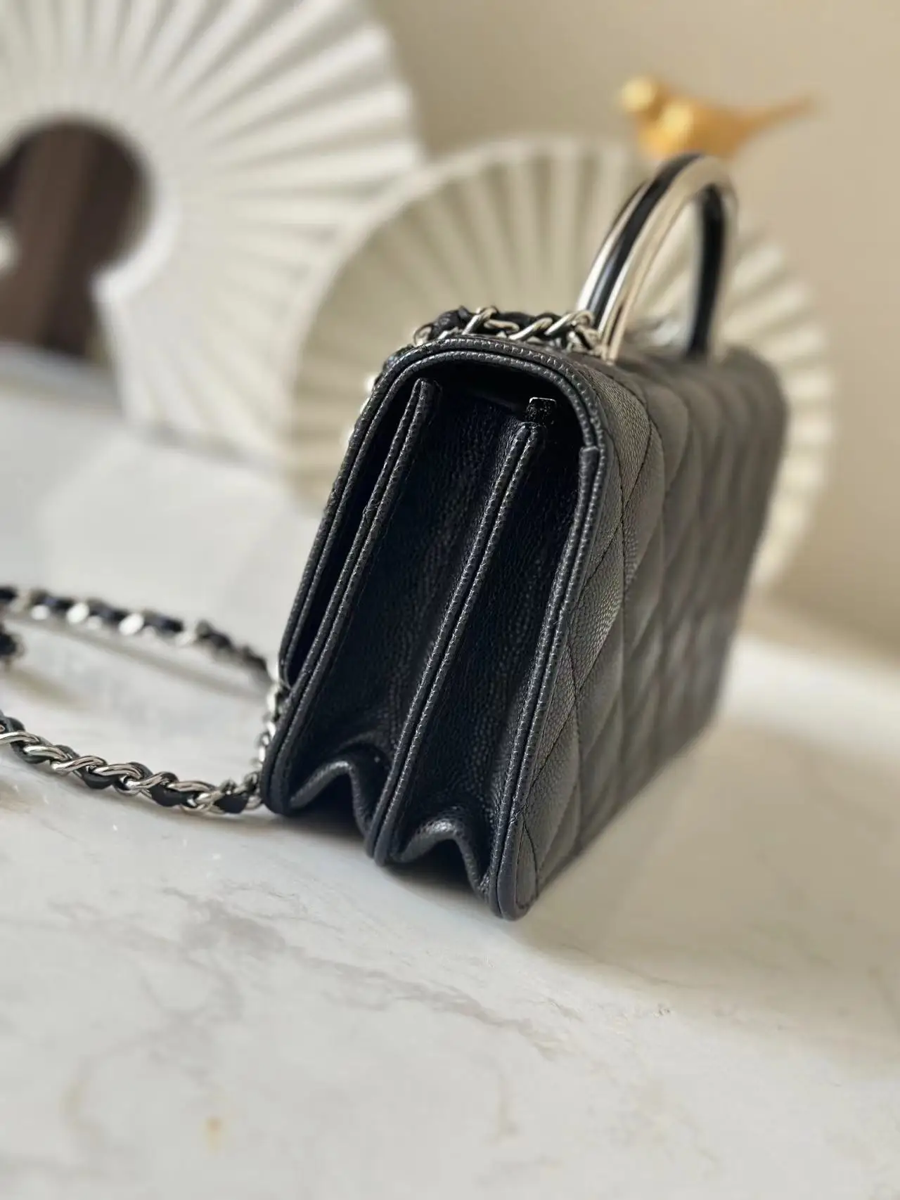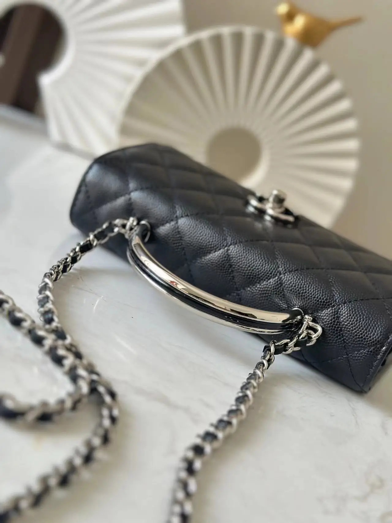 Chip version accordion bag ohanel 25p black and silver handle - love it at first sight! The handle and logo are epoxy designs, so bling bling and beautiful!! A collection of hig..
