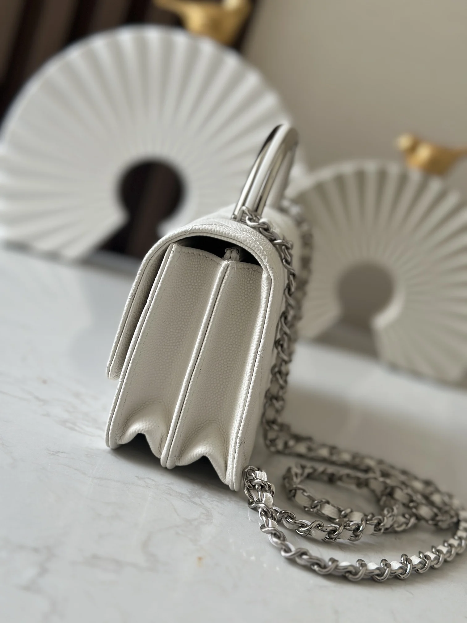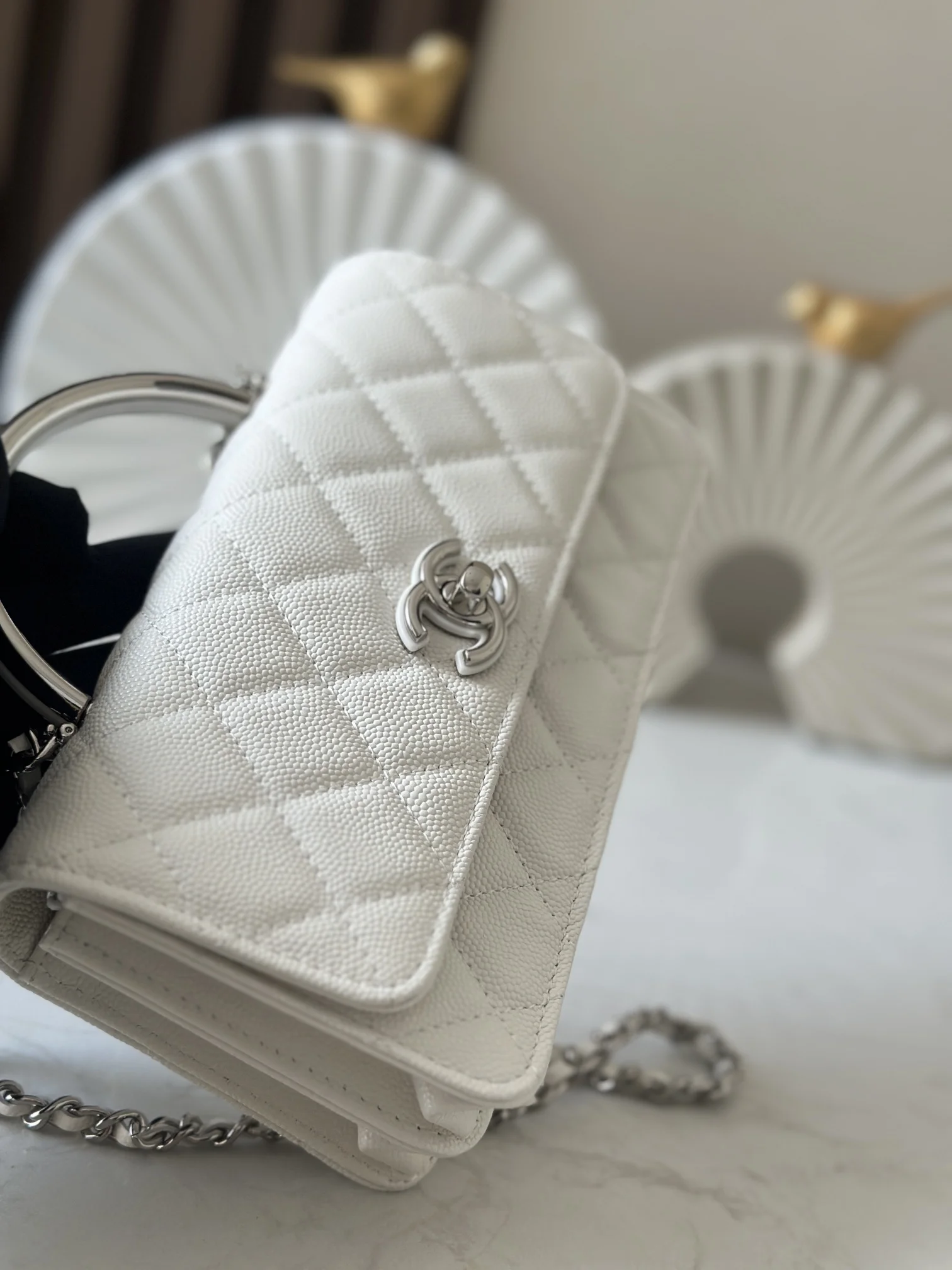 Chip version Accordion bag ohanel 25p black silver handle, fell in love at first sight. The handle and logo are epoxy designs, bling bling is so beautiful!! High-end black collection Super love cool beauty, each one is an interpretation of simplicity and demeanor Backpack woc cf handbag cf hollow plain woolen plain rhinestone plain pearl plain Deep and not losing, luxurious, they can simply add a full of high-end charm to girls Just looking at them is so beautiful Which one is your dream bag! Size: 11x 18.5x6cm Number: 66030 White