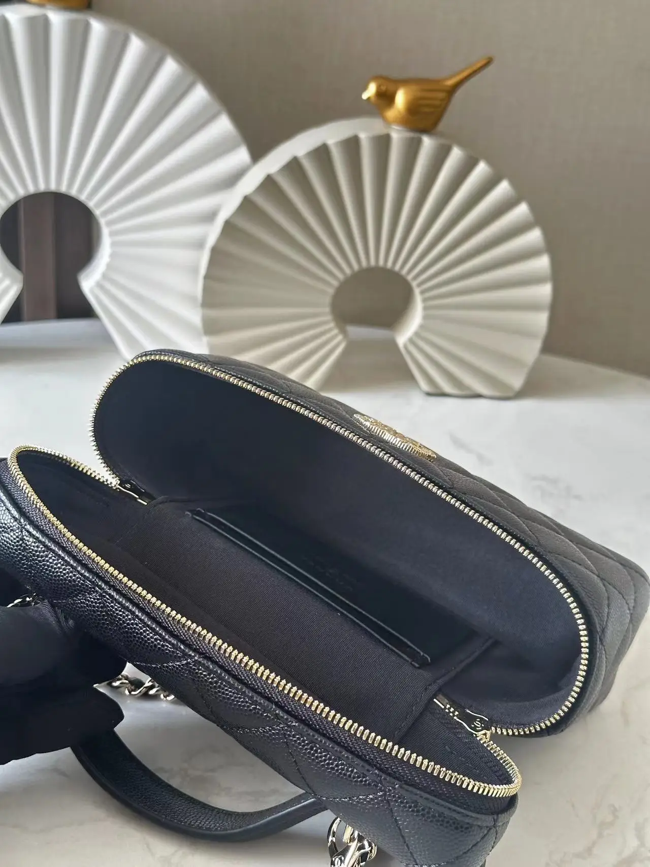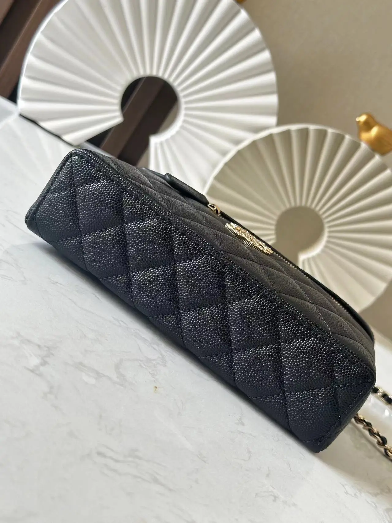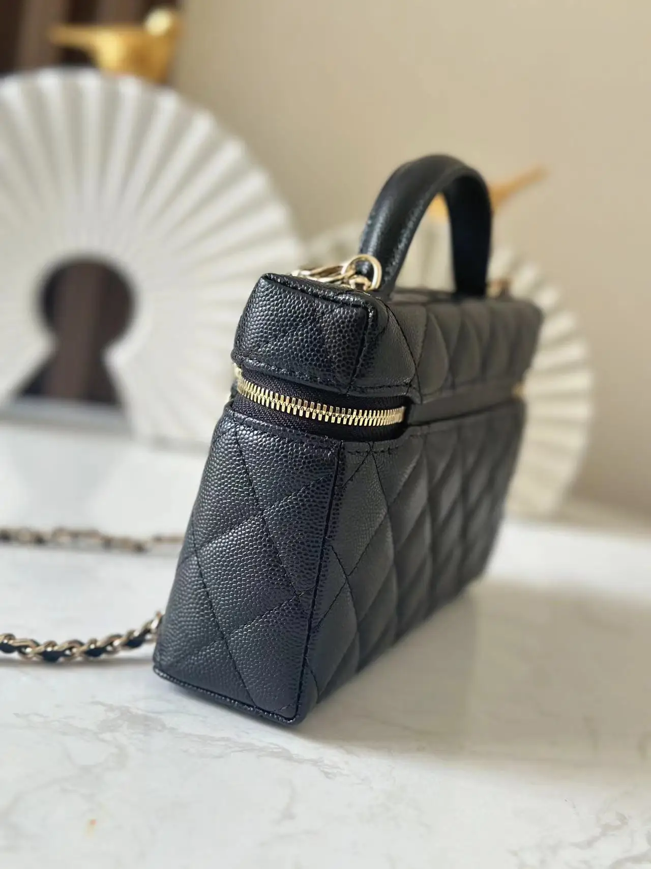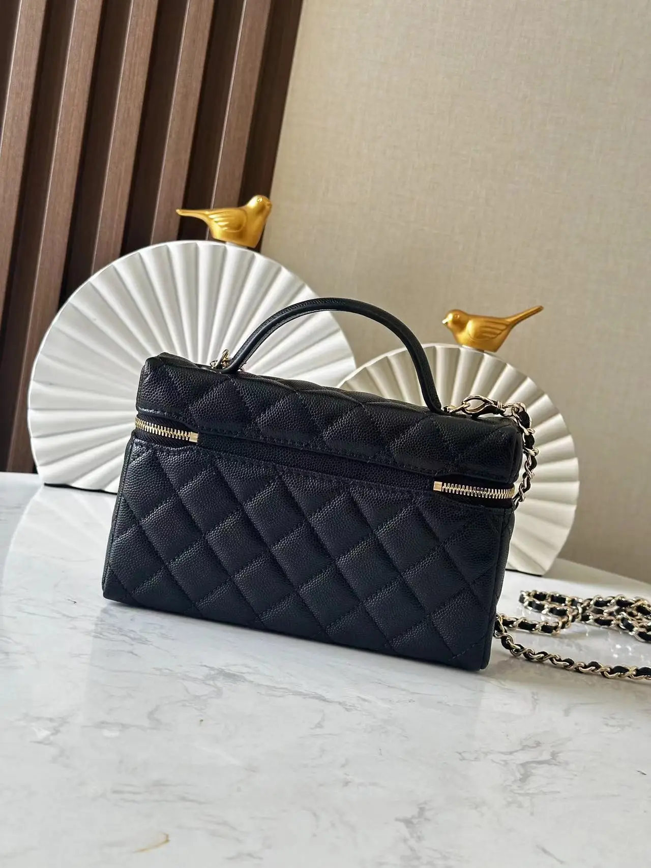 Chip version ohanel 25p heart logo lp handle box bag black gold is so beautiful! Very classic and durable design with a very large capacity, enough to hold two large phones. The..