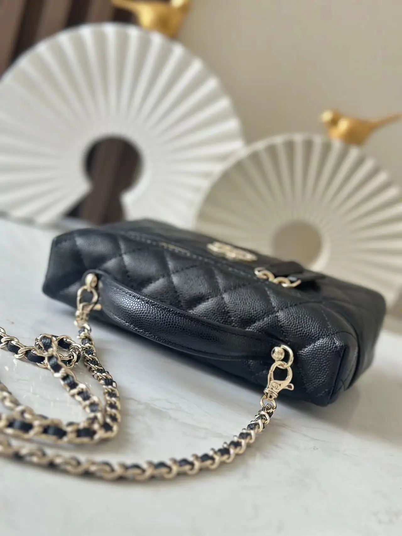 Chip version ohanel 25p heart logo lp handle box bag black gold is so beautiful! Very classic and durable design with a very large capacity, enough to hold two large phones. The shoulder strap is also freely detachable! Highly recommend original authentic Haas lychee small calfskin number: 66034 Black Size: (14*19*5cm) with packaging