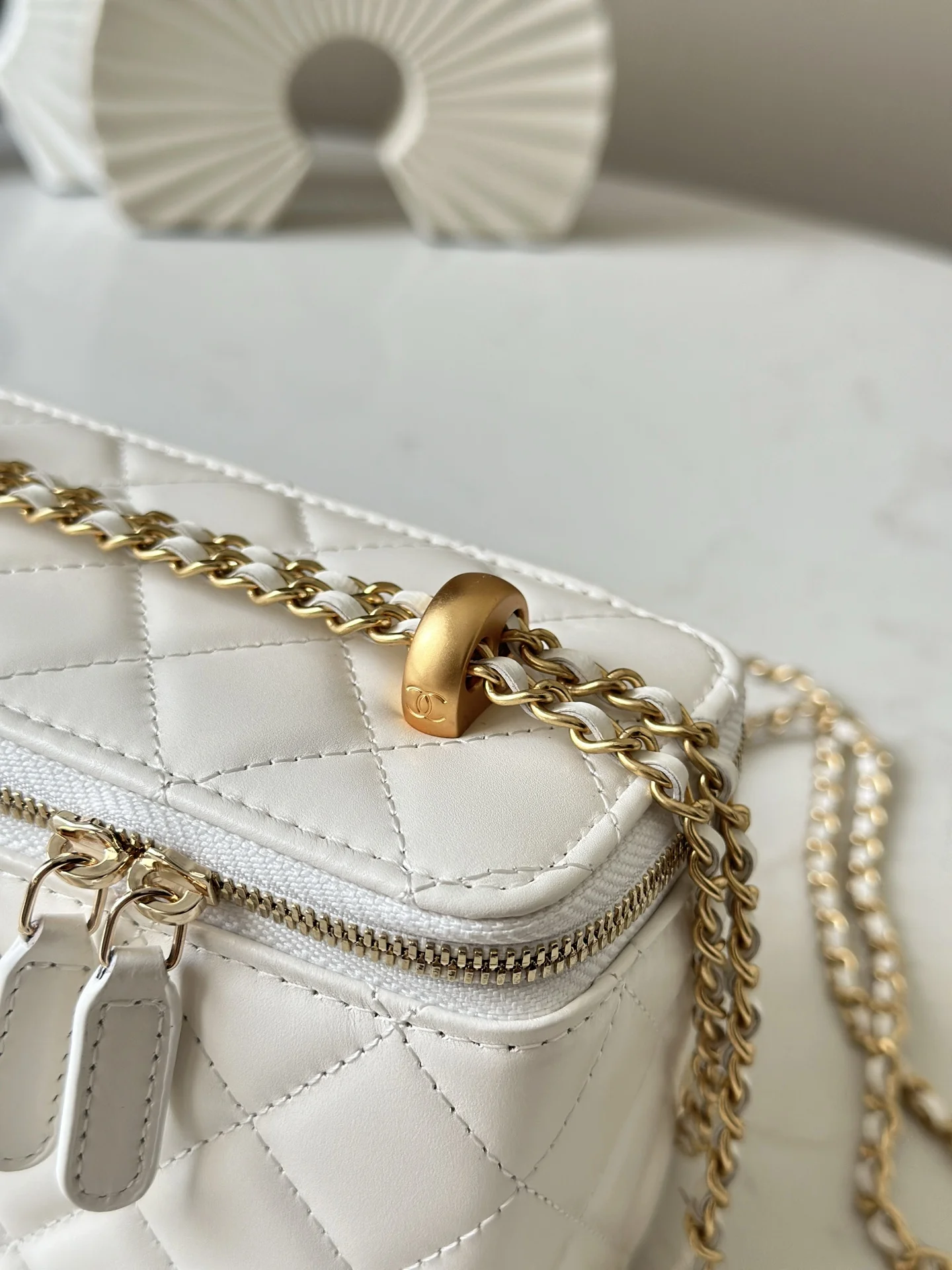 CHANEL 24C Double Gold Ball Box Chanel s new season double gold ball is truly love at first sight. Classic black and gold, two gold balls, and the chain is adjustable in length. If your SA has it in stock, grab it quickly. I prefer to carry this bag by hand, crossbody, or over the shoulder. The capacity is also adjustable. Style code: 66039 White Size: 17cm