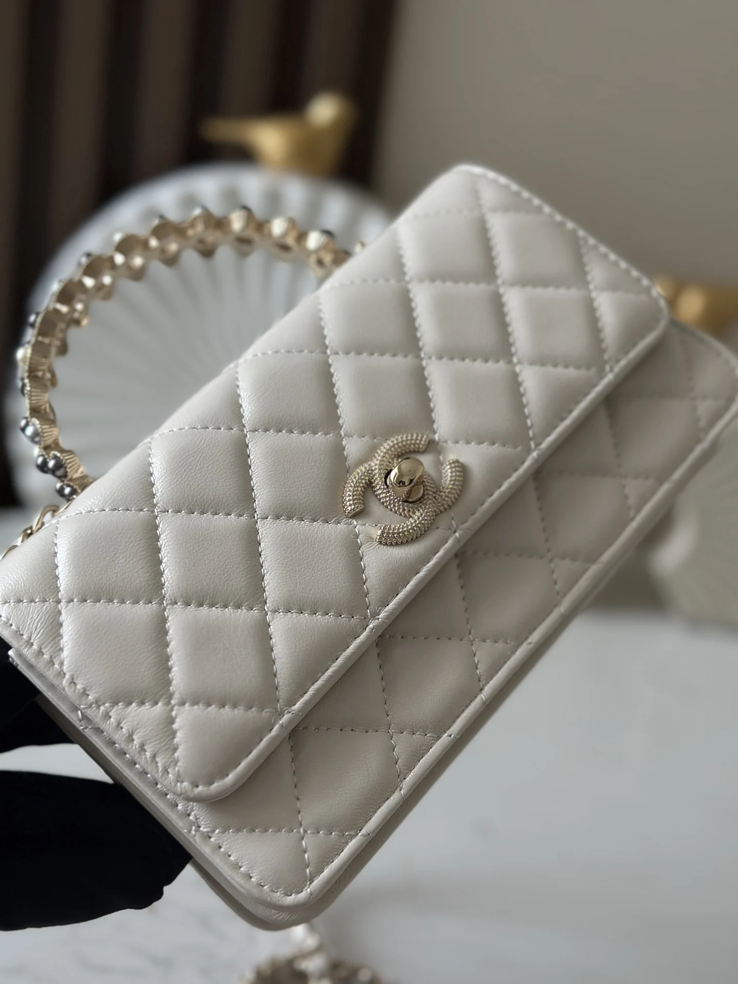 Chanel 66048 24P Pearl Handle WOC Women s Top Handle Crossbody Bag