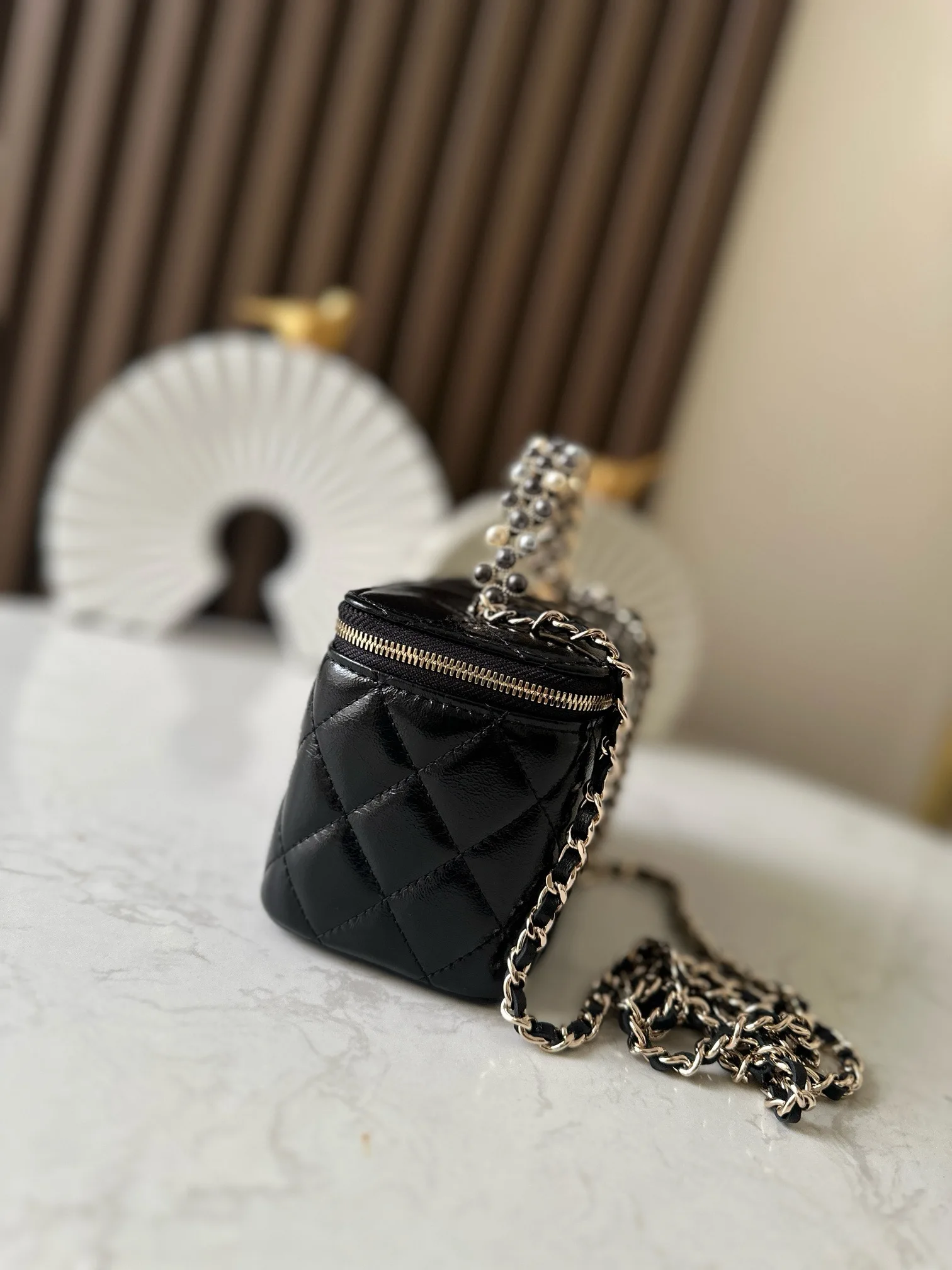 Chanel 66049 24P Pearl Cosmetic Long Box Makeup Bag Women s Handbag Shoulder Bag