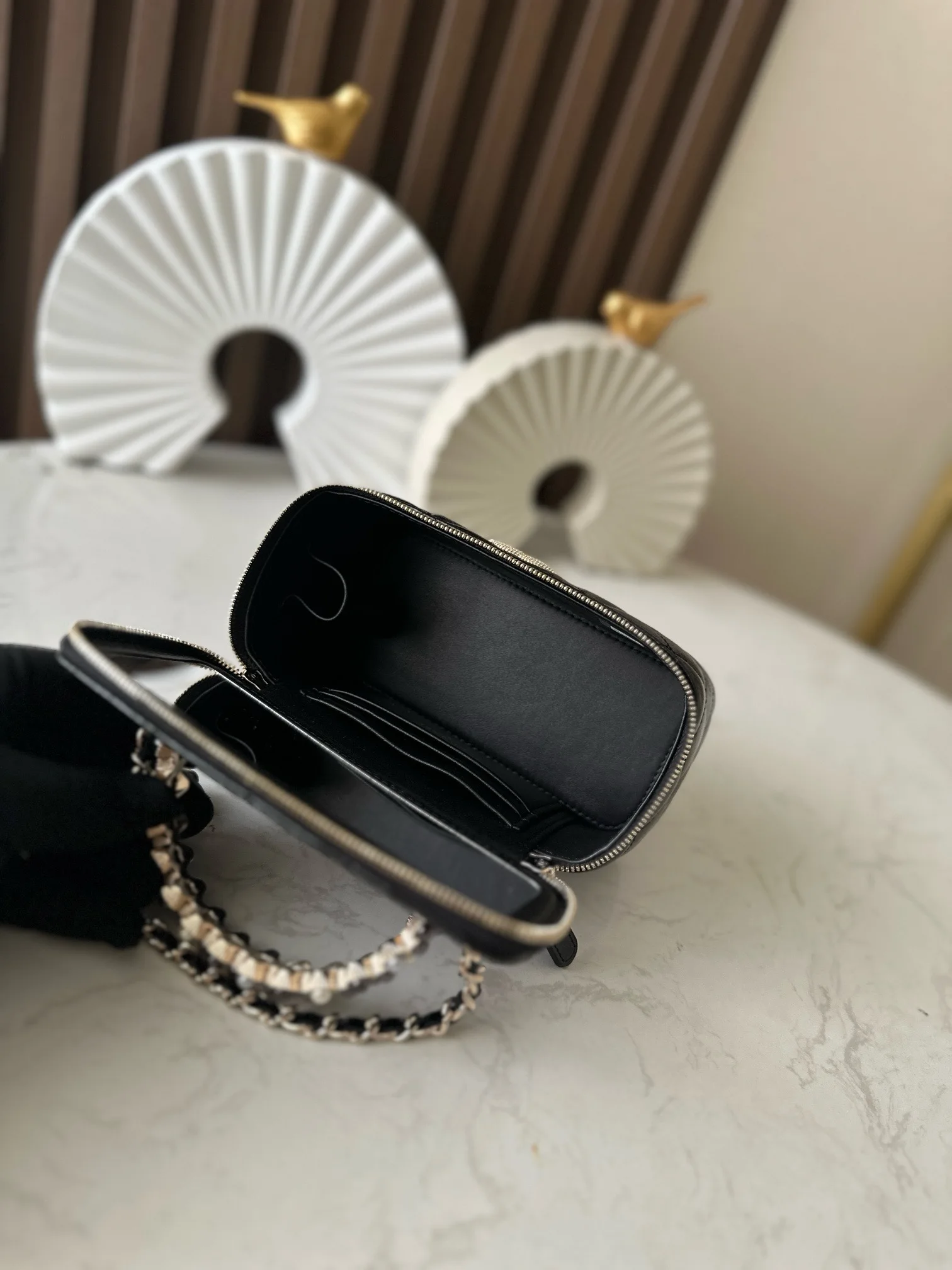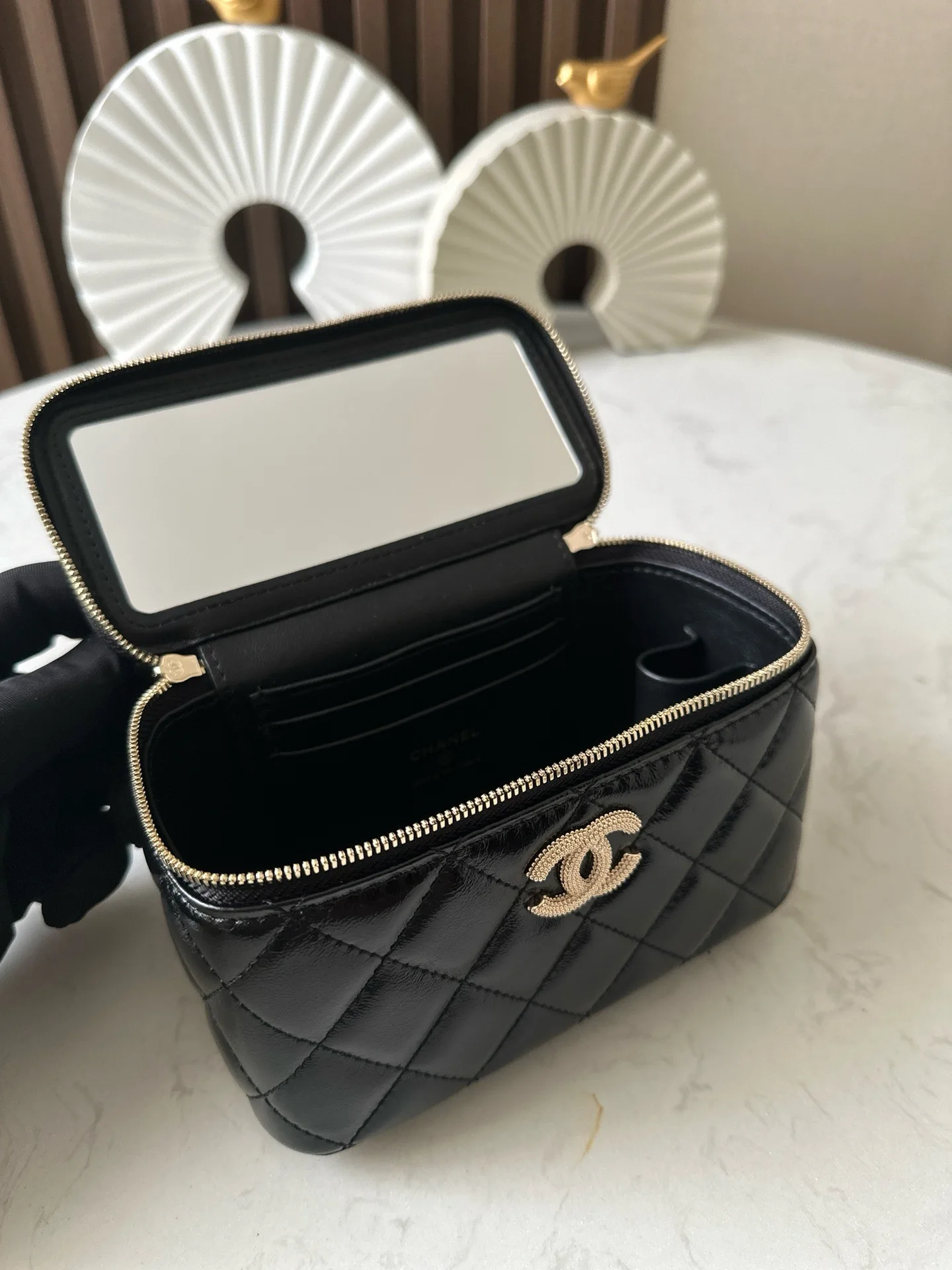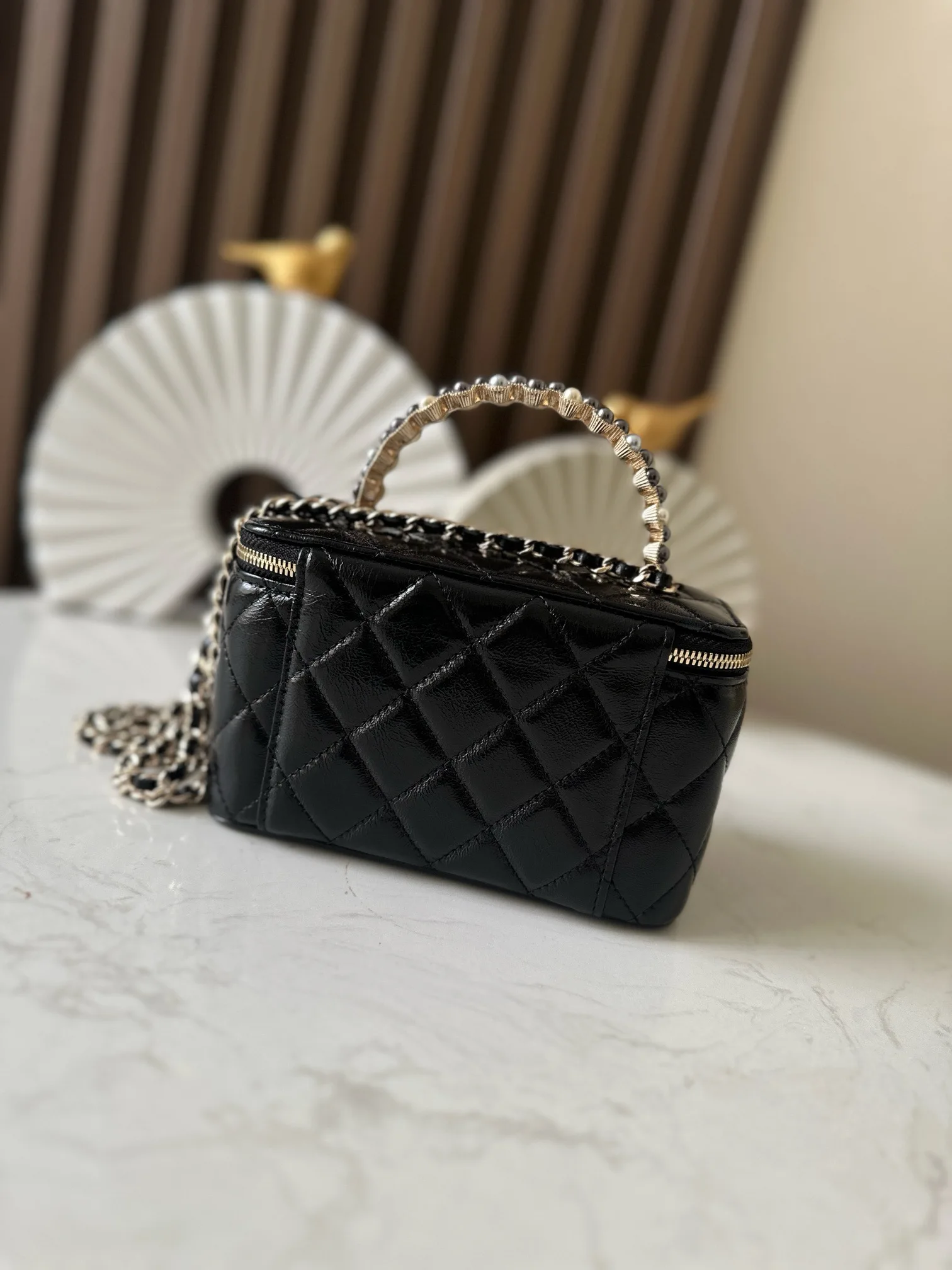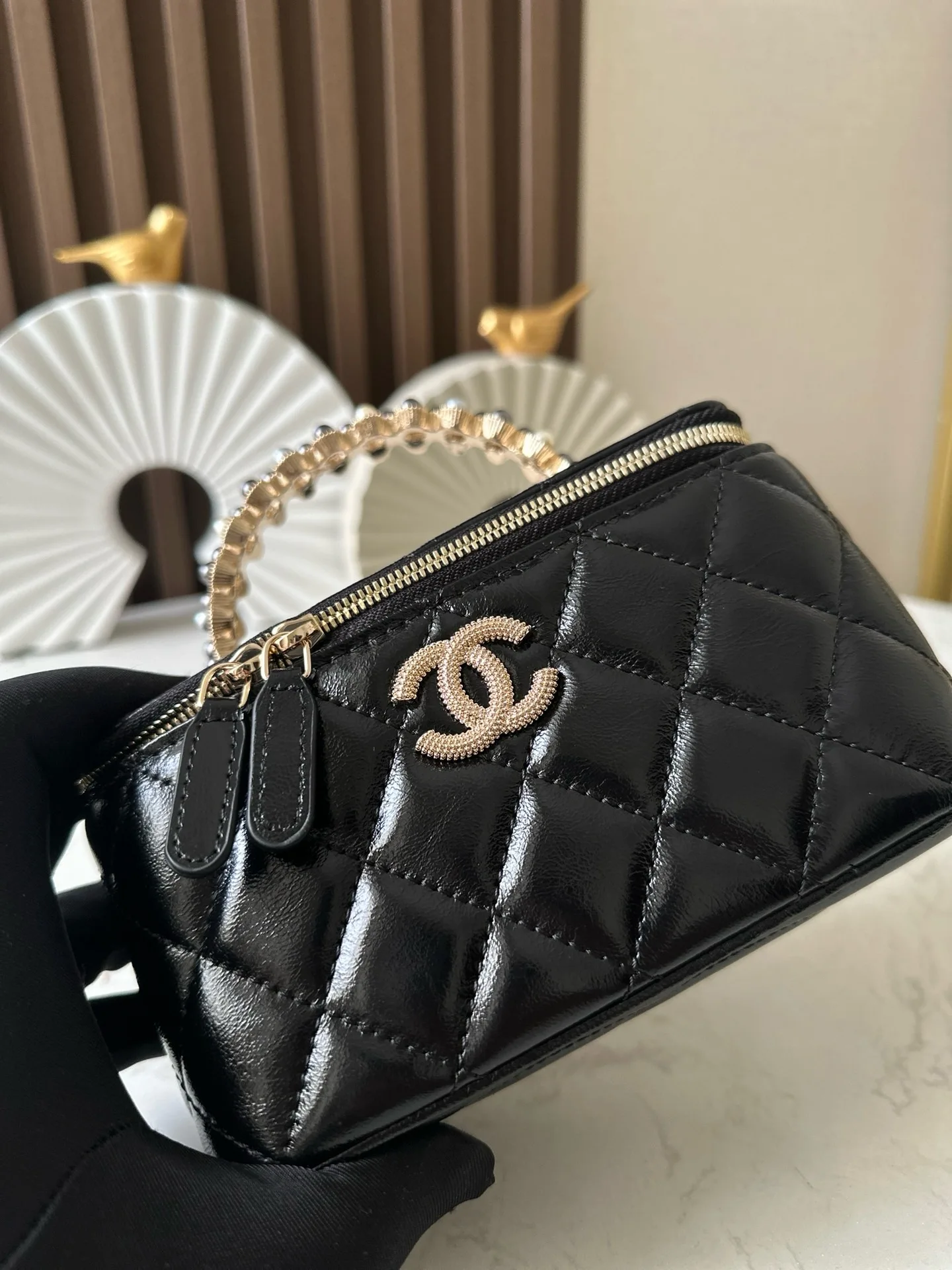 Chip version NEChane1 popular 24p24p pearl makeup long box black, eternal fragrance Chane124p makeup bag with mirror, portable for touch-ups anytime, anywhere. Low-key and elegant handle inlaid with small diamonds, exquisite up close, beautiful wherever you go No.: 66049 Black Size: 9.5*17*7.8cm with packaging