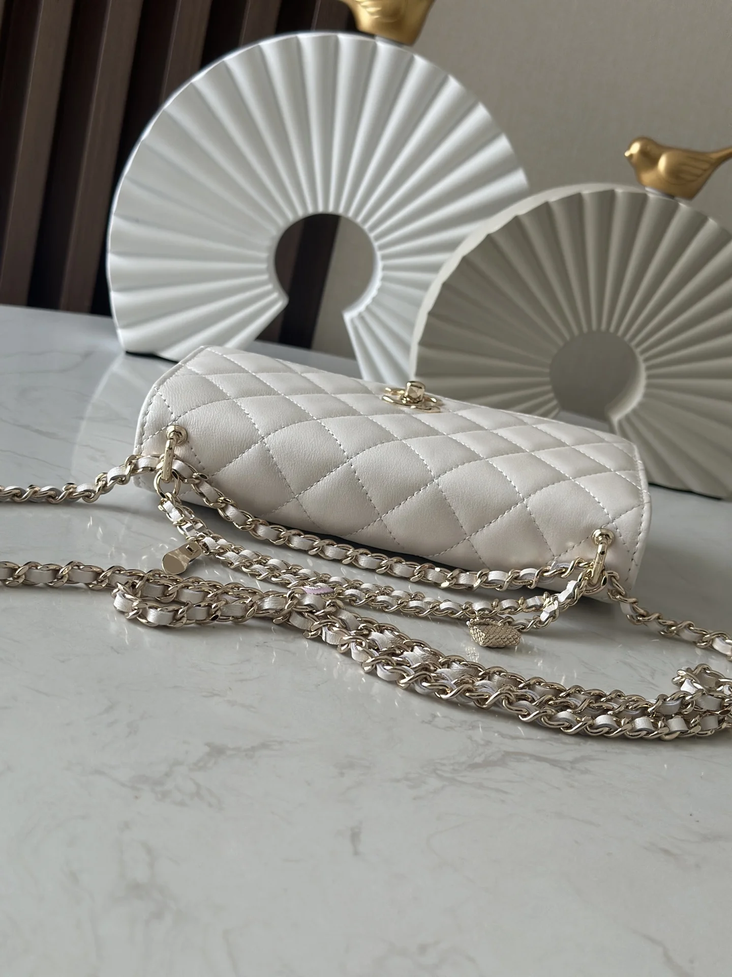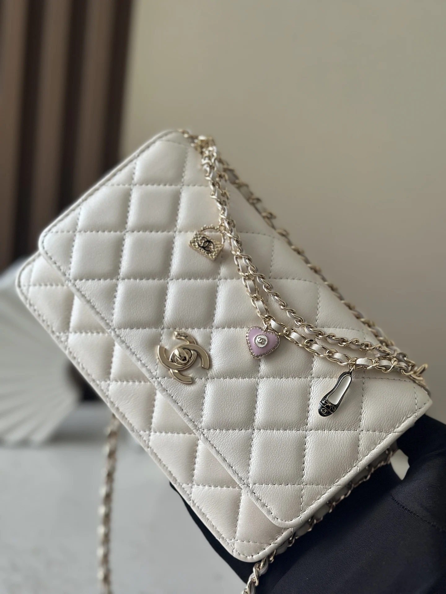 Chanel 2025 Spring Summer Chip Version: Chanel truly understands the hearts of young women! The 2025 Spring Summer collection is lightweight, playful, and exquisite, featuring pearlescent lambskin with classic quilting and a gold CC logo. The handbag also includes a pink heart with a gold chain, making it instantly captivating. It can be worn as a crossbody or shoulder bag, offering good capacity, enough for tissues, making it suitable for both commuting and daily use.Style number: 66051 WhiteDimensions: 19.5*13*3.5 cm