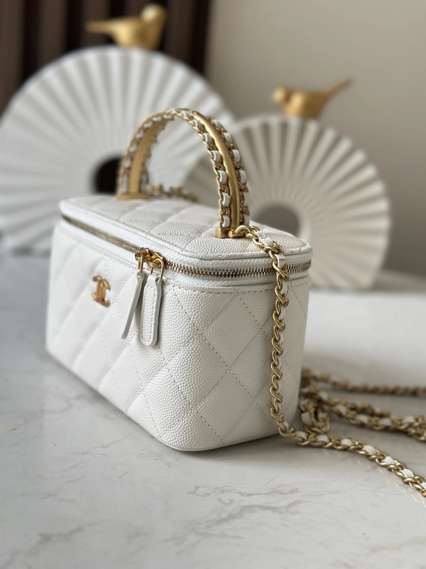 Chanel 10 24A Calfskin Metal Font Handle Long Box. It feels like the calfskin long box is rare. I m so happy this season has it. I never expected my dream bag, the 24A long box, to actually exist. Seeing the real thing really hits my girlish heart. The retro matte handle 荔枝纹 calfskin texture instantly elevates the look. It s simple yet individual, and very versatile for all seasons. The SA s attitude was very nice and they brought out several long boxes for me to slowly look at and compare. I still chose my dream bag. Number: 66053 White Size 9.5 17 8cm