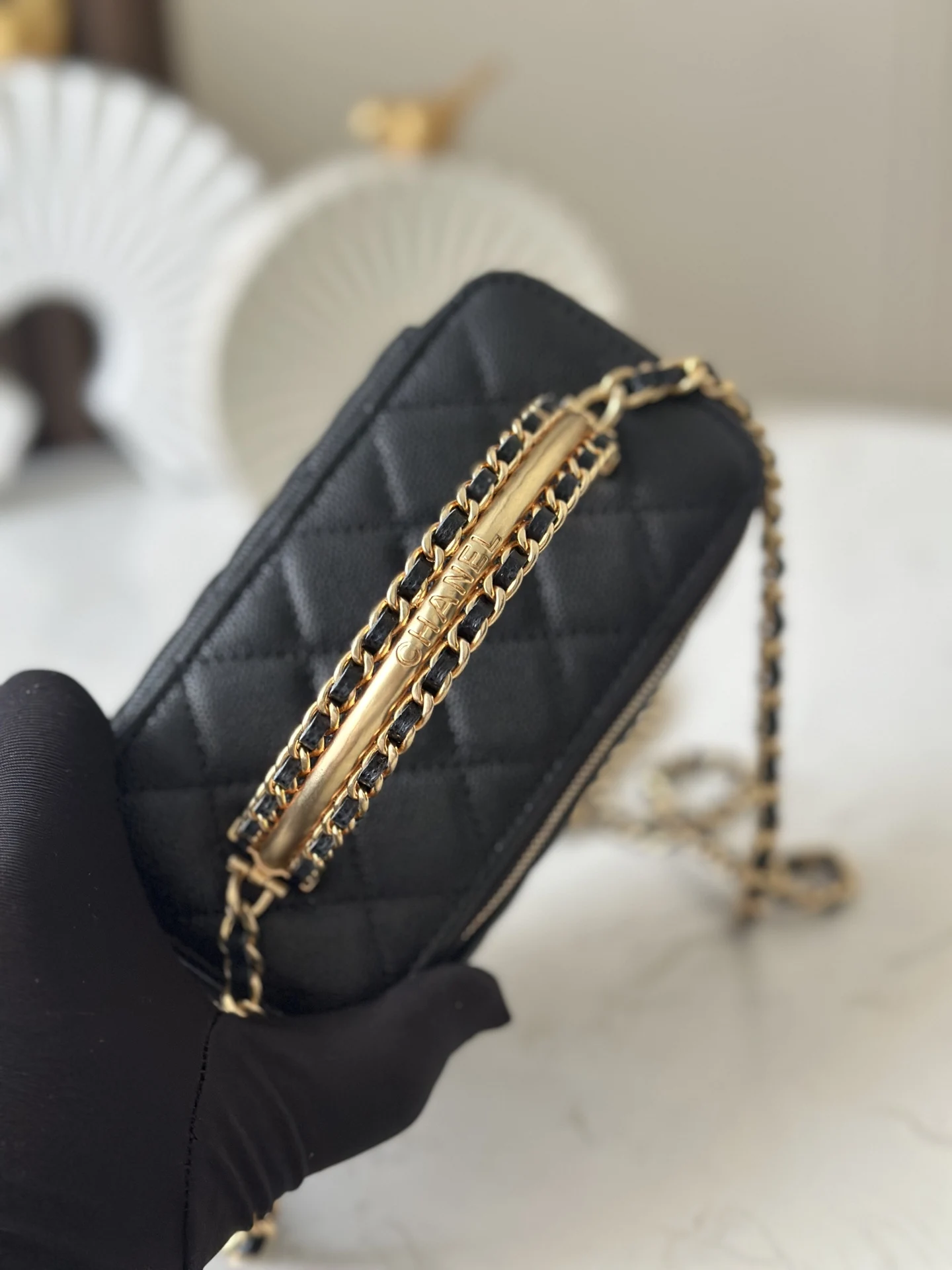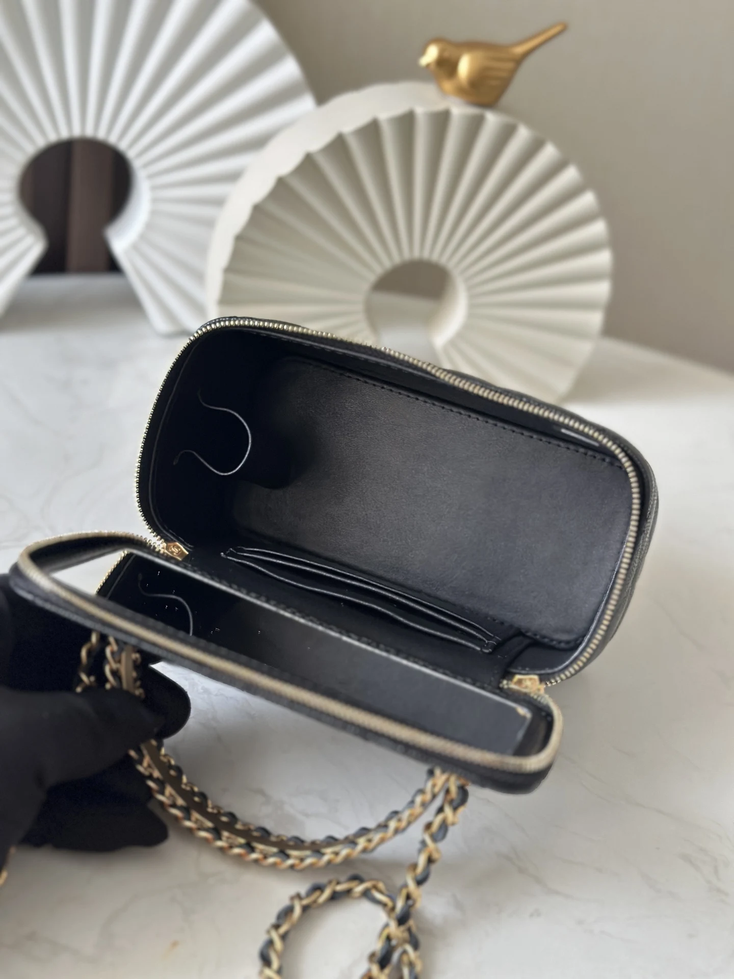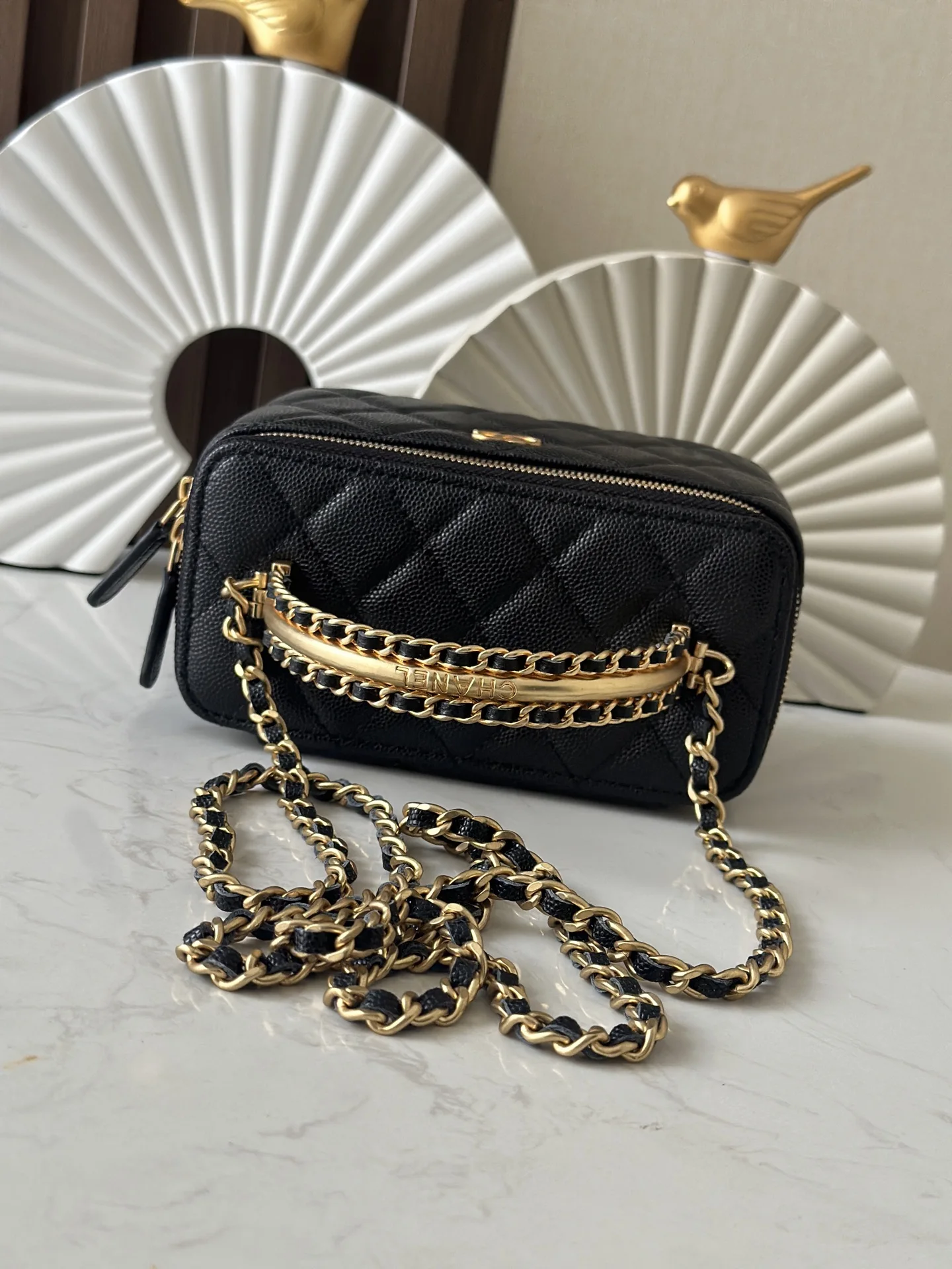 The 24A calfskin long box with metal logo handle from the chip version of Chane10 is a rare find in calfskin. I m thrilled that it s available this season. I never expected my dream bag, the 24A long box, to actually exist. Seeing it in person really touched my girlish heart. The vintage matte handle the荔枝纹 calfskin texture instantly elevate the overall feel. It s simple yet unique, and versatile for all seasons. The SA was very nice and brought out several long boxes for me to compare and choose from. In the end, I chose my dream bag. Style number: 66053, Black, Dimensions: 9.5 17 8cm.