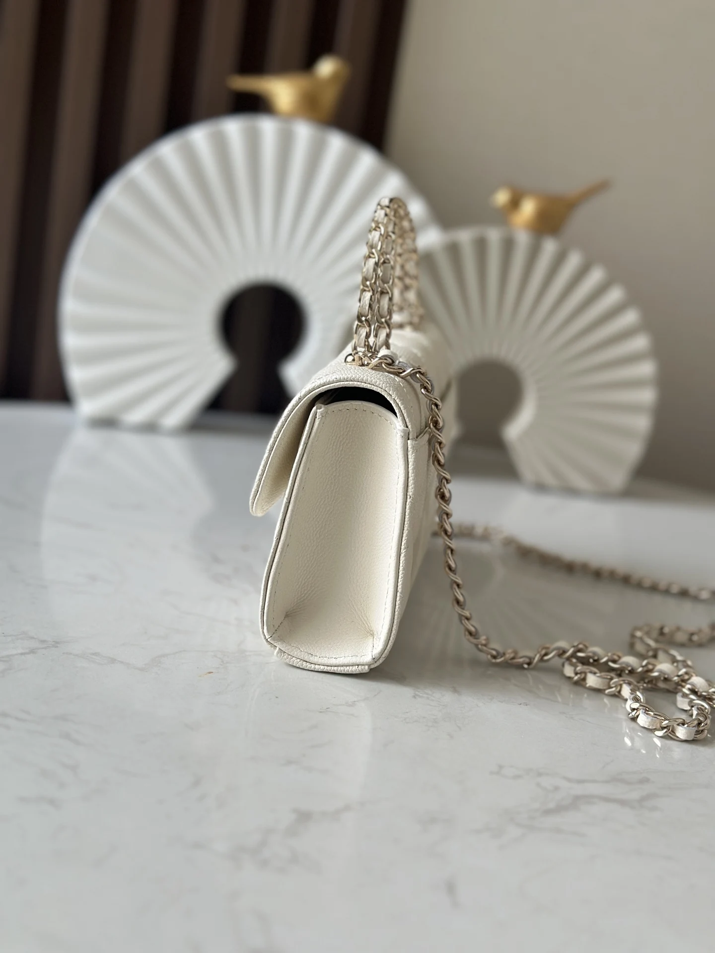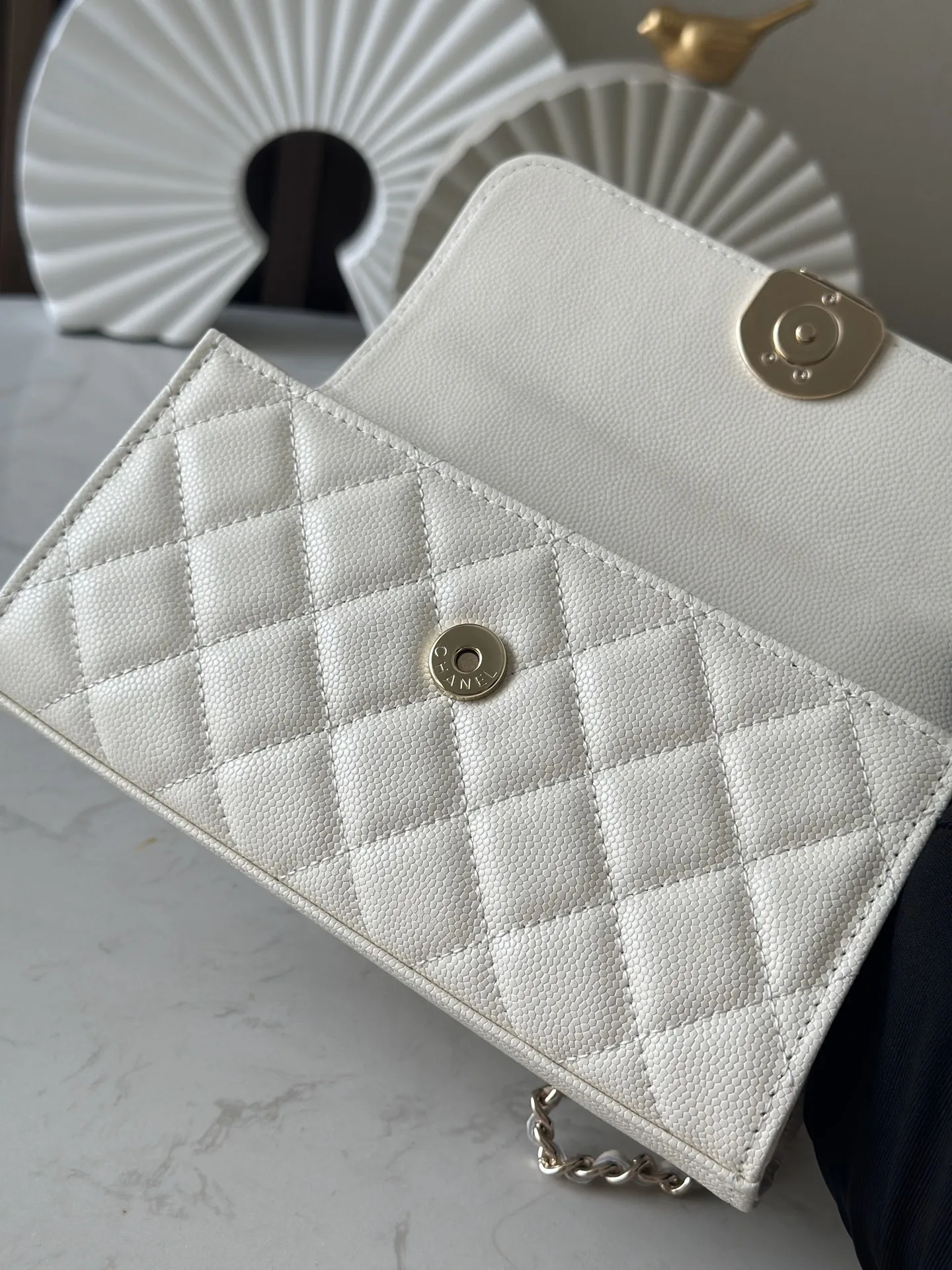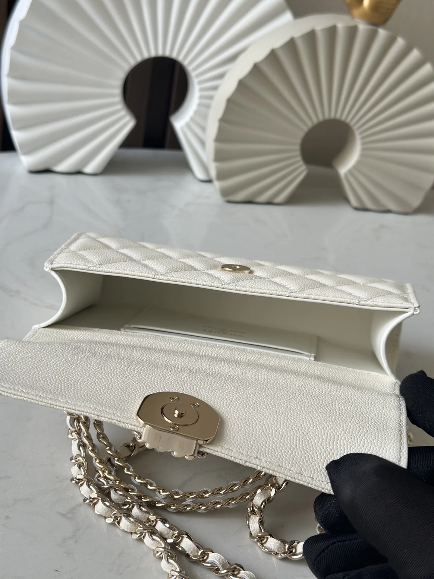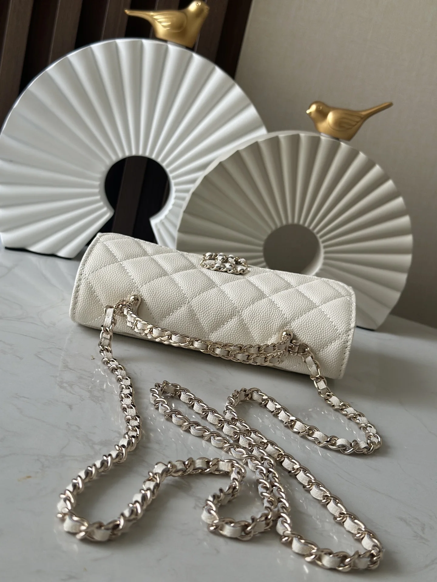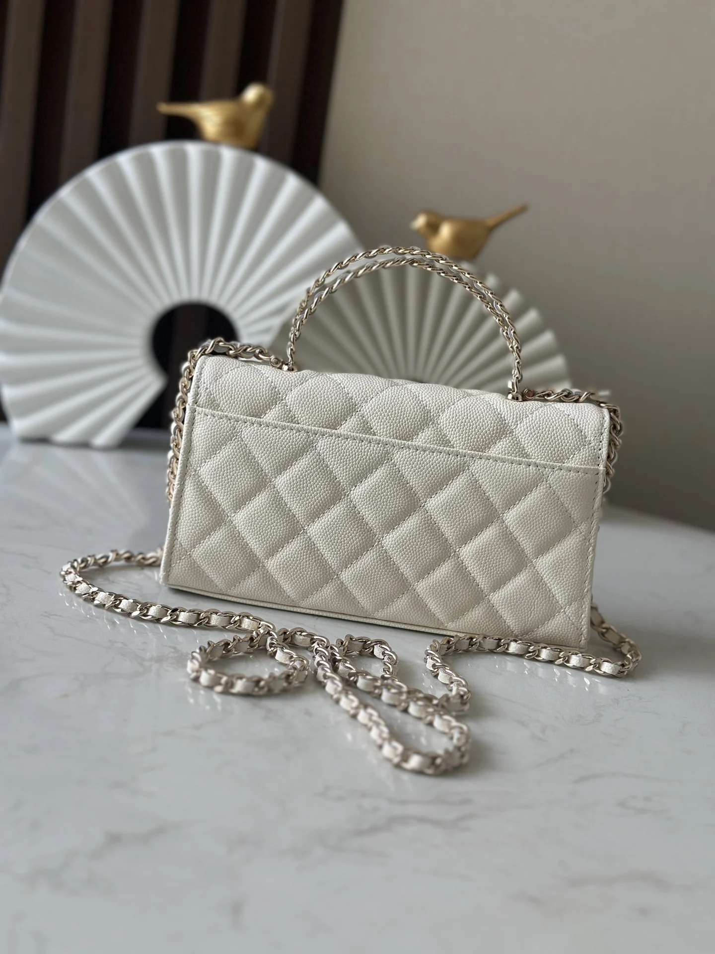Exclusive release of the Chane10 25s new version of the Kelly horizontal large size with caviar leather and chip, featuring a cross handle. A must-buy this season! The Kelly horizontal flap design is both retro and fashionable. The interwoven leather and chain handle is absolutely stunning, and the leather is full of high-end quality with a great feel! Whether worn on the shoulder or carried by hand, it can easily handle any occasion! Not only is the appearance breathtakingly beautiful, but the internal space is also very practical, easily accommodating daily necessities. Can hold a lunch box.Number: 66055Color: WhiteDimensions: 18x10x4.5cm