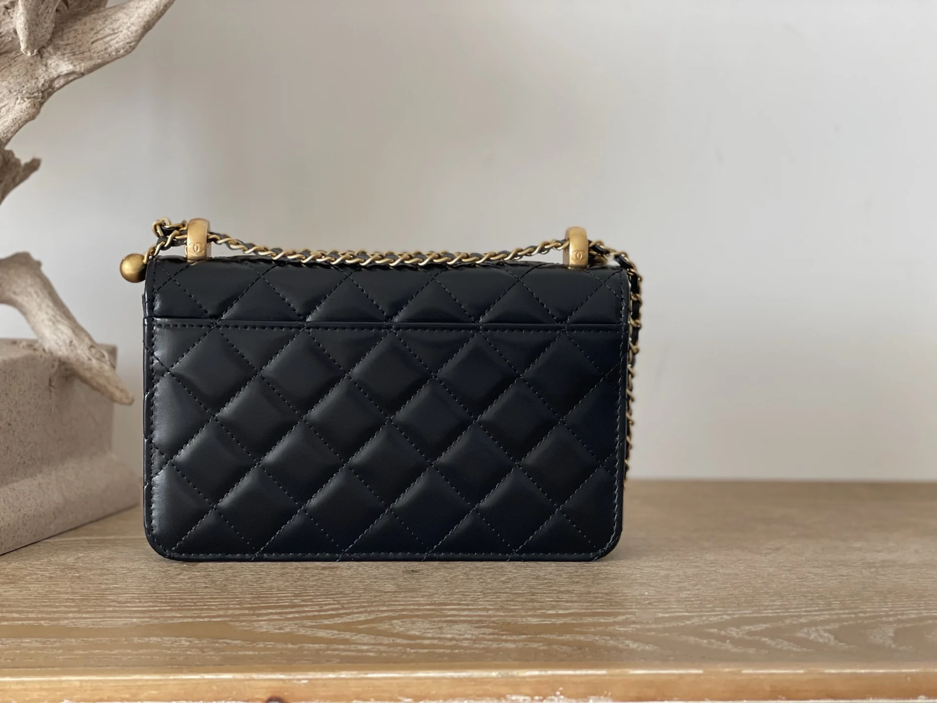 Chanel 66059 24C Small Gold Ball Double Pearl Chain WOC Fortune Bag Women s Crossbody Bag
