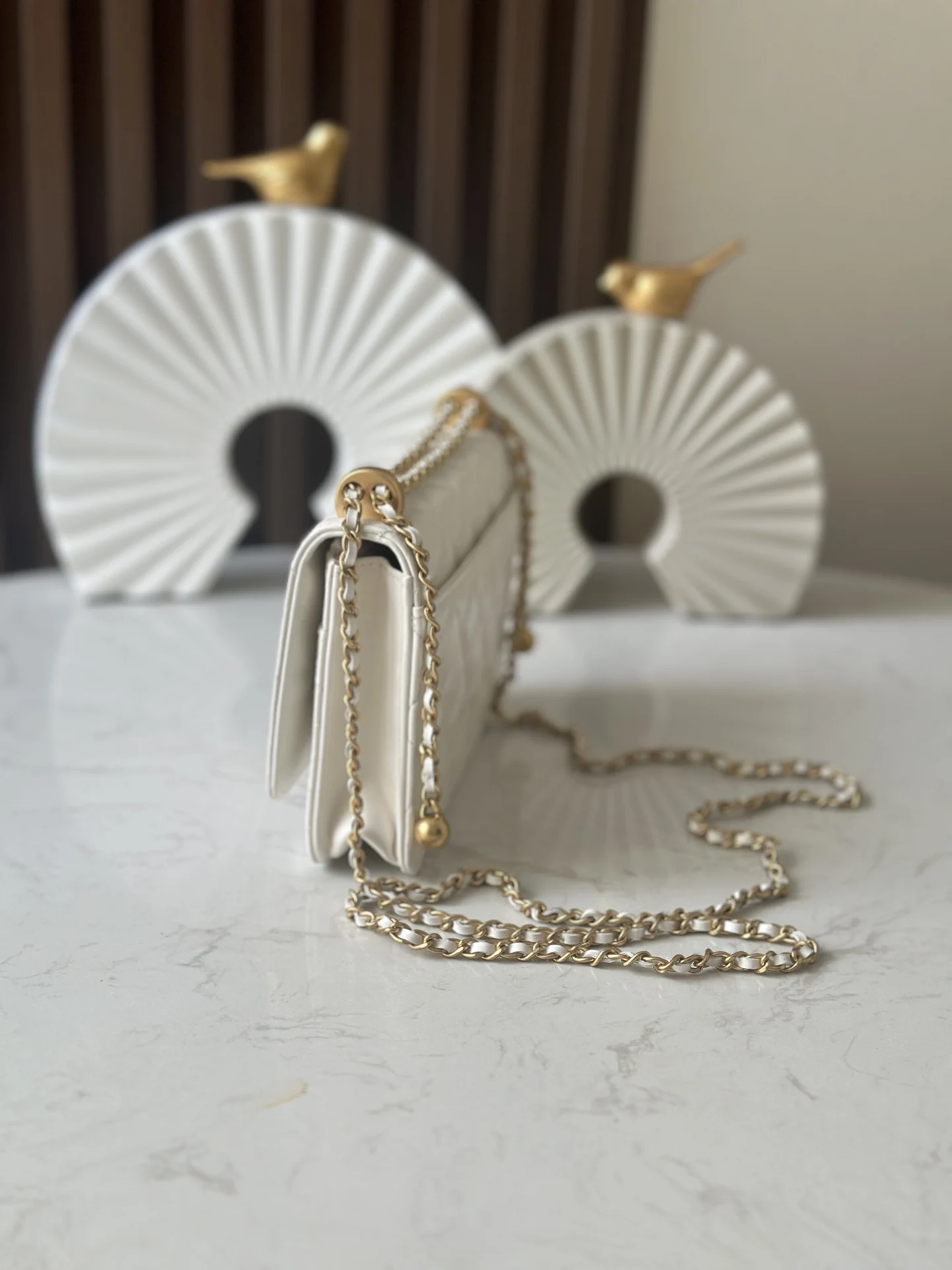Chanel 66059 24C Small Gold Ball Double Pearl Chain WOC Lucky Bag Women s Crossbody Bag