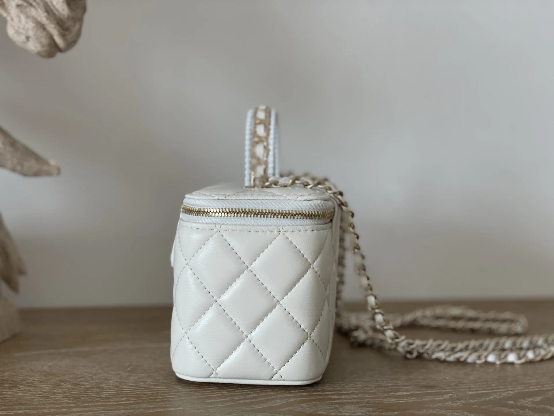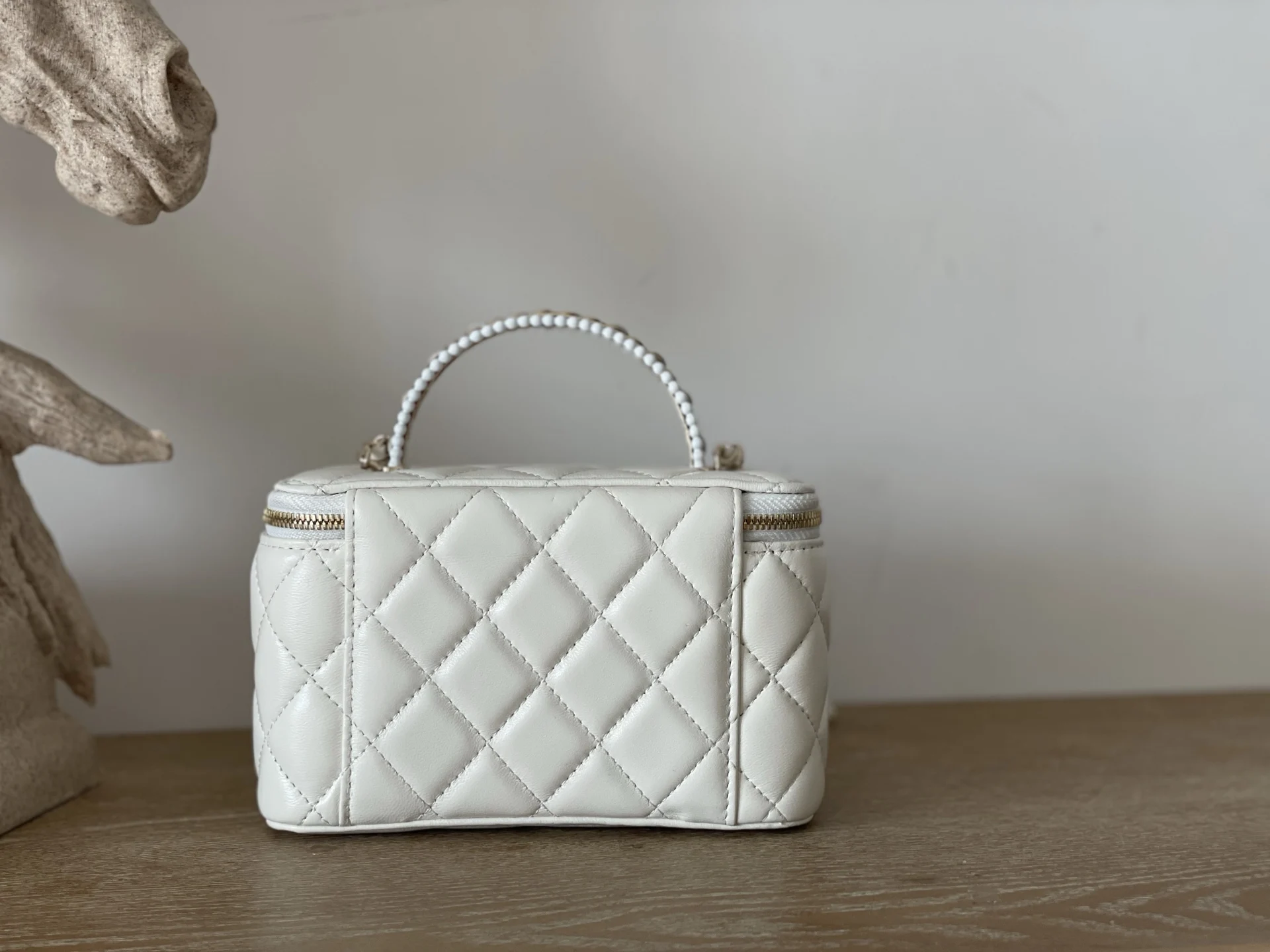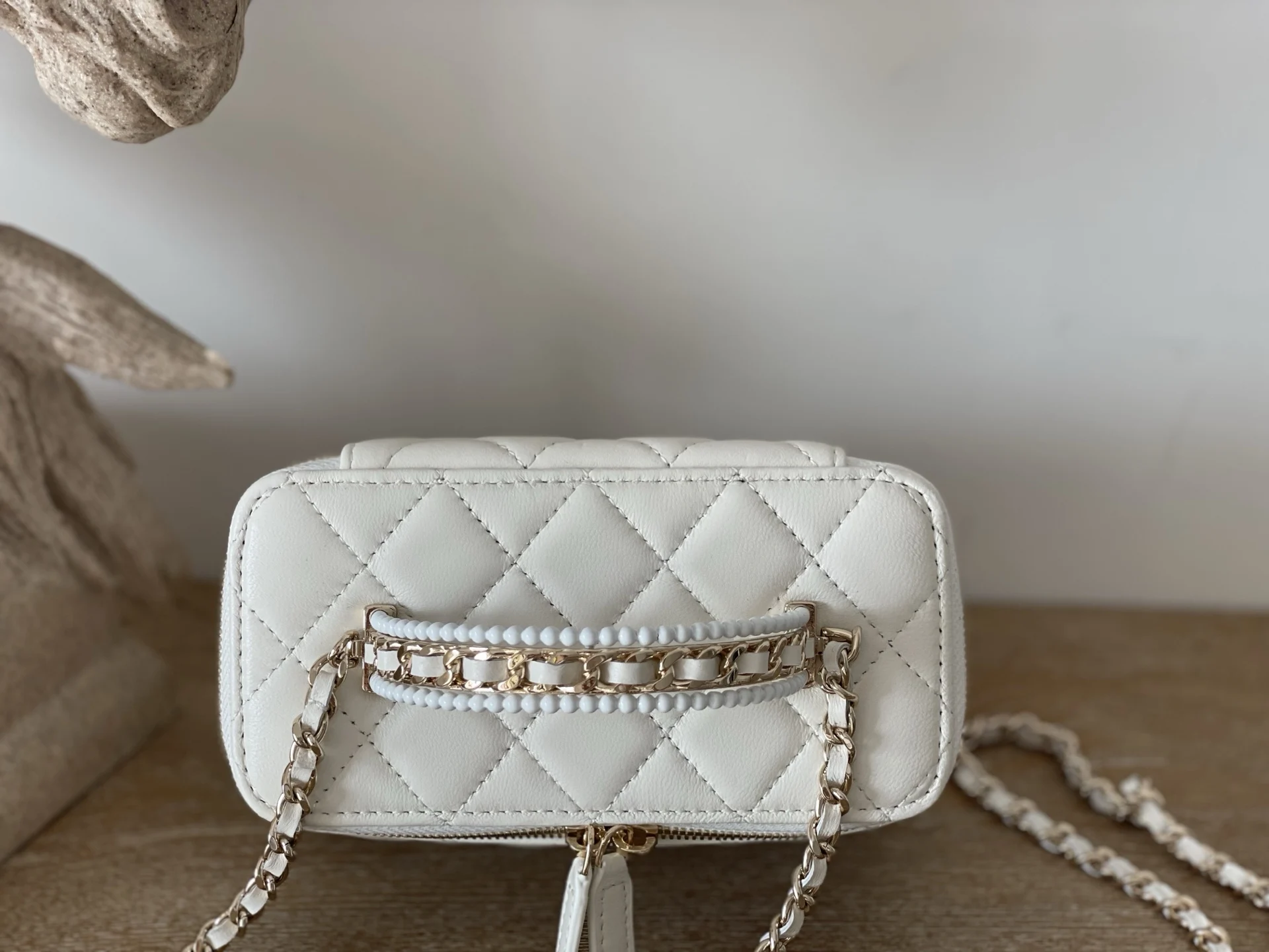 Chanel 66060 25s Pearl Cosmetic Long Box Makeup White Ladies Handbag Crossbody Bag