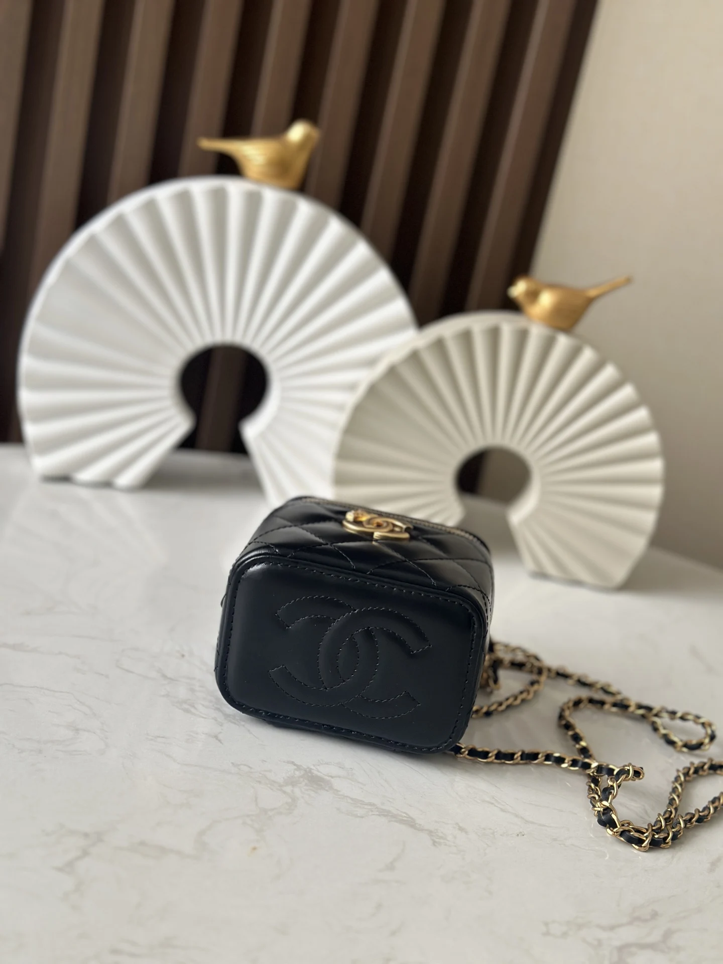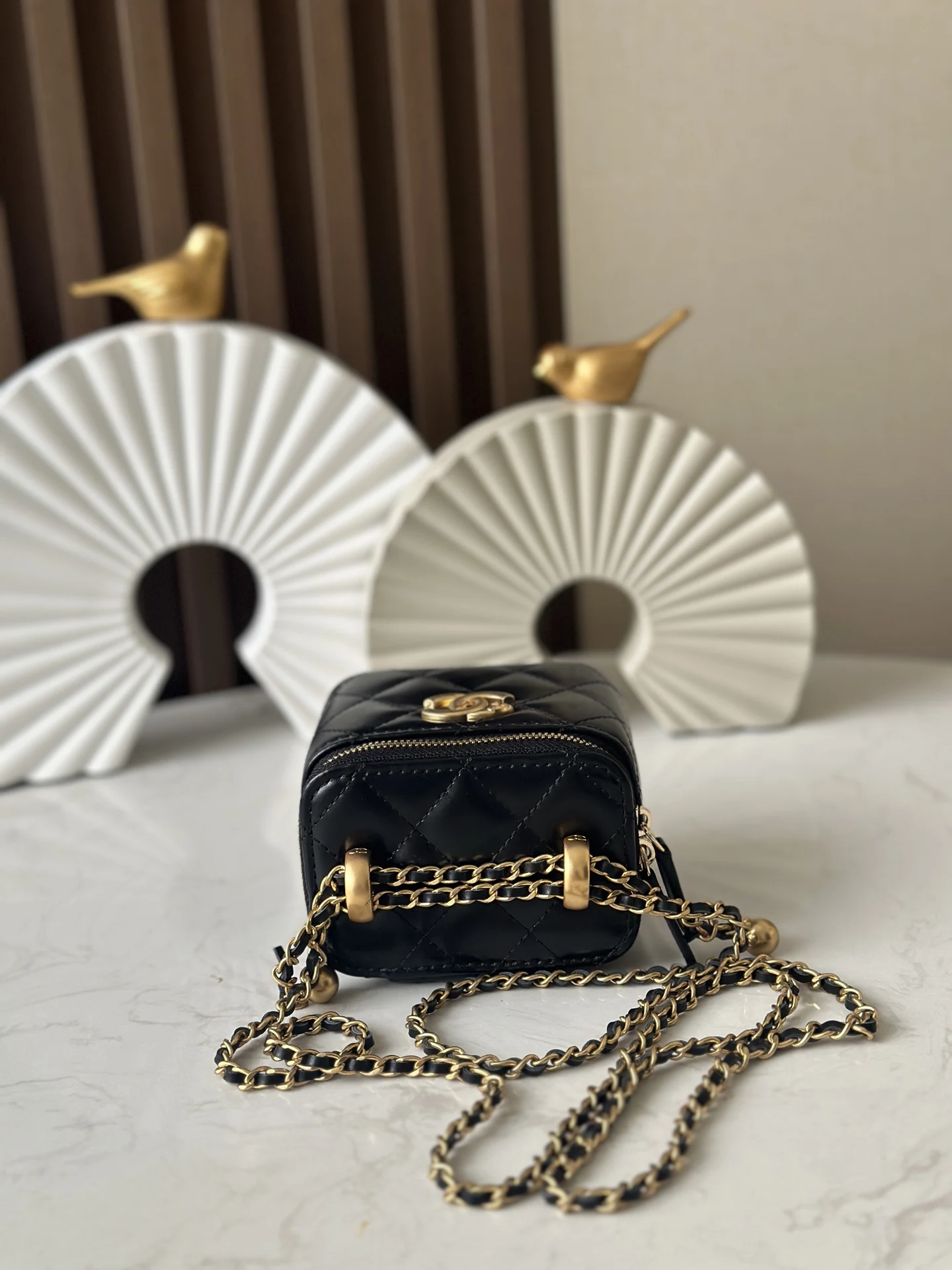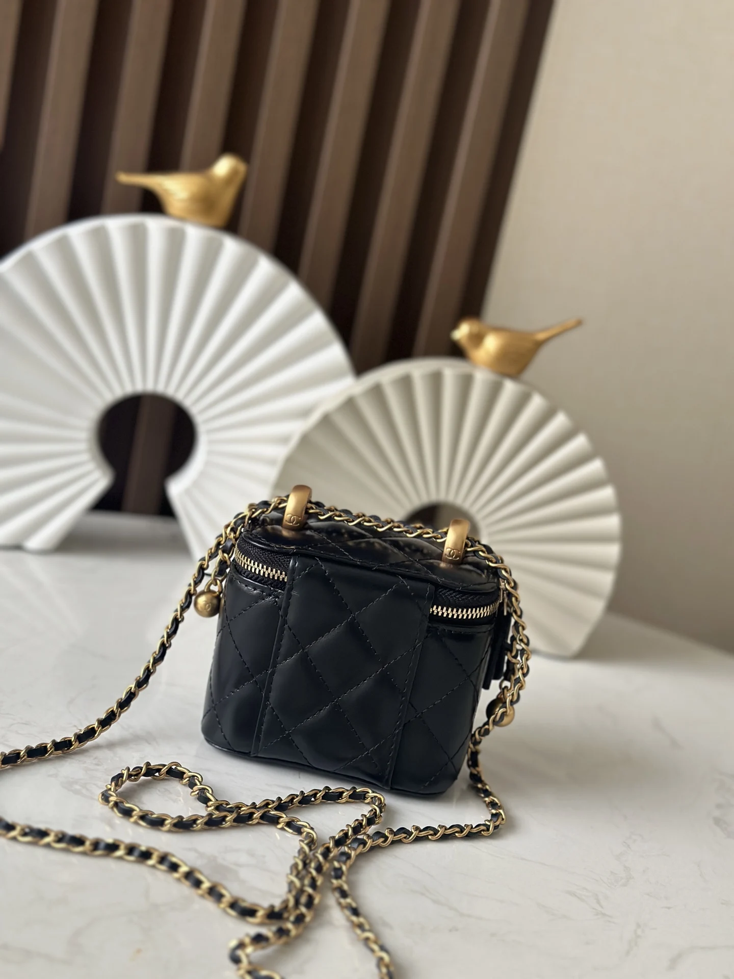 Chanel 66063 24C Double Gold Ball Box Cosmetic Bag Women s Crossbody Bag