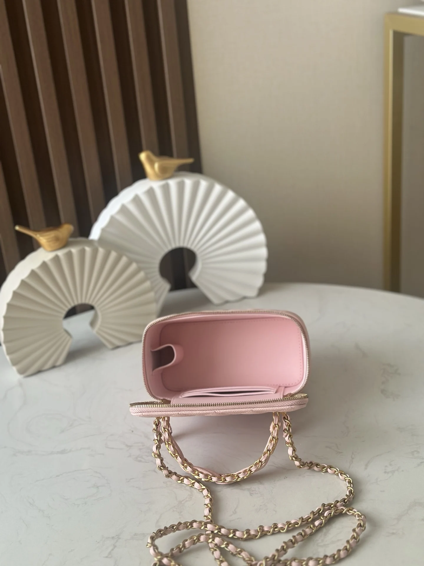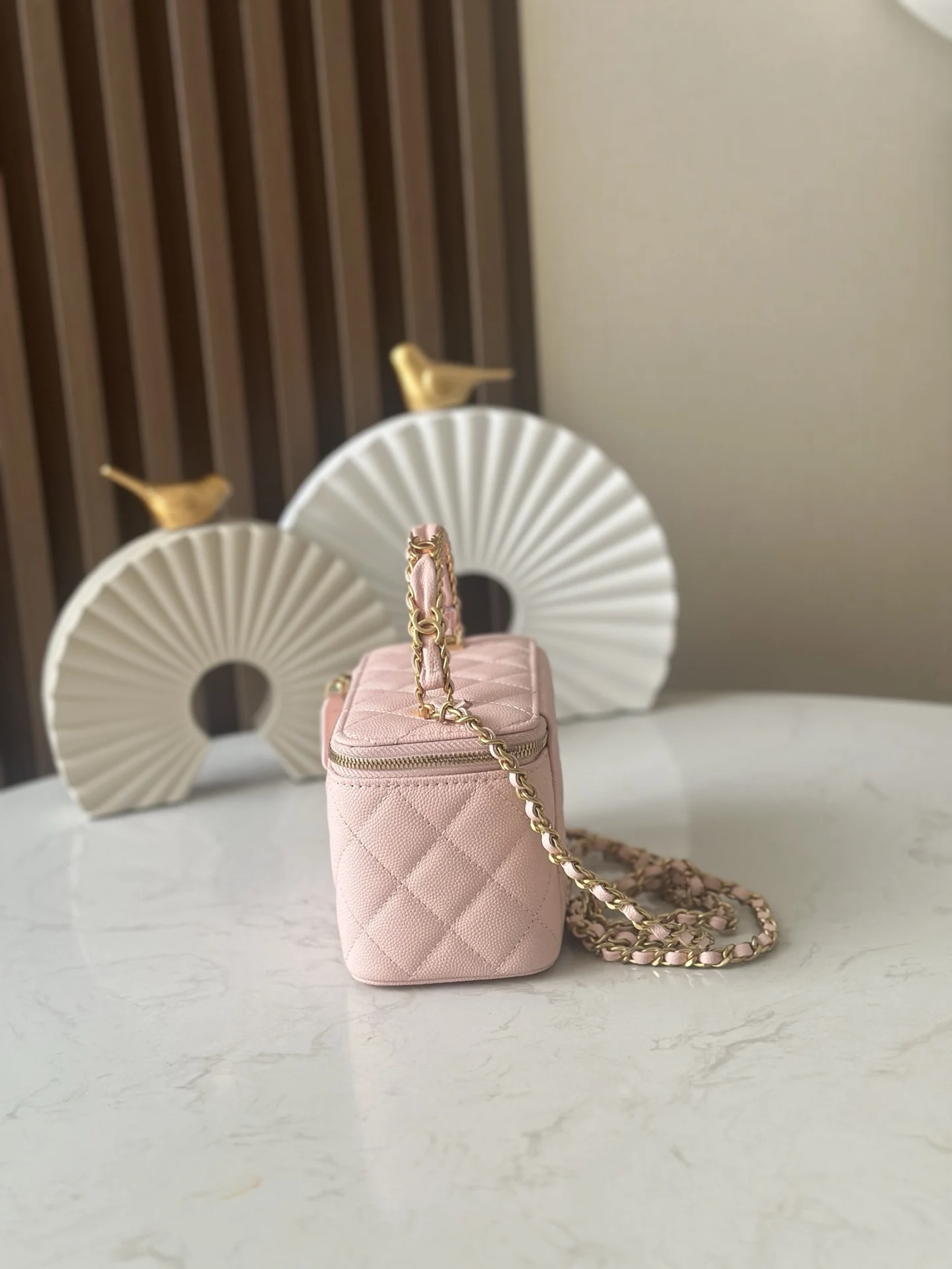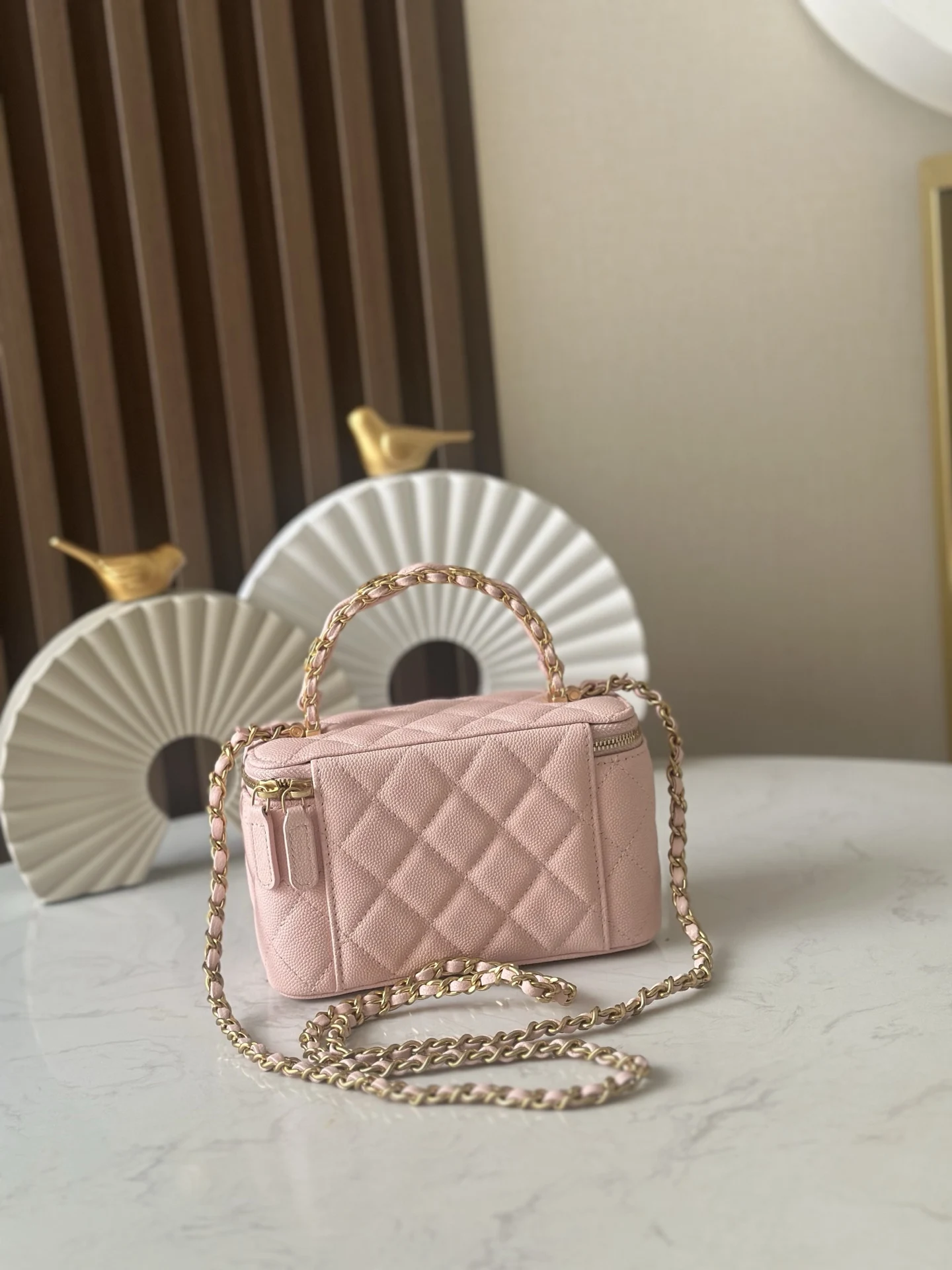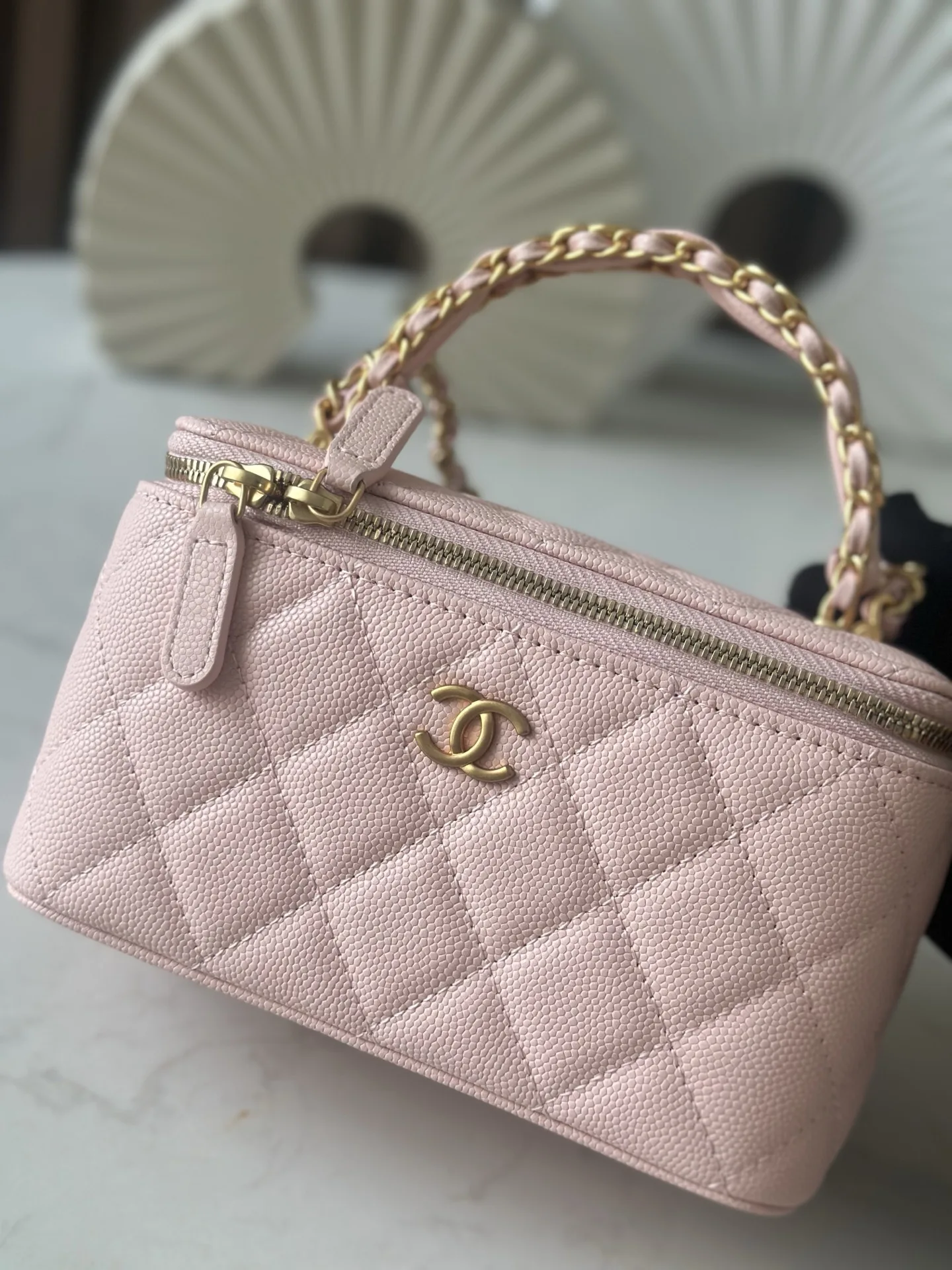 New 25B chip version, double C thick handle, handle cosmetic case with exquisite handle design for a more fashionable look. Grain cowhide with metal retro hardware, textured, wear-resistant and durable. Classic design style, versatile and practical. It s really exquisite, high-value, and compact. I m increasingly loving this bag. It s beautiful to carry around and can make you absolutely stunning with any outfit. This season s new products are a pleasant surprise. Size: 17 9.5 8cm. Number: 66067 Pink.