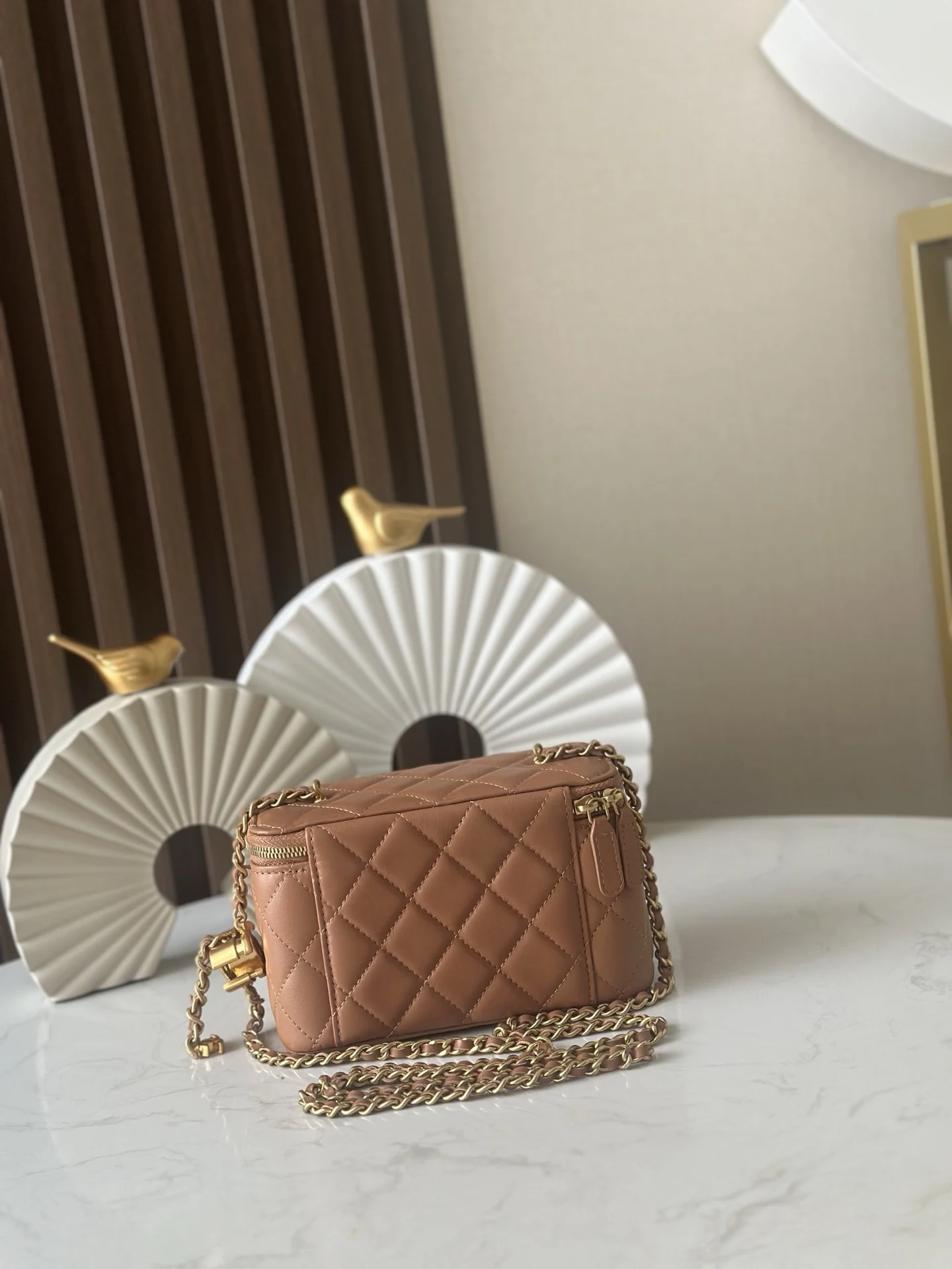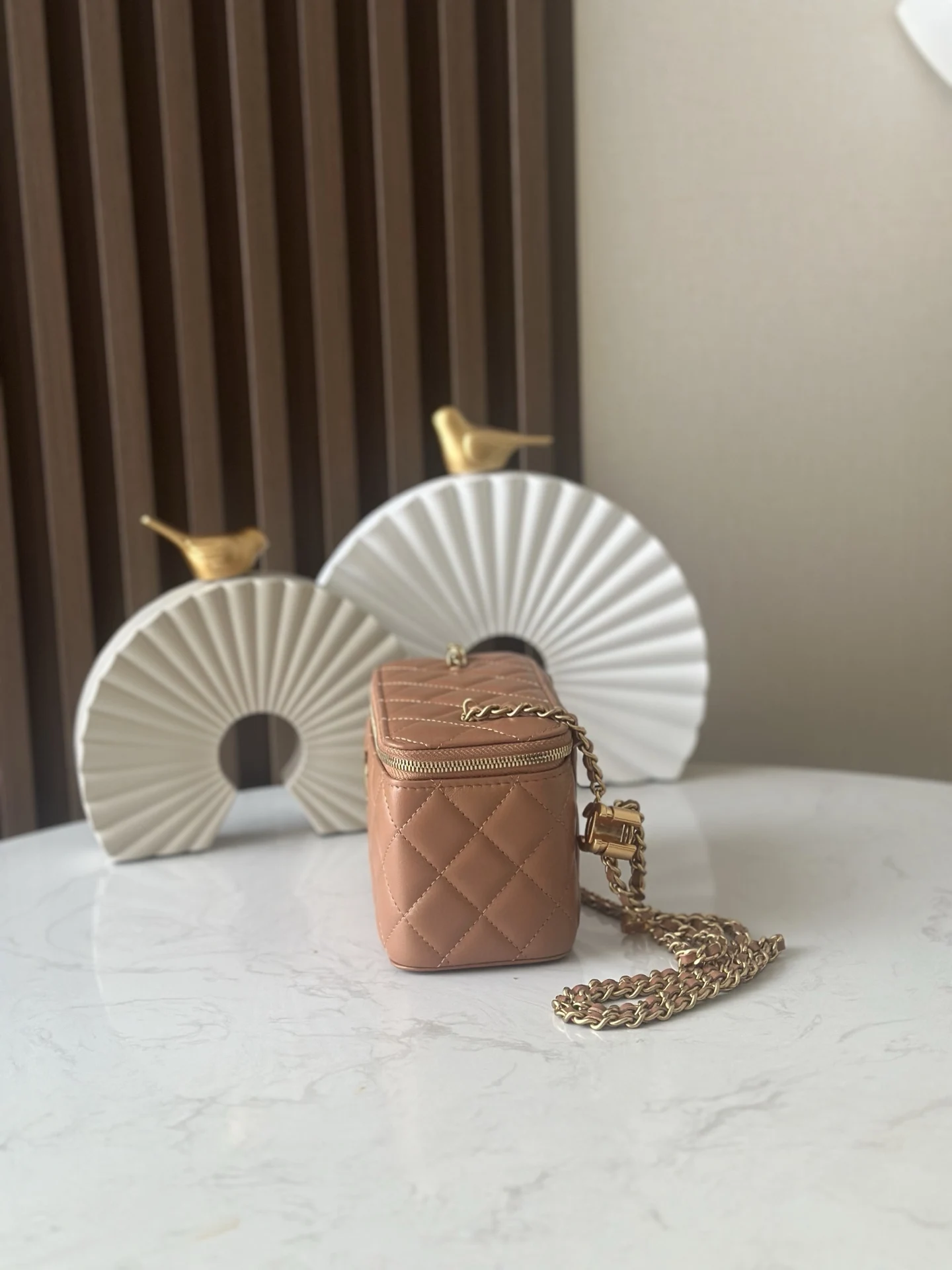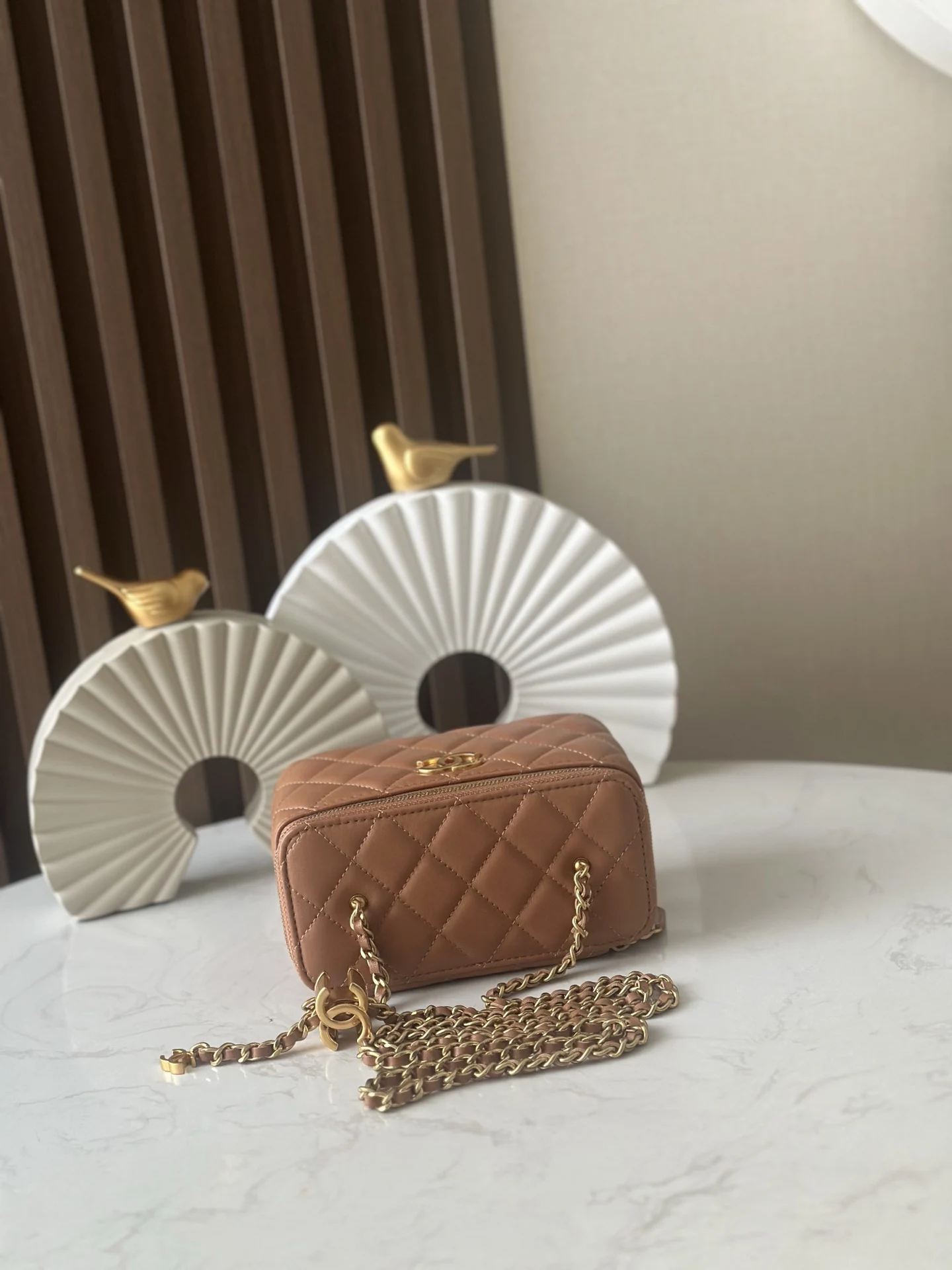 Chip version latest 25B new classic double C buckle adjustable chain, same as the gold ball, adjustable chain length pendant makeup box lambskin embroidered grid shoulder crossbody makeup bag, ohanel 25B new long makeup box double C buckle adjustable length pendant chain imported lambskin No.: 66071 Apricot size 17x9.5x8 with packaging