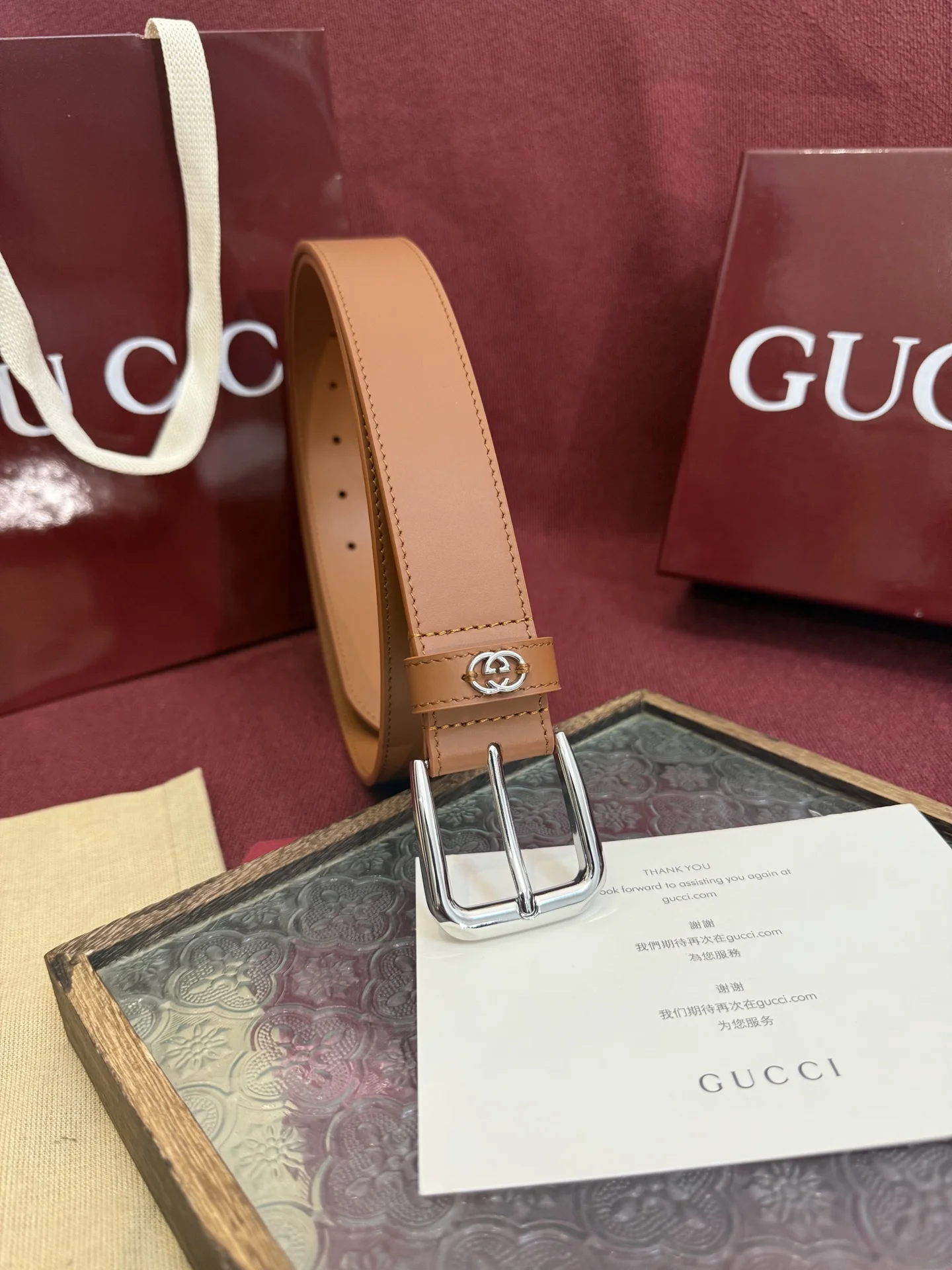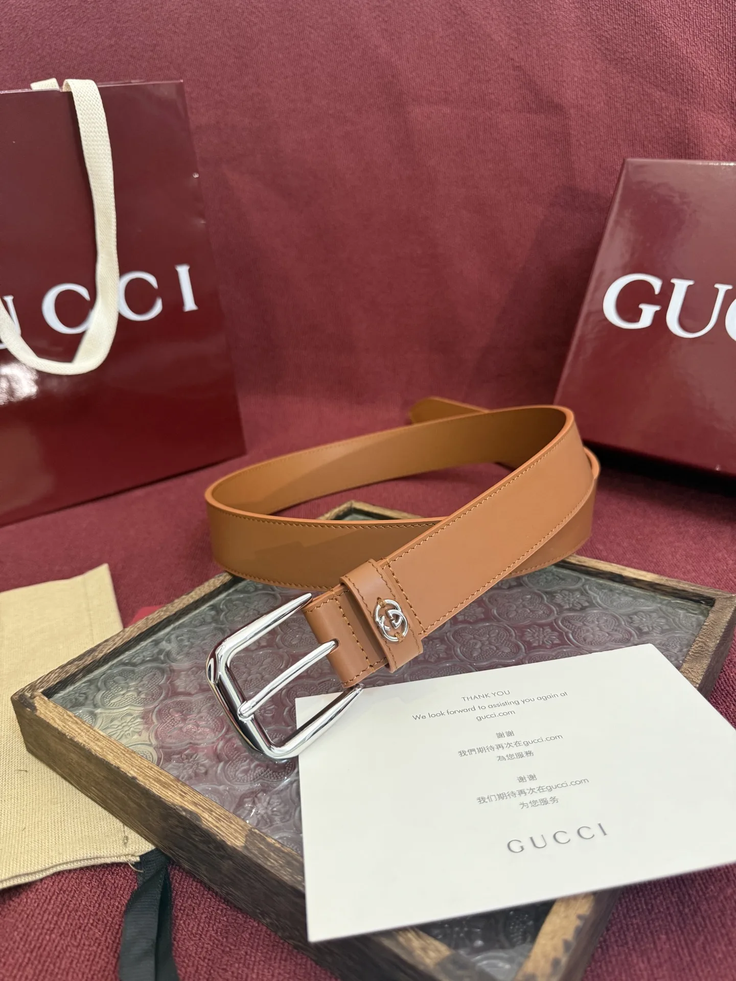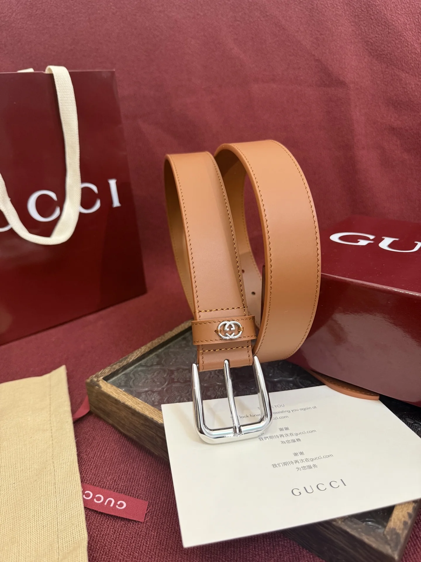 Gucci style 673921 AP0G 601254, crafted from custom-made imported calfskin, with a width of 3.5cm, featuring a leather loop with three-dimensional GG hardware, and a square, minimalist pin buckle.