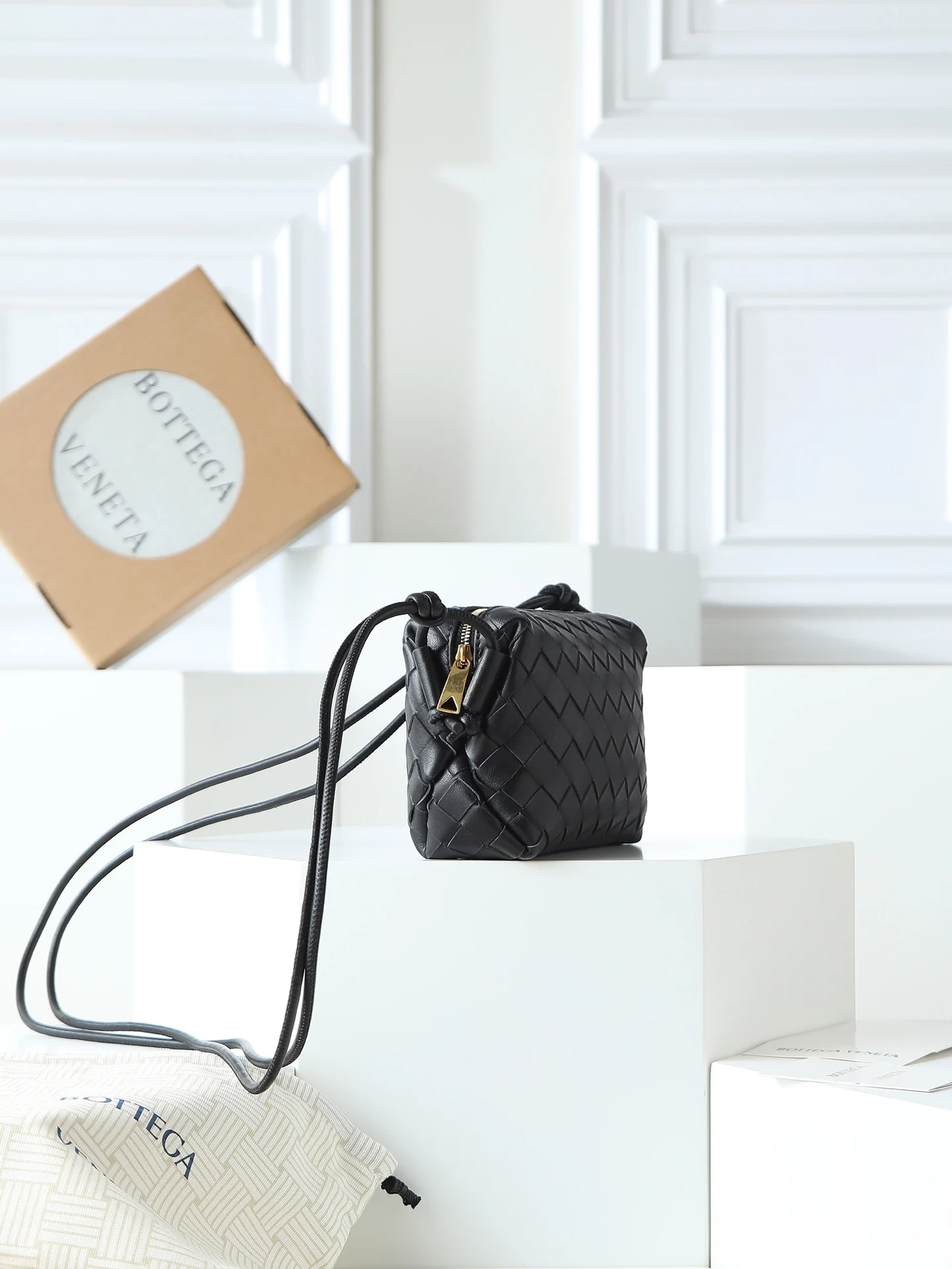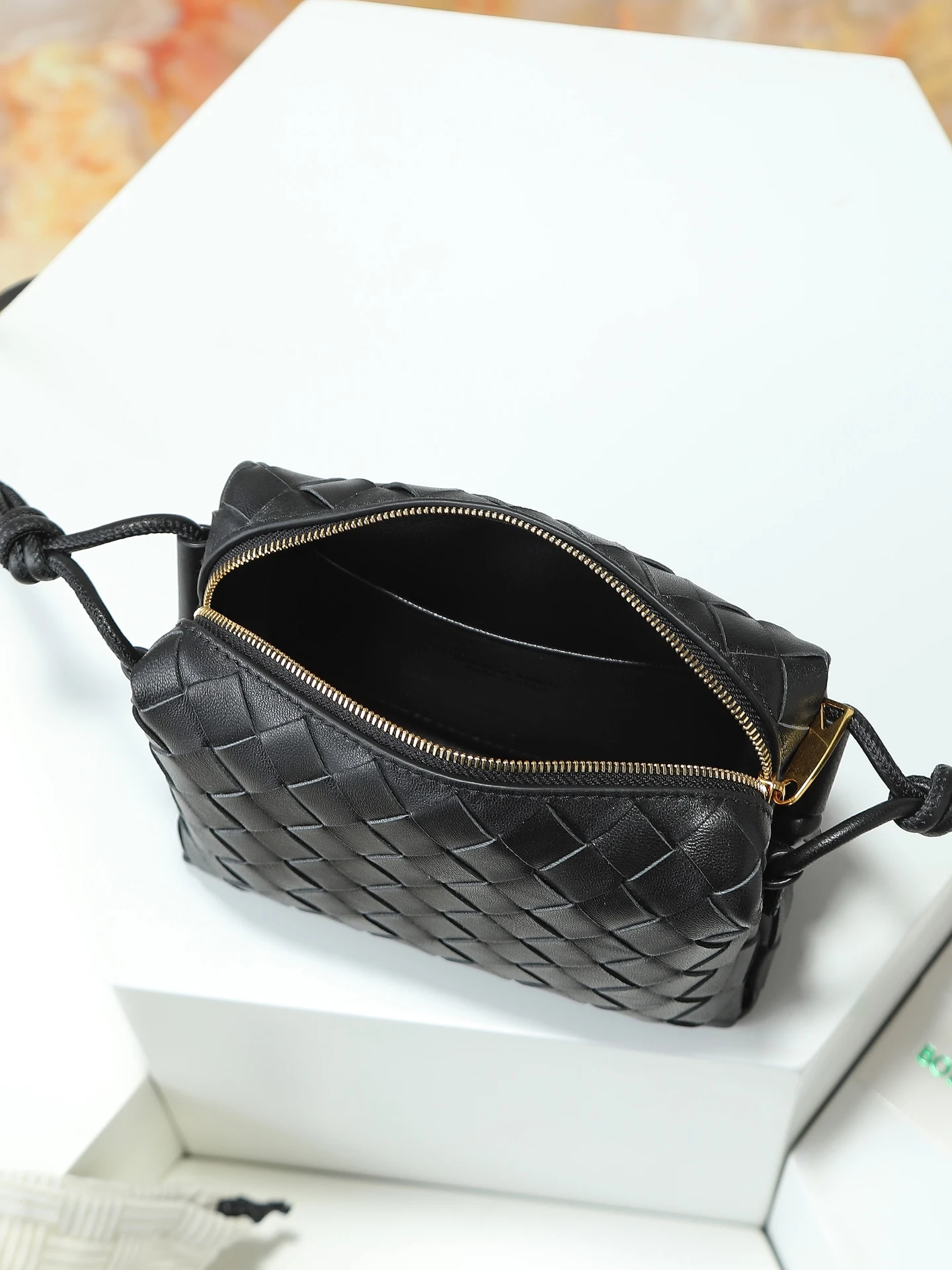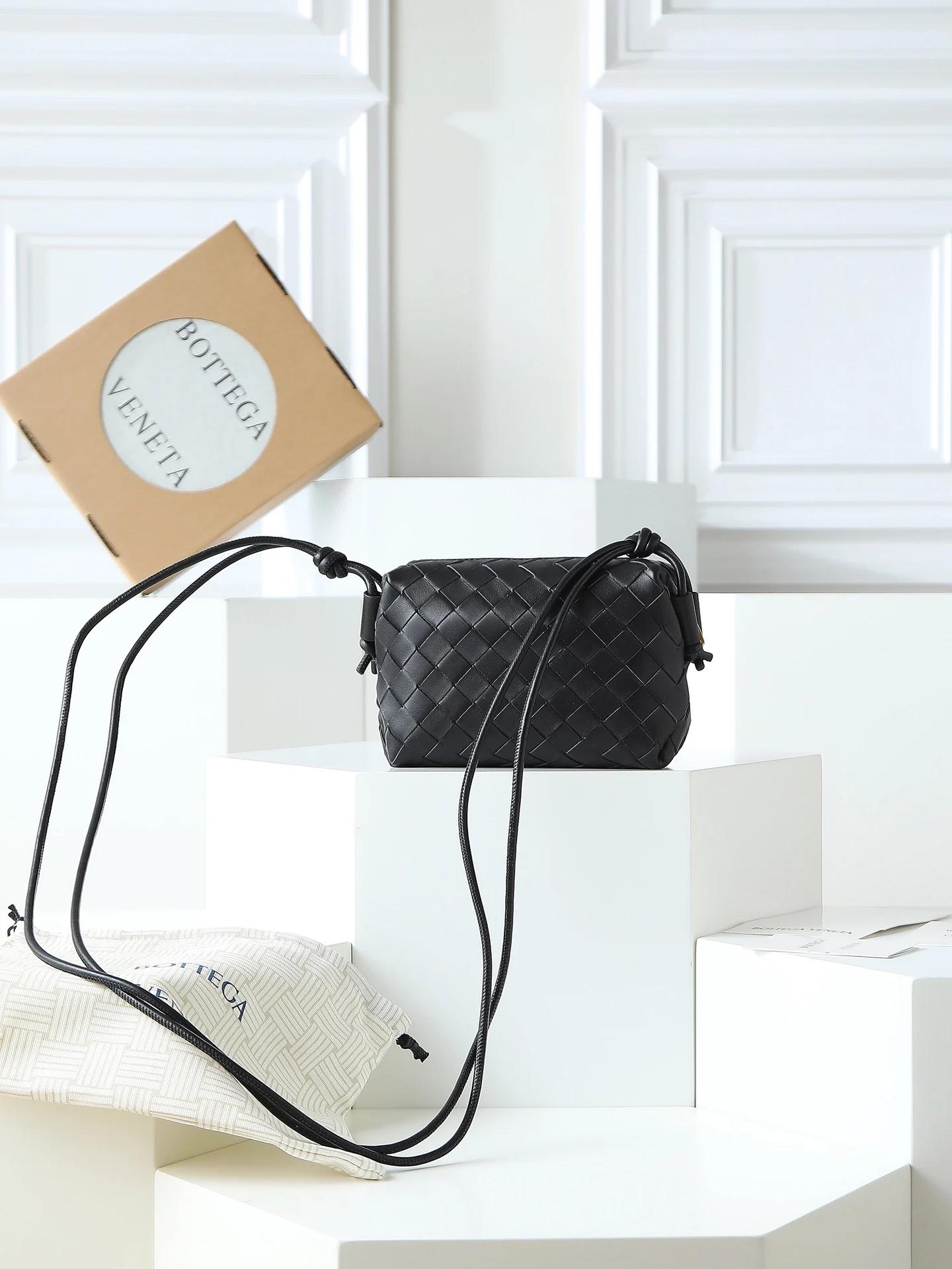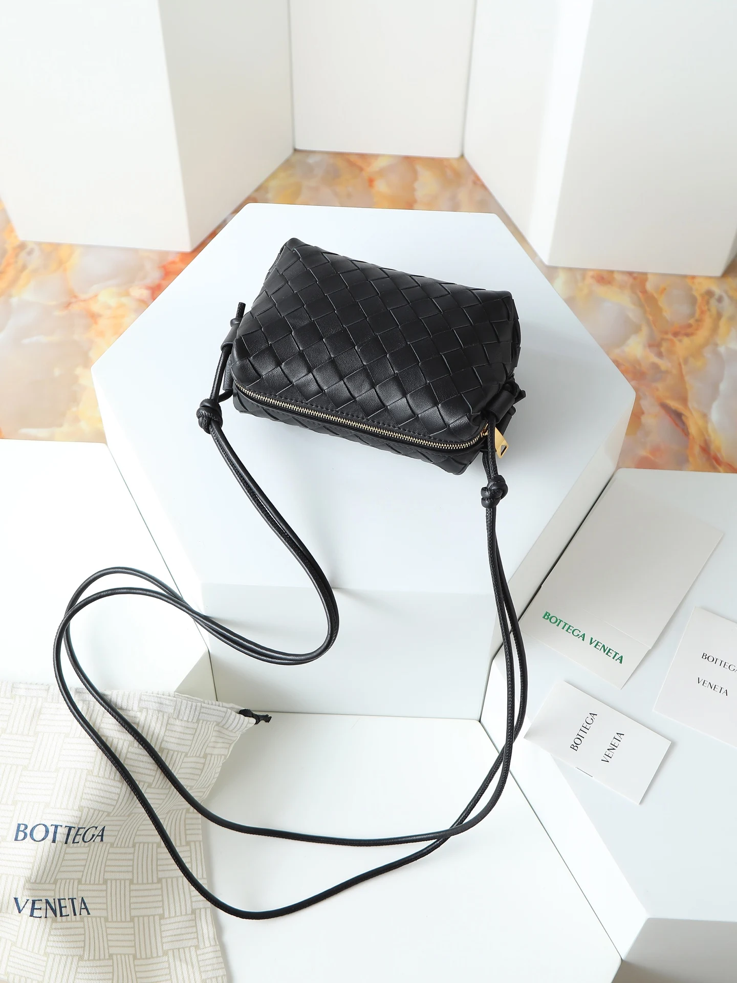 𝗕𝗼𝘁𝘁𝗲𝗴𝗮 𝗩𝗲𝗻𝗲𝘁𝗮——— The latest version of the BV value-for-money loop camera bag features a large woven texture made of consistently high-quality lambskin, equipped with a zipper and an adjustable drawstring. Its compact design allows for ample storage while remaining lightweight, making it suitable for girls of all ages.