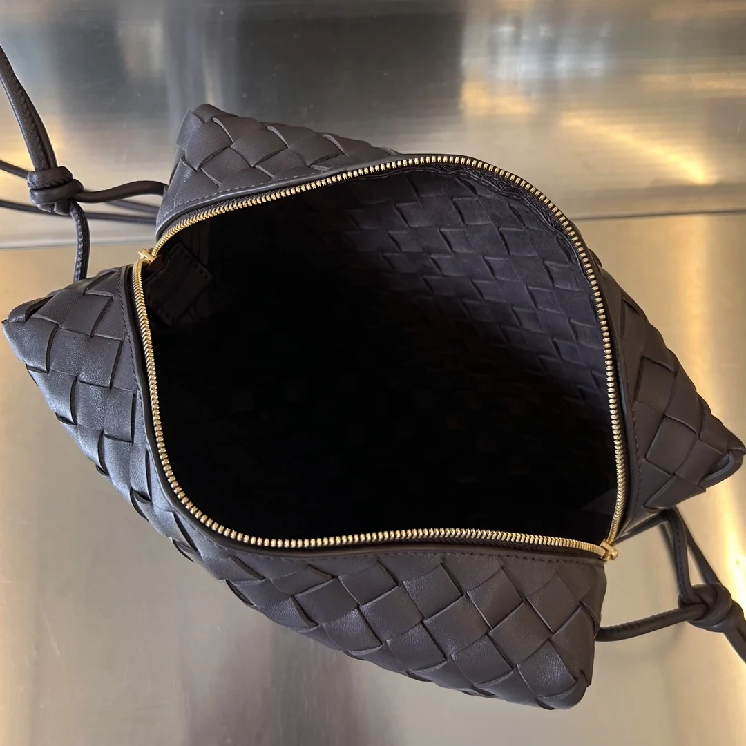 B s new 680256 is here, featuring the classic woven logo. The bag is crafted from carefully selected original factory sheepskin, offering a soft and supple texture. Its simple square body is a classic and versatile design. The interior is highly practical with ample space and an adjustable signature leather drawstring. It combines elegance and practicality with a minimalist and elegant design, exuding a touch of literary and retro charm. Dimensions: 25x18x11.