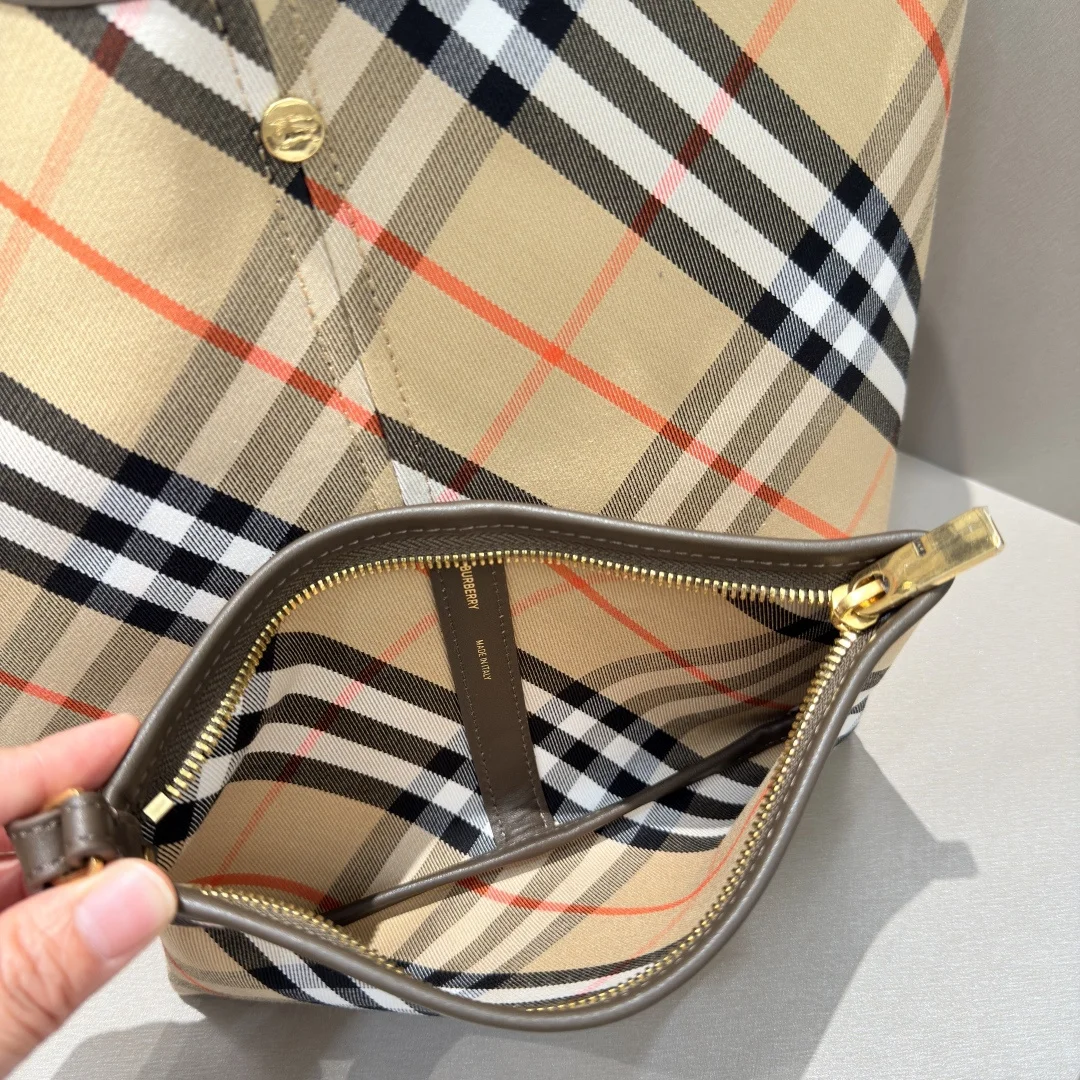 Top-grade B家 s latest soft and structured tote bag, crafted from cotton twill and expertly made in Italy. Decorated with the new season s finely woven B家 check. The unlined style is lightweight, featuring smooth calf leather trims and a detachable zipped pouch. Part of Burberry s Icons collection, reinterpreting wardrobe essentials with a distinct brand aesthetic. Dimensions: 41 x 14 x 26cm. Model: 6861