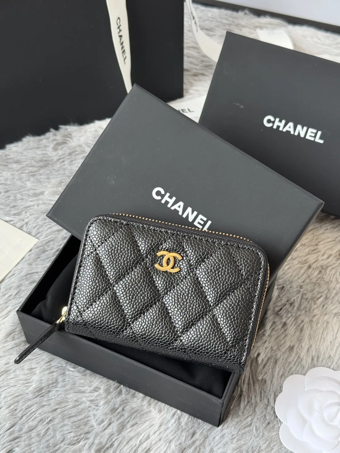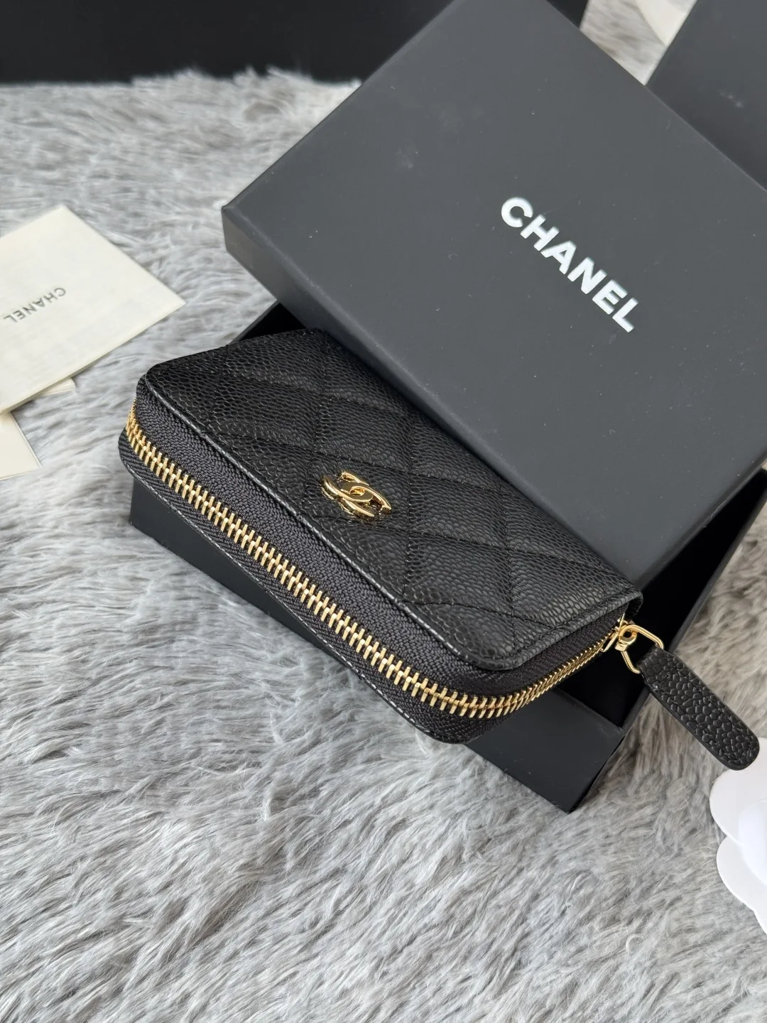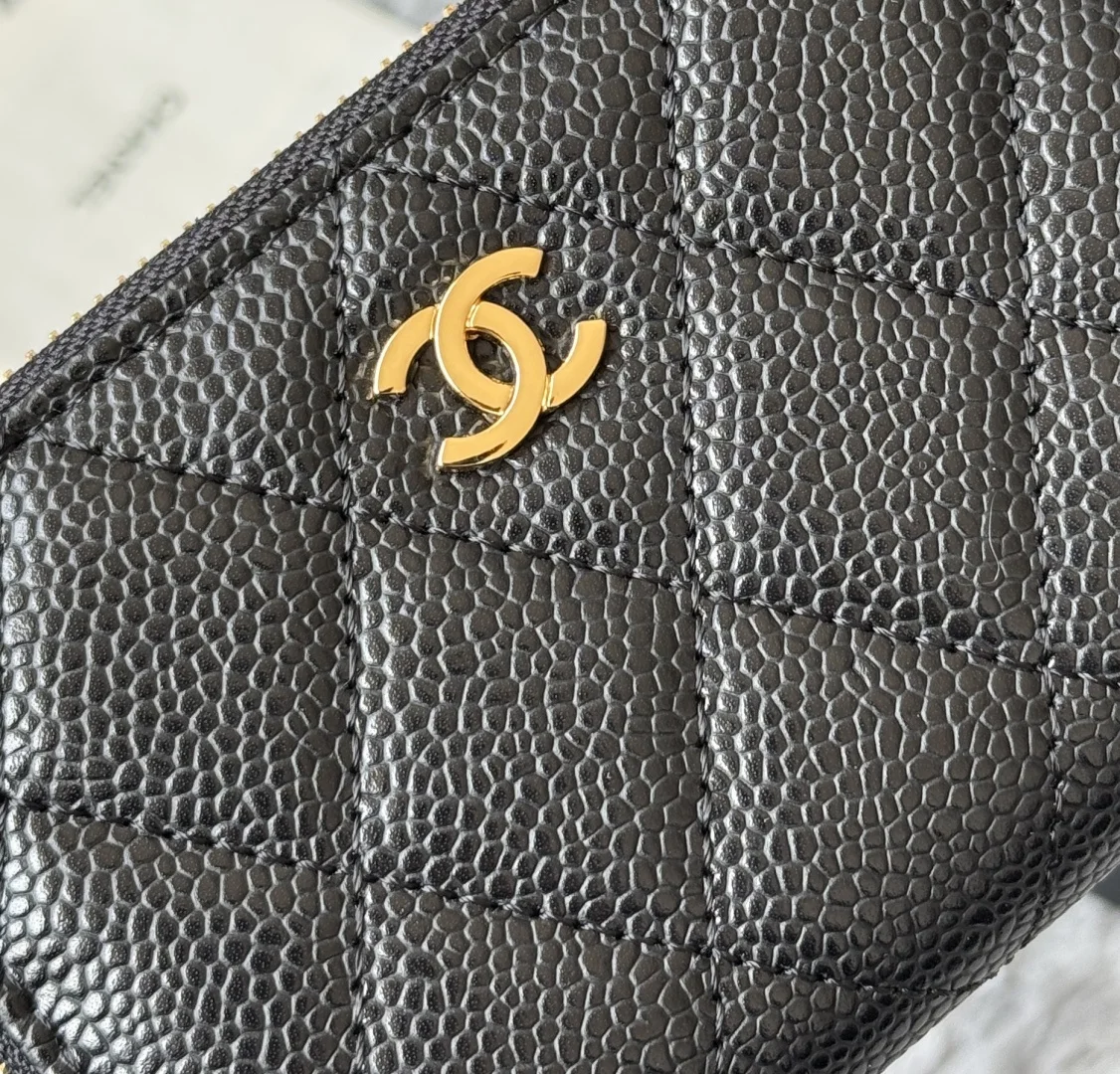 CHANEL Classic Series Black Gold Silver Hardware Small Zipper Diamond Quilted Coin Purse Arrived! Exquisite Details. Original Quality! Style No. 69271 Size 7.5 2 11 cm.