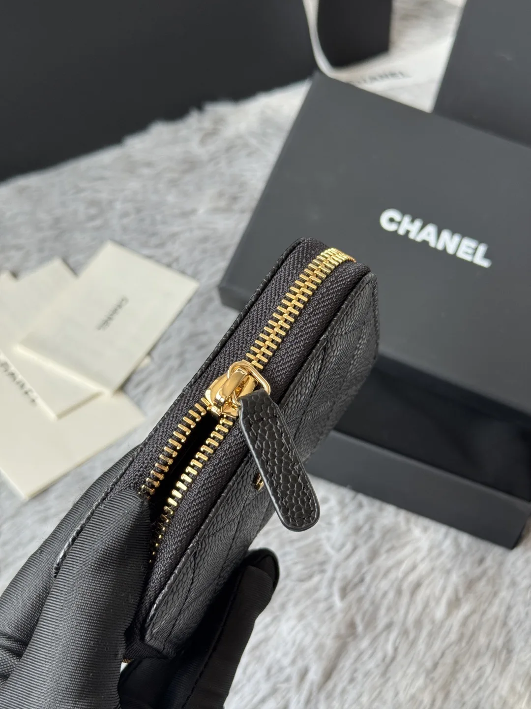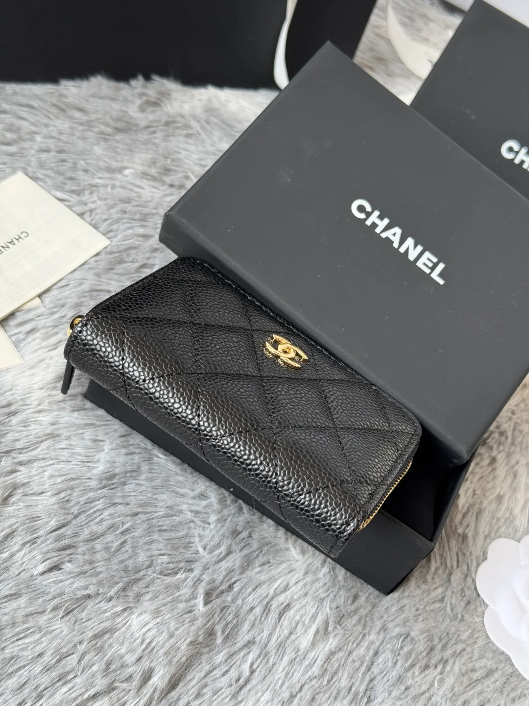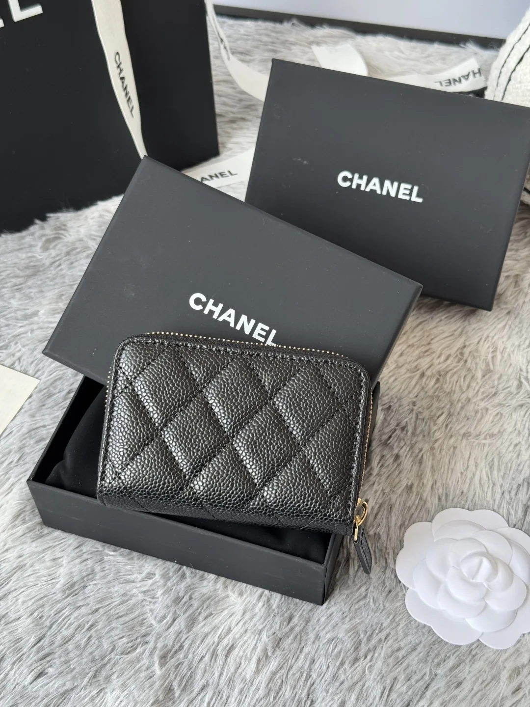 CHANEL Classic Series Black Gold Silver Hardware Small Zipper Diamond Quilted Coin Purse Arrived! Exquisite Details. Original Quality! Style No. 69271 Size 7.5 2 11 cm.