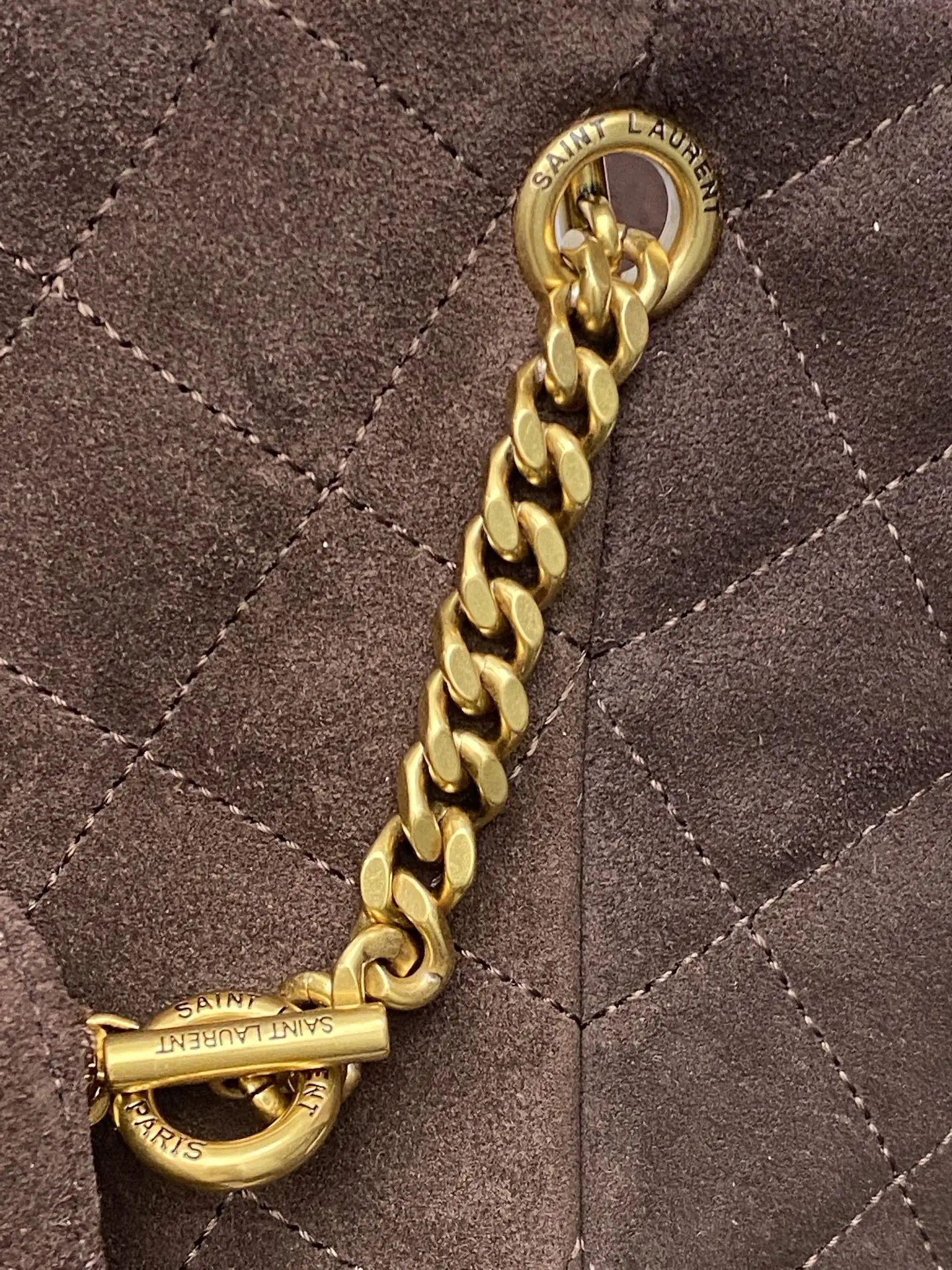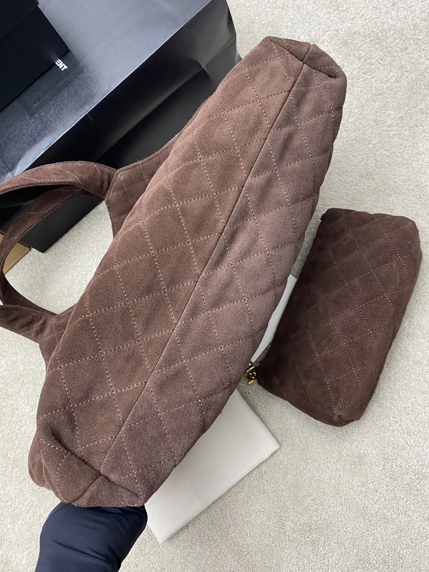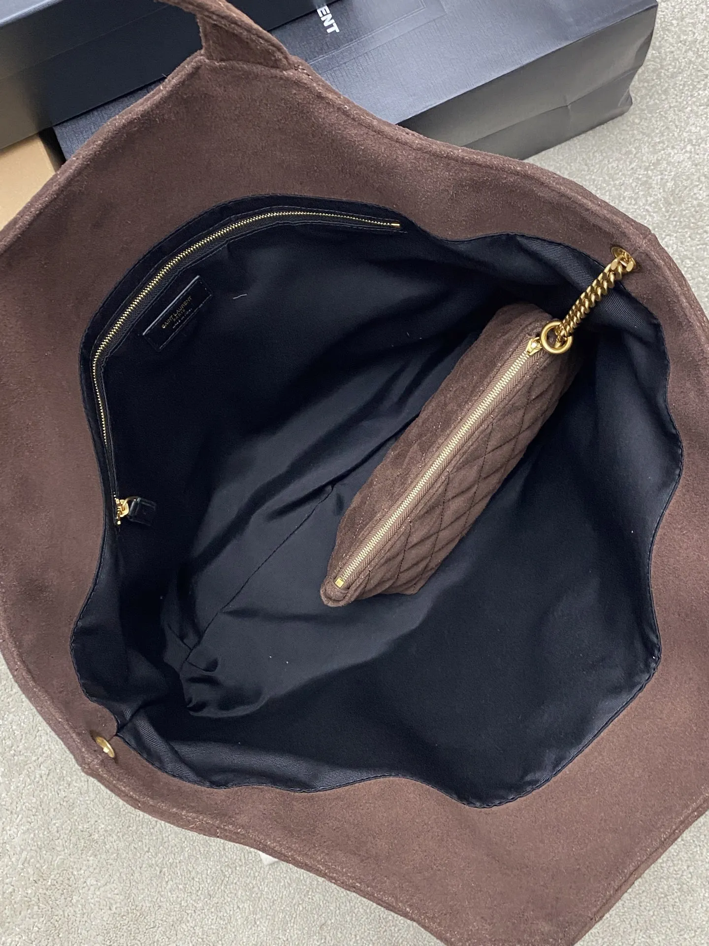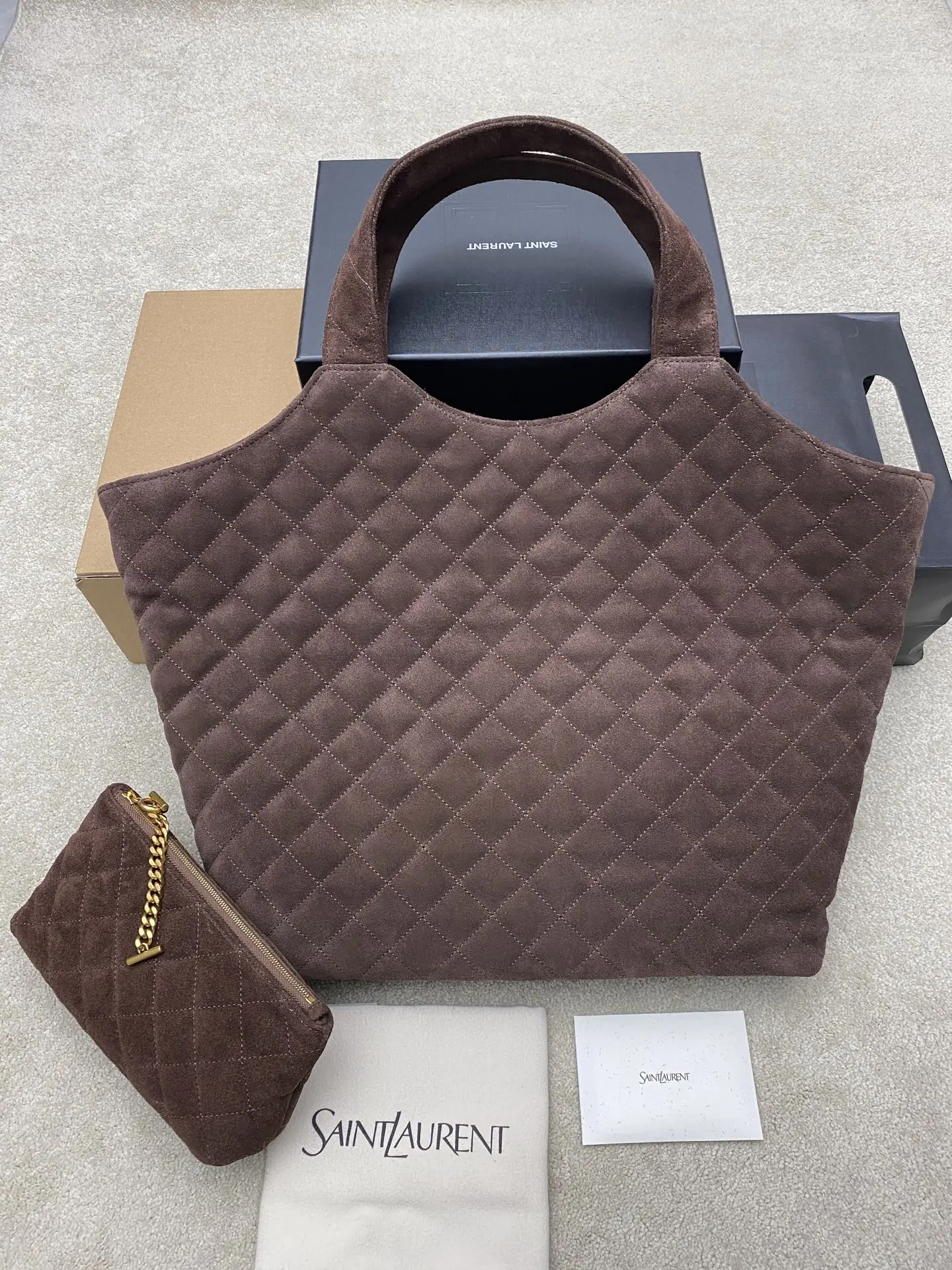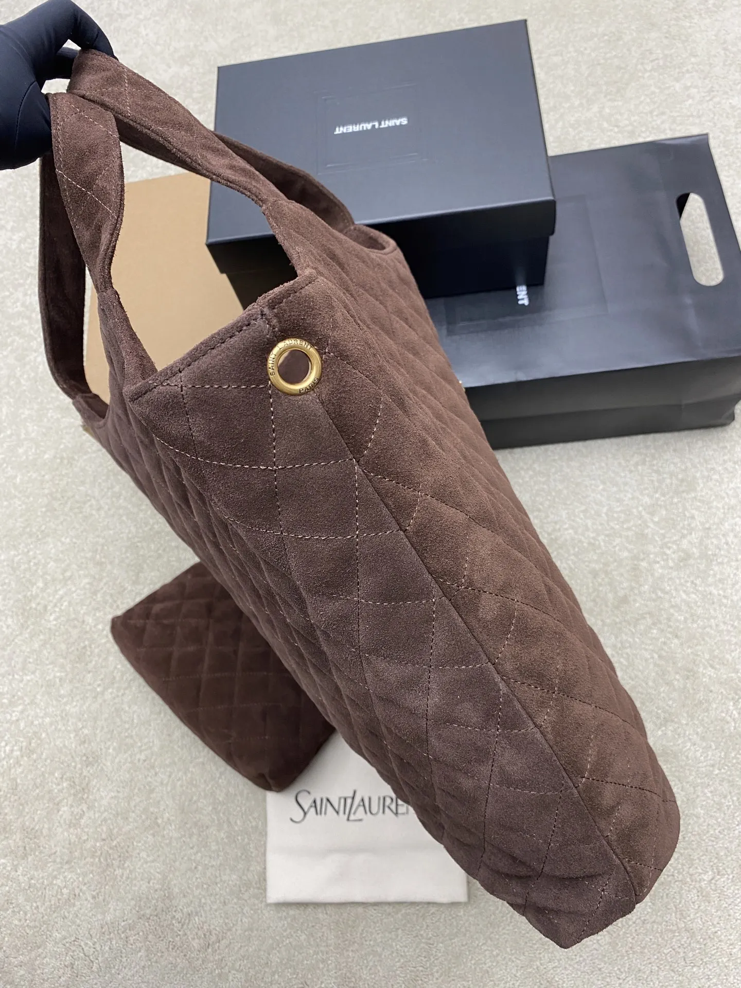 Matte Coffee/Gold ICARE Tote Bag – High-end matte suede shopping bag, the popular ICARE tote bag online, Freedom and passion, comfort and ease, elegance is you, casual is also you — the tote bag launched in Saint Laurent s Spring/Summer 22 collection, featuring a vintage diamond pattern and meticulous craftsmanship that truly embodies sophistication in the details! Model: 698651 Original Factory Leather