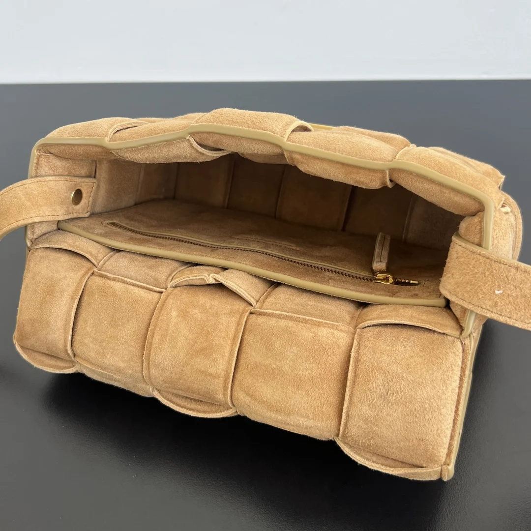 Bottega Veneta Cassette Bag 70026 The puffy Cassette is super cute. This series is extremely fashionable and stylish. The suede feels soft and luxurious. The high-quality leather elevates the entire look. The feel is truly amazing! The hand-woven, widened design is more minimalist and stylish, with both aesthetics and capacity. The overall design has a French elegance, with a vintage and romantic feel, and the puffy body is also very cute! You ll definitely look better than others with it on! Dimensions: 25x15x4