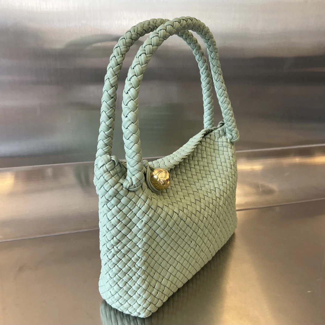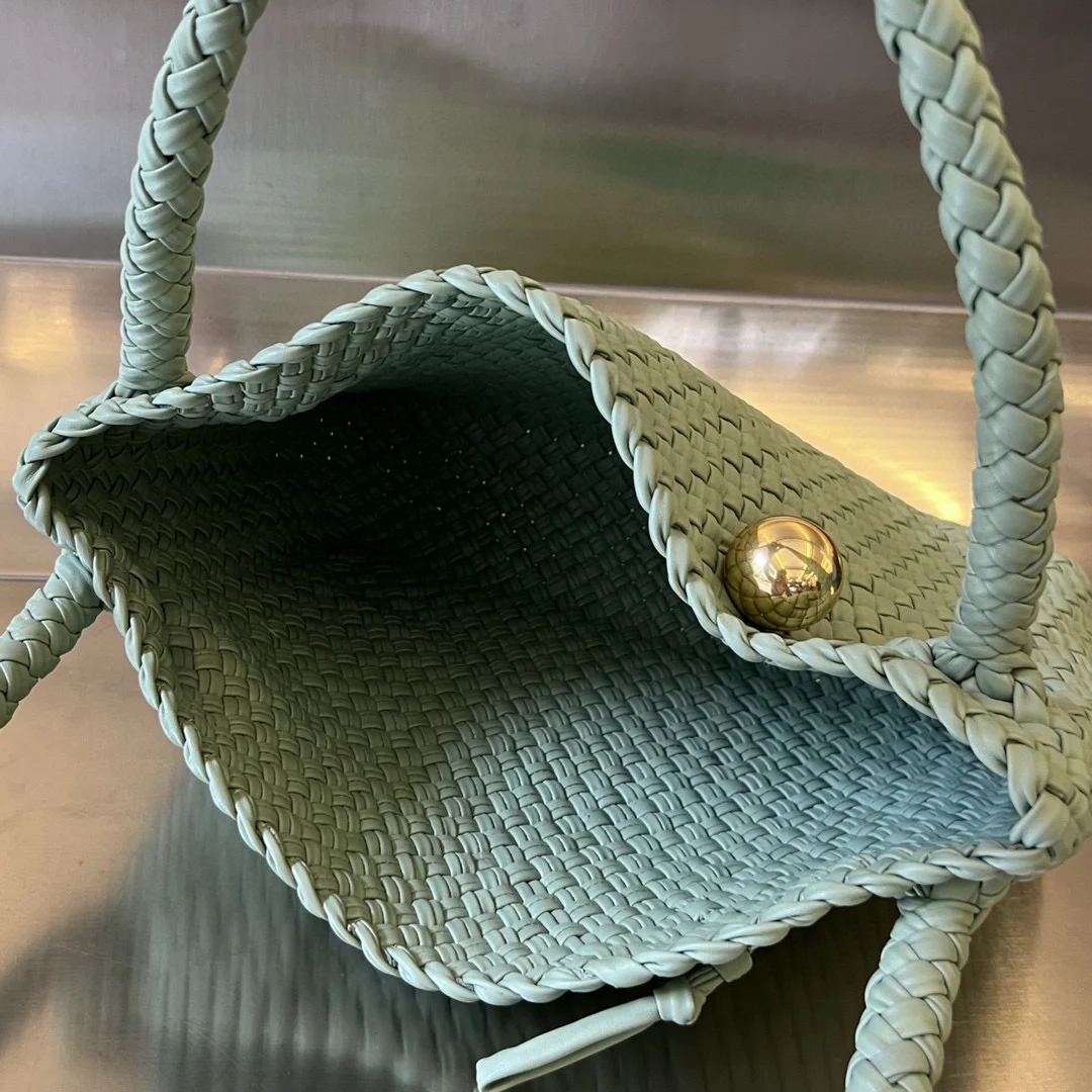 Bottega Veneta Winter 2023 Collection: The epitome of craftsmanship, the Tosca bag! 716974. The gold metal sphere can be replaced with malachite. A limited-edition, globally exclusive bag that is a work of art. Combining masterful artistry with exquisite handcraftsmanship, it showcases a unique weaving technique, embodying understated luxury and refined taste. The entire bag features the classic cabat double-faced fine weave. The handle is also crafted with full leather woven details. The gold sphere and leather loop at the top of the flap perfectly convey exquisite jewelry craftsmanship. The bag is exceptionally lightweight, comfortable, and sophisticated! True quiet luxury, understated yet exuding a composed and graceful beauty. Dimensions: 27x18x8cm. Handle height: 18cm.