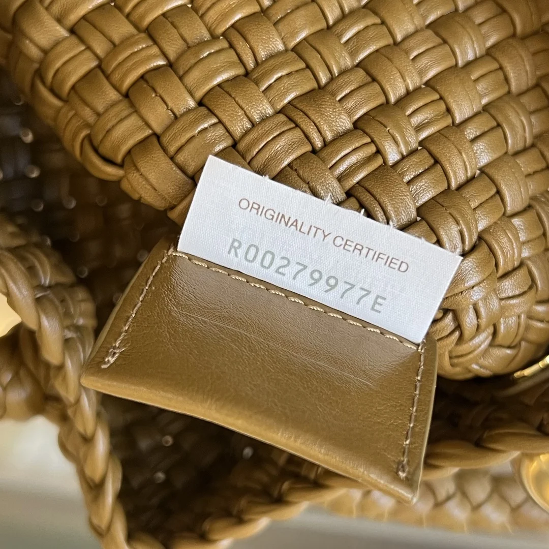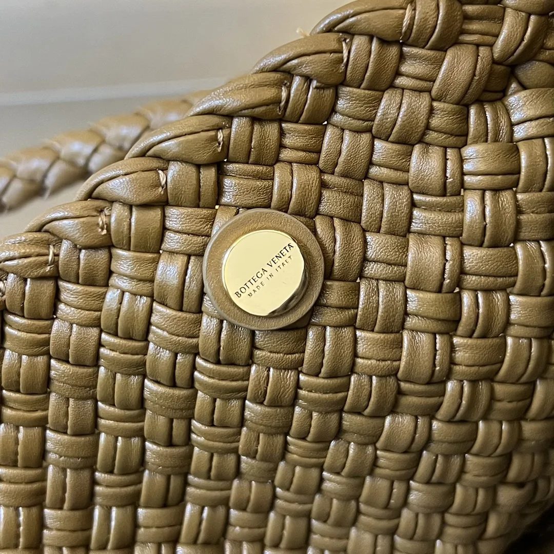 Bottega Veneta Winter 2023 Collection: The epitome of craftsmanship, the Tosca bag! 716974. The gold metal sphere can be replaced with malachite. The actual product is like a work of art, a globally limited-edition bag. A combination of museum-quality art and haute craftsmanship, it embodies a unique weaving technique. It is a very understated, luxurious, and tasteful piece. The overall design utilizes the classic cabat double-sided fine weave. The handle is also crafted with full leather woven details. The gold sphere and leather loop at the top of the flap perfectly convey exquisite jewelry craftsmanship. The bag is very lightweight, comfortable, and luxurious! True quiet luxury, understated yet with a composed and graceful beauty. Dimensions: 27x18x8cm, Handle height: 18cm.