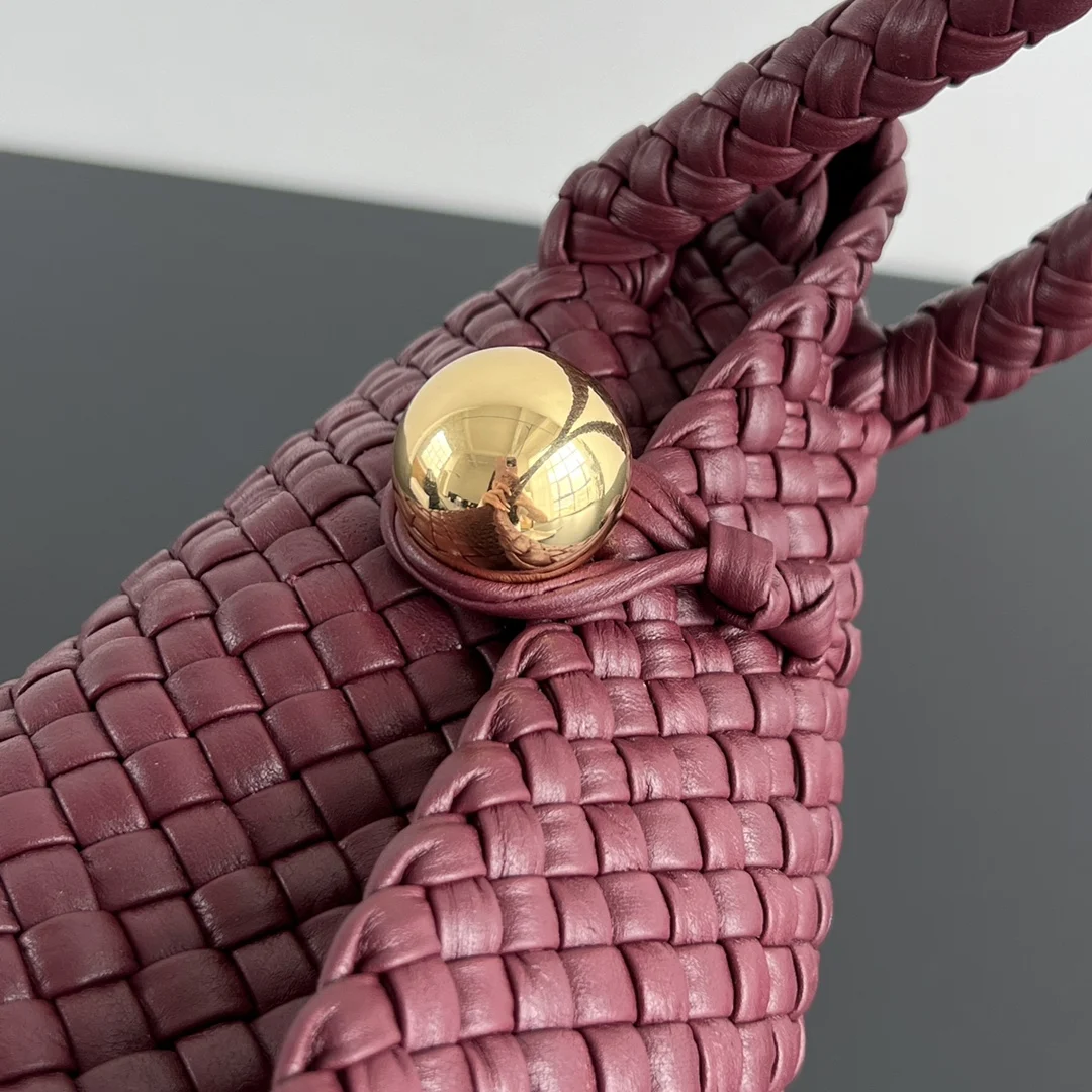 Bottega Veneta Winter 2023 Collection: The epitome of craftsmanship, the Tosca bag! 716974. The gold metal sphere can be replaced with malachite. A limited-edition, globally exclusive bag that is a true work of art, combining masterful artistry with exquisite handcraftsmanship. Showcasing a unique weaving technique, this bag exudes understated luxury and refined taste. The classic cabat double-faced intrecciato technique is used throughout, with full leather woven detailing on the handles. The gold sphere and leather loop on the flap perfectly convey exquisite jewelry craftsmanship. The bag is incredibly lightweight, comfortable, and sophisticated. True quiet luxury, understated yet exuding a composed and graceful beauty. Dimensions: 27x18x8cm. Handle height: 18cm.