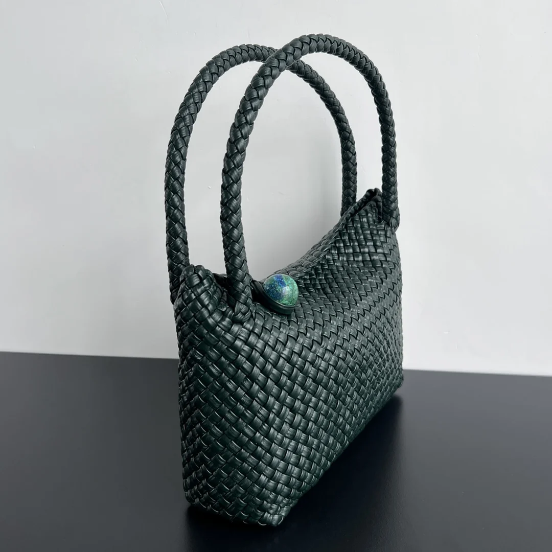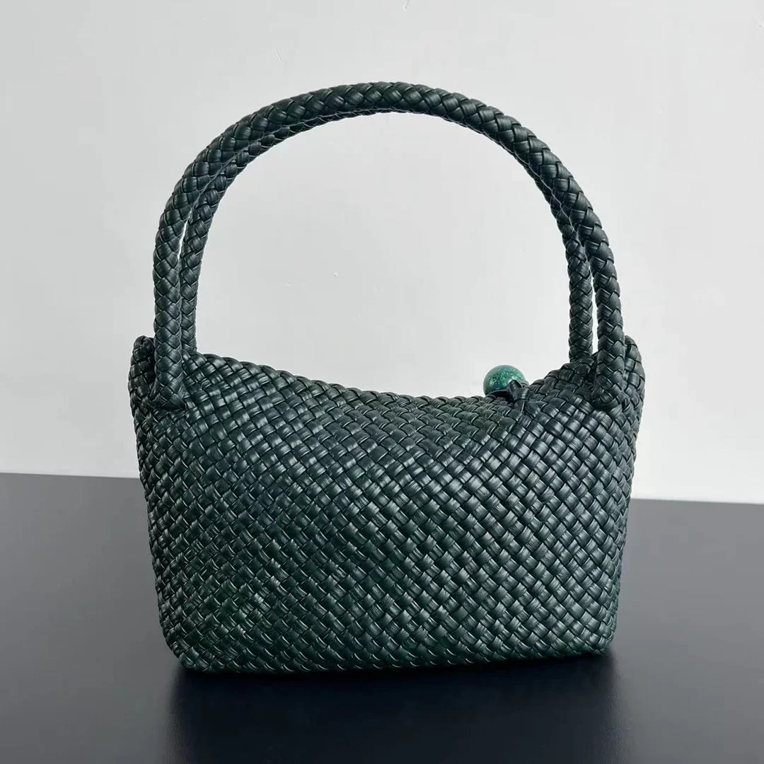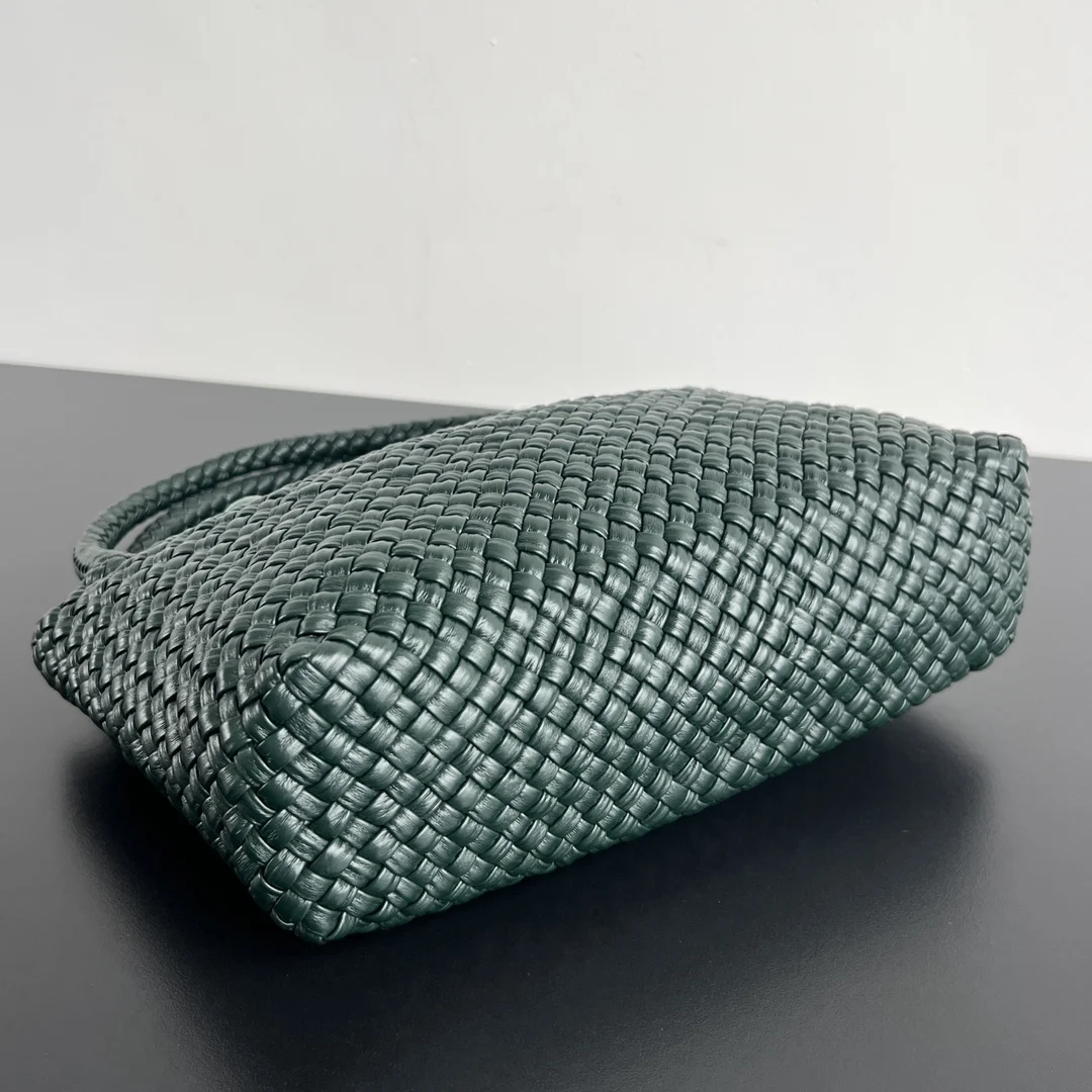 Bottega Veneta Winter 2023 Collection: The epitome of craftsmanship, the Tosca bag! 716974. The gold metal sphere can be replaced with malachite. A limited-edition, globally exclusive bag that is a true work of art, combining masterful artistry with exquisite handcraftsmanship. Showcasing a unique weaving technique, this bag exudes understated luxury and refined taste. The classic Cabat double-faced Intrecciato weave is used throughout, with full leather woven detailing on the handles. The gold sphere and leather loop at the top of the flap perfectly convey exquisite jewelry craftsmanship. The bag is incredibly lightweight, comfortable, and luxurious. True quiet luxury, understated yet exuding a composed and graceful beauty. Dimensions: 27x18x8cm. Handle height: 18cm.