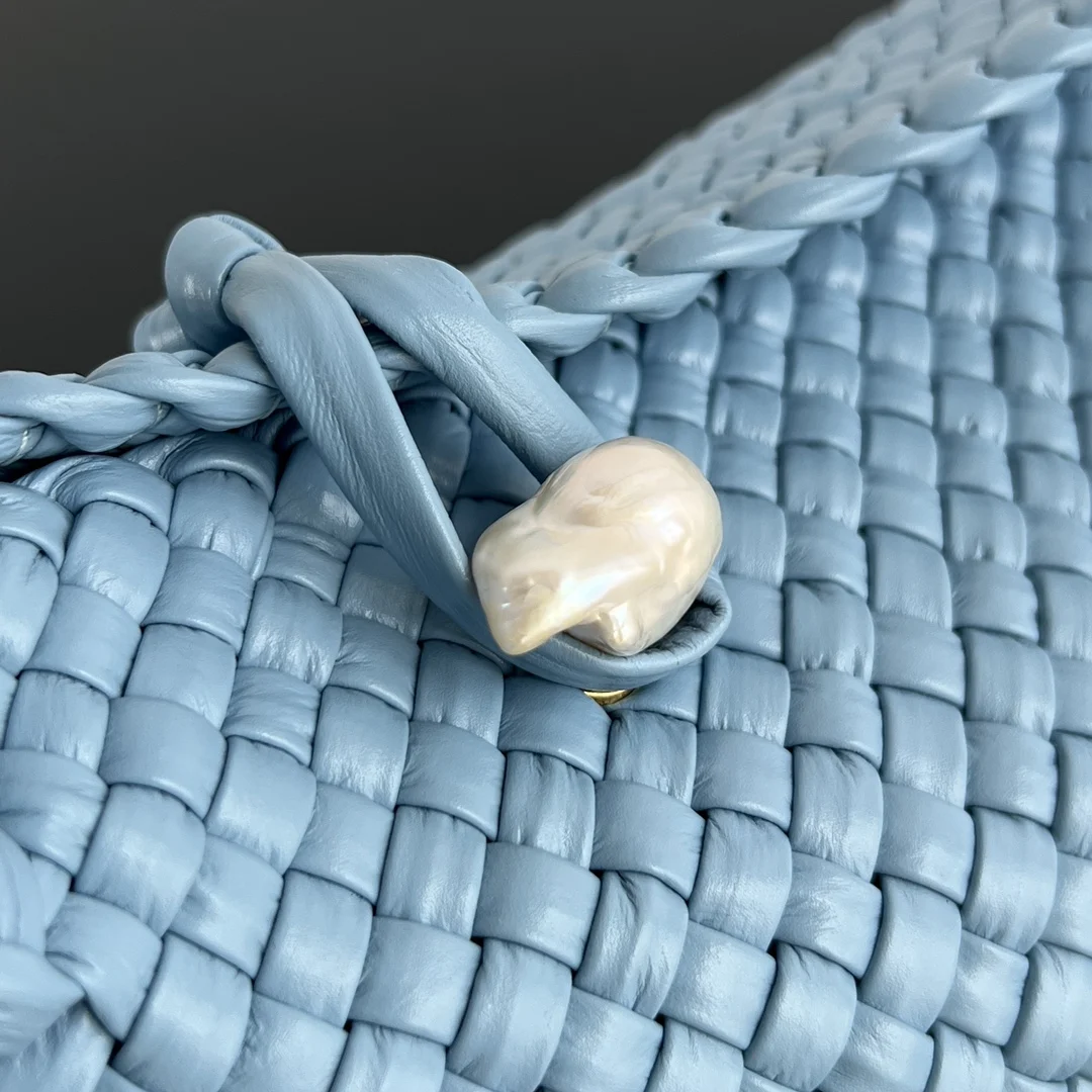Bottega Veneta Winter 2023 Collection: The epitome of craftsmanship, the Tosca bag! 716974. The gold metal sphere can be replaced with malachite. A limited-edition, globally exclusive bag that is a true work of art, combining masterful artistry with exquisite handcraftsmanship. Showcasing a unique weaving technique, this bag exudes understated luxury and refined taste. The classic cabat double-faced intrecciato technique is used throughout, with full leather woven detailing on the handles. The gold sphere and leather loop on the flap perfectly convey exquisite jewelry craftsmanship. The bag is incredibly lightweight, comfortable, and sophisticated. True quiet luxury, understated yet exuding a composed and graceful beauty. Dimensions: 27x18x8cm, Handle height: 18cm.