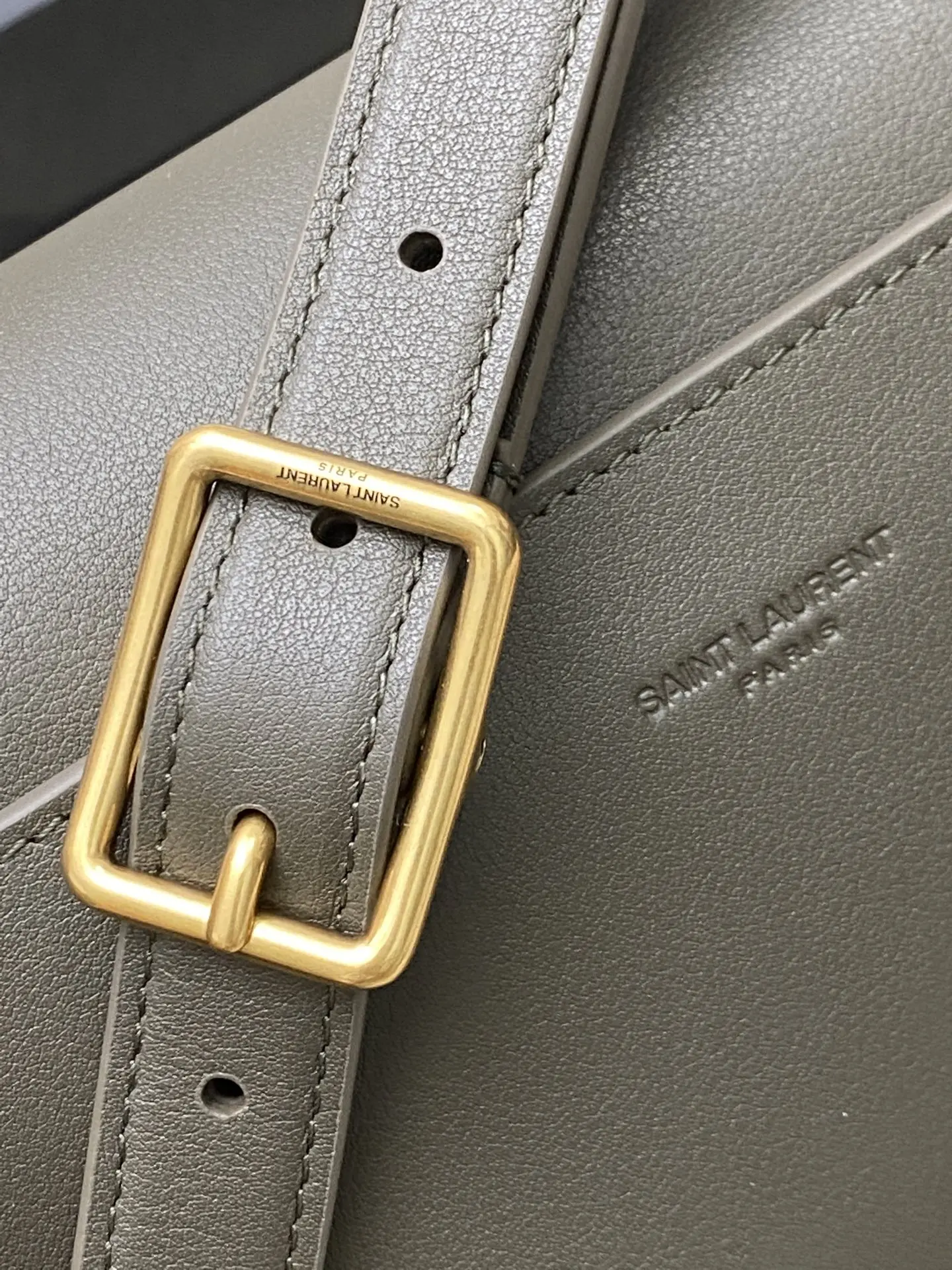 The new Saint Laurent classic Niki bag introduces a unique Besace saddle bag shape, crafted from caramel brown vegetable-tanned calfskin, adorned with a soft heart-shaped flap closure, highlighting the YSL gold logo buckle. The bag features 2 compartments and an adjustable shoulder strap, perfect for pairing with bohemian-style outfits or complementing the fall/winter Maillard style, exuding a retro and fashionable vibe.