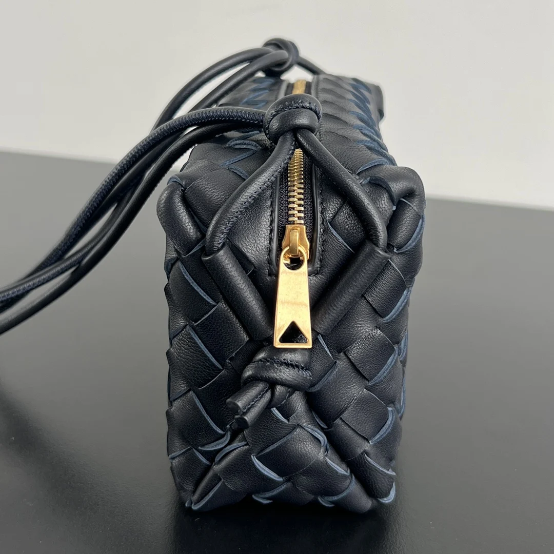Bottega Veneta 723547, an upgraded version of the highly sought-after camera bag. Features a single zipper closure, a square shape, and the brand s iconic Intrecciato weave. Crafted inside and out from select, original sheepskin leather for a lightweight and comfortable feel, exuding sophistication. Despite its compact size, it is practical enough to hold a phone and other daily essentials. It can also be used as a toiletry bag for everyday cosmetics, increasing its versatility. The leather drawstring shoulder strap is adjustable. Super stylish and versatile. Dimensions: 17x10x6 cm.