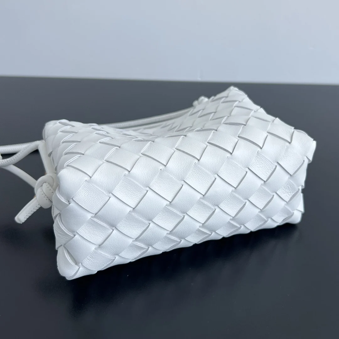 Bottega Veneta 723547, an upgraded version of the highly sought-after camera bag. Features a single zipper closure, a square shape, and the brand s iconic Intrecciato weave. Crafted inside and out from select, original sheepskin leather for a lightweight and comfortable feel, exuding sophistication. Despite its compact size, it s practical enough to hold a phone and other daily essentials. It can also be used as a toiletry bag for everyday cosmetics, enhancing its versatility. The adjustable leather strap is incredibly stylish and versatile. Dimensions: 17x10x6 cm.
