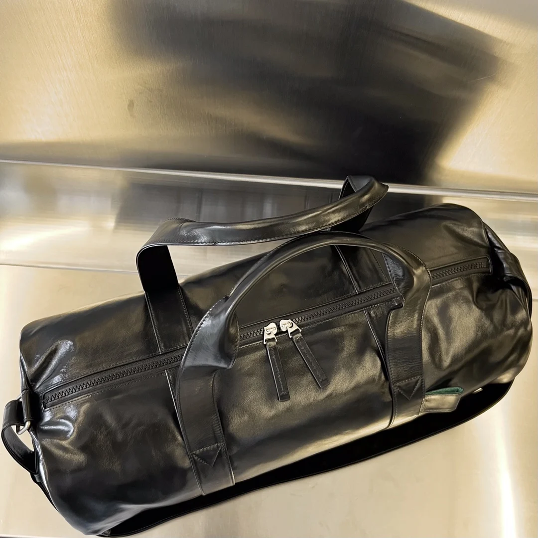 Fitness bag 731192, a must-have item for the sports season, perfect for daily fitness, travel, and outings! Made of oil wax cowhide, it has a strong luster and a delicate and soft texture. The shoulder strap is adjustable for crossbody, single shoulder, or hand carry. Suitable for both men and women, it has a large capacity to hold all your sports equipment. It can be paired with a suitcase for travel. The oil wax texture is free of any patterns, highlighting its high-end quality and large capacity for easy storage! 49x22x21.5