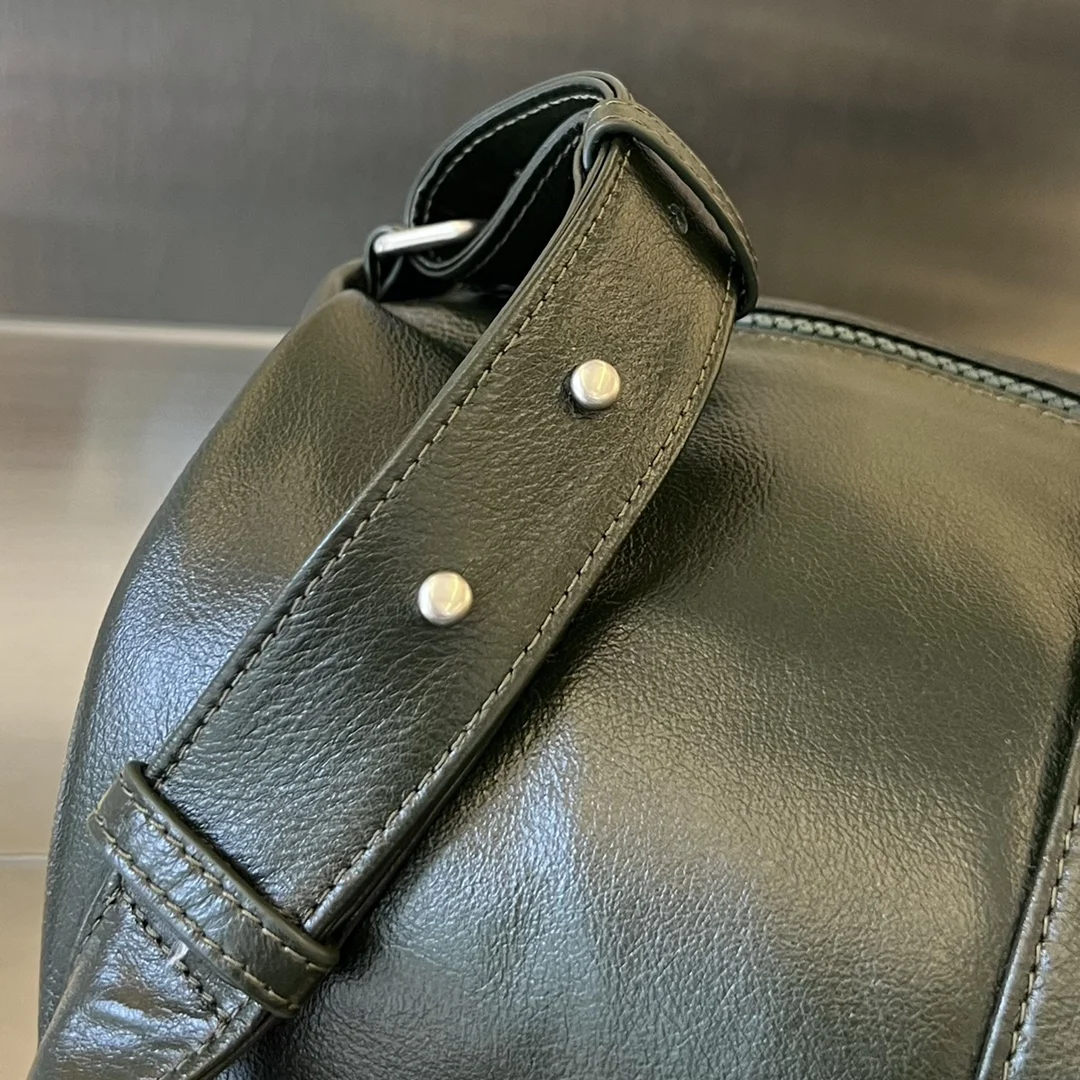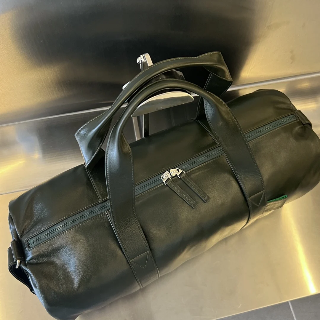 Fitness bag 731192, a must-have item for the sports season, perfect for daily fitness, travel, and outings! Made of oil wax cowhide, it has a strong luster and a delicate and soft texture. The shoulder strap is adjustable for cross-body, single-shoulder, or hand-carry options. Suitable for both men and women, it has a large capacity to hold all your sports equipment. It can be paired with a trolley case for travel. The oil wax texture is free of any patterns, highlighting its high-end quality and large capacity for easy storage! 49x22x21.5