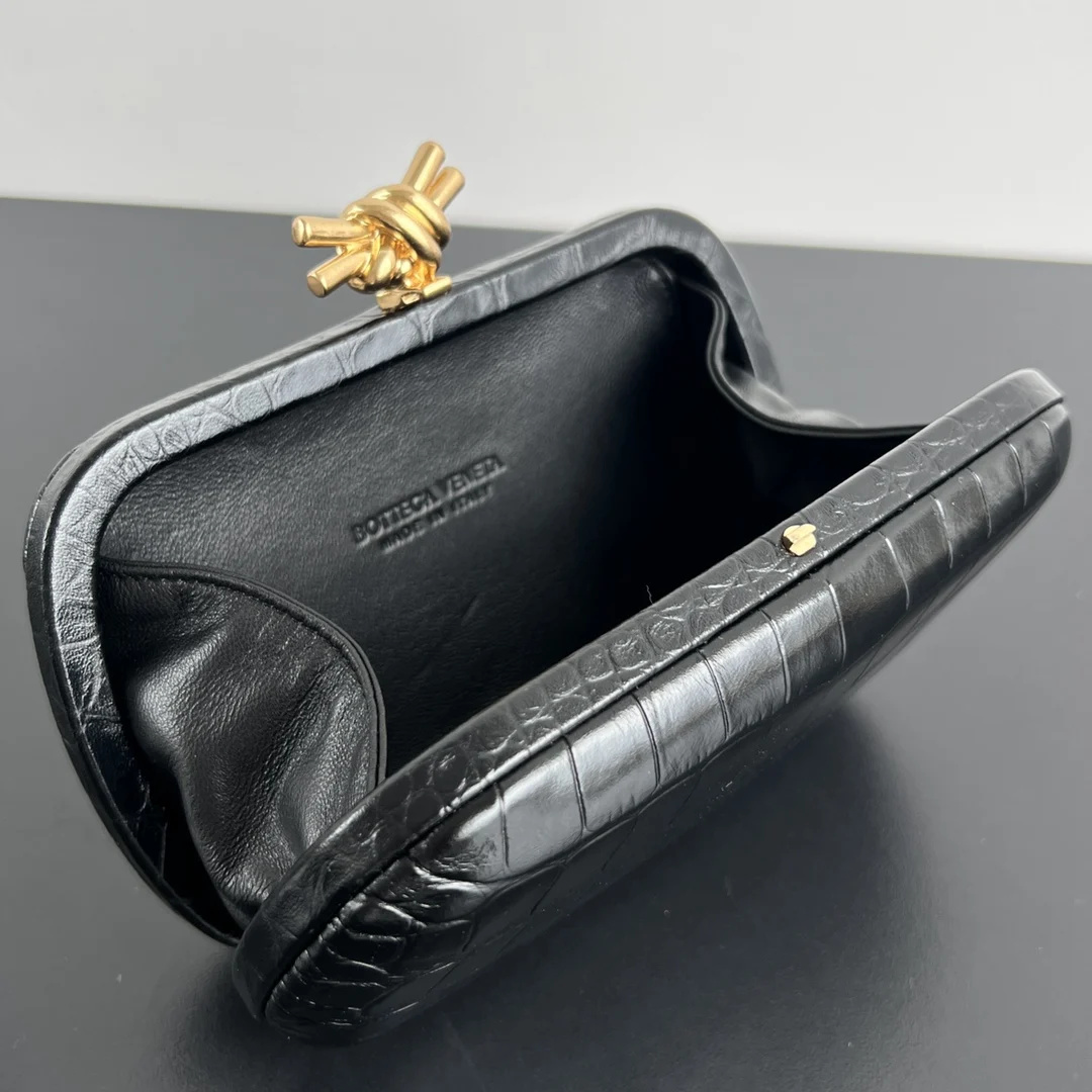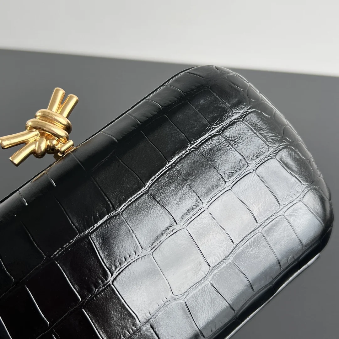 New BV24 737025. There s a beauty called Crocodile Knot Clutch [fireworks], crafted from fine, smooth crocodile leather! Presenting a distinctive Knot design . Exudes luxury and sophistication. The crocodile-embossed texture is both vintage and fashionable, elevating the entire outfit and radiating confidence. Size: 19x11.5x5