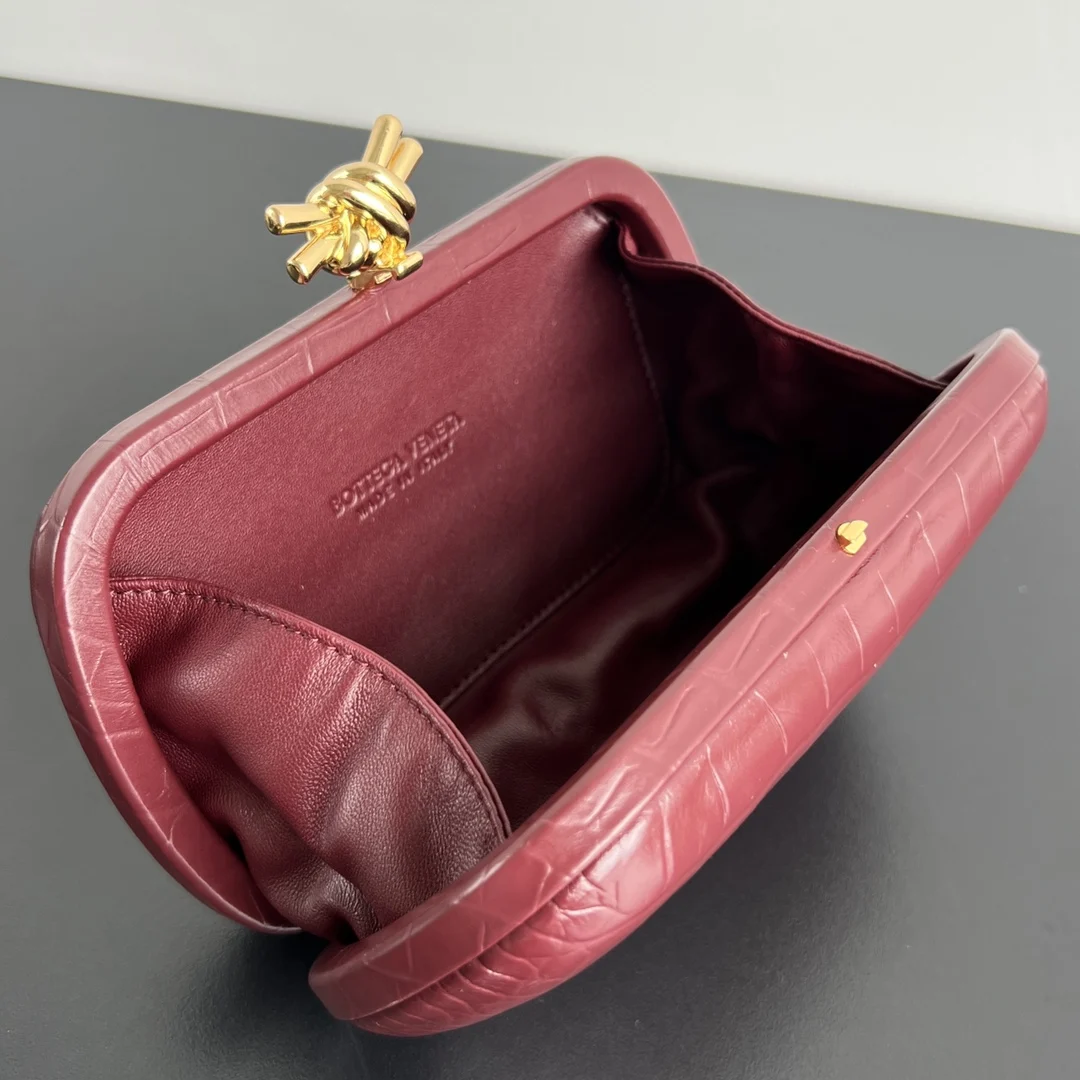 New BV24 737025. There s a beauty called Crocodile Knot Clutch [fireworks], crafted from fine, smooth crocodile leather! Presenting a distinctive Knot design . Exudes luxury and sophistication. The crocodile-embossed texture is both vintage and fashionable, elevating the entire outfit and radiating confidence. Size: 19x11.5x5